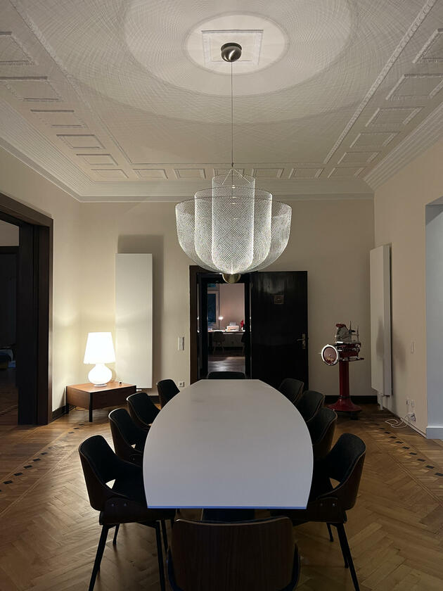 Die kernsanierte ehemalige Fabrikantenvilla wurde in den Jahren 1914 und 1915 erbaut. Der Architekt der Villa war vermutlich Friedrich August Breuhaus de Groot. Für Produktionen steht das ca. 185 m² große Erdgeschoss der Villa zur Verfügung. Das Haus besticht durch seine historischen, intarsienverzierten Holzböden und Holztüren sowie historischen Stuckdecken und zugleich durch eine moderne Einrichtung mit einer Vielzahl von Designklassikern. Die großzügige Küche ist zum Esszimmer hin offen. Als extravaganter Raumtrenner wurde ein begehbarer Weinlagerschrank verbaut. An das Esszimmer schließen sich das durch Schiebetüren abtrennbare Wohnzimmer sowie das Fernsehzimmer an. Zudem steht ein Arbeits-/Gästezimmer, ein Badezimmer sowie ein großzügiger Eingangsbereich und eine kleine Garderobe zur Verfügung.