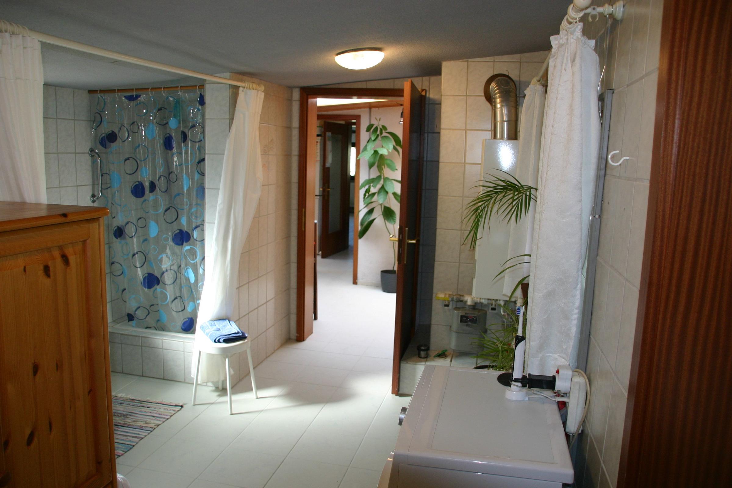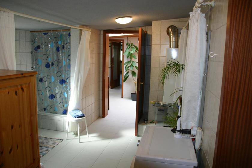 Das Haus ist komplett eingerichtet, das große Bad bietet Platz für die Maske, je nachdem, wo gedreht oder Fotos gemacht werden, eignen sich Schlaf- bzw. Wohnzimmer als Aufenthaltsraum und Garderobe an. Der Dachboden über dem Wohnzimmer ist unverkleidet und derzeit Lagerraum