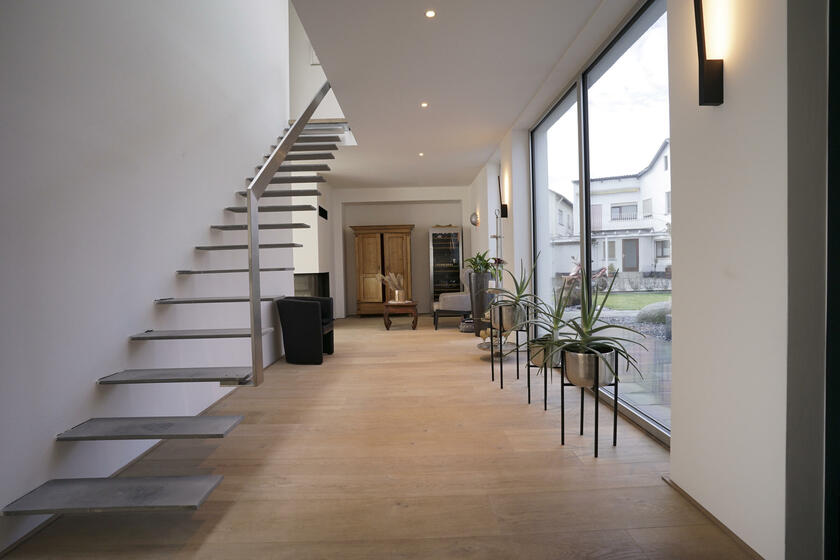 Unser schönes Zuhause wurde im Jahr 2018 gebaut und liegt in Südhessen im Stadtteil Lampertheim-Hüttenfeld. Wir wohnen in einem normalen Wohngebiet. Das Haus besticht durch die Wärme des Parketts und die Kühle von Beton. Die Wohnfläche beträgt 220 m². Der Wohn- und Essbereich besticht durch die großzügige Aufteilung und die großen Fenster, die den Raum mit Licht durchfluteten. In die obere Etage gelangen sie über unsere freischwebende Treppe. Oben befindet sich ein großzügiges Schlafzimmer mit angrenzendem modernem Bad. Im Büroraum wäre Platz für die Maske. Das kleine Kinderzimmer könnte man als Umkleide nutzen. Der schöne Garten bietet am Tisch Platz für 8-10 Personen. Ein Pool sorgt für ein schönes Ambiente auch in den Abendstunden. Unser 50 Jahre alter Magnolienbaum steht sehr imponierend im Garten. Unser Haus befindet sich ca. 3 km von der A5 entfernt.