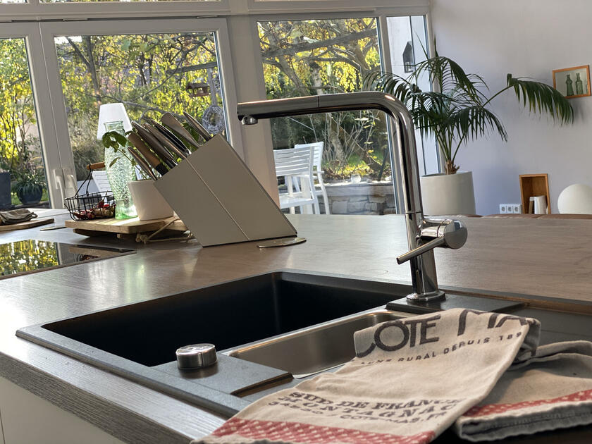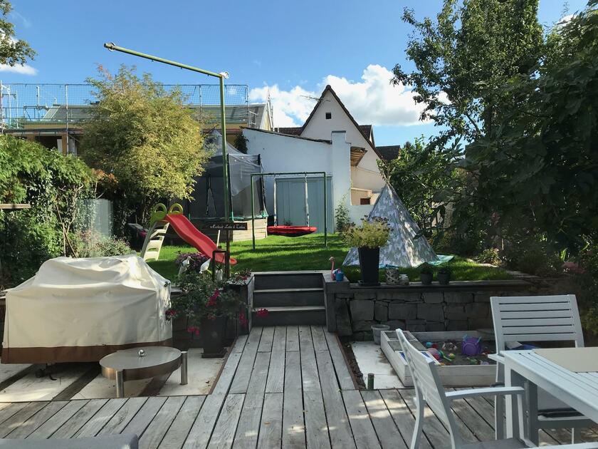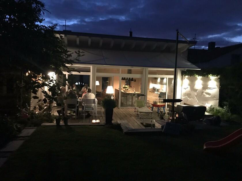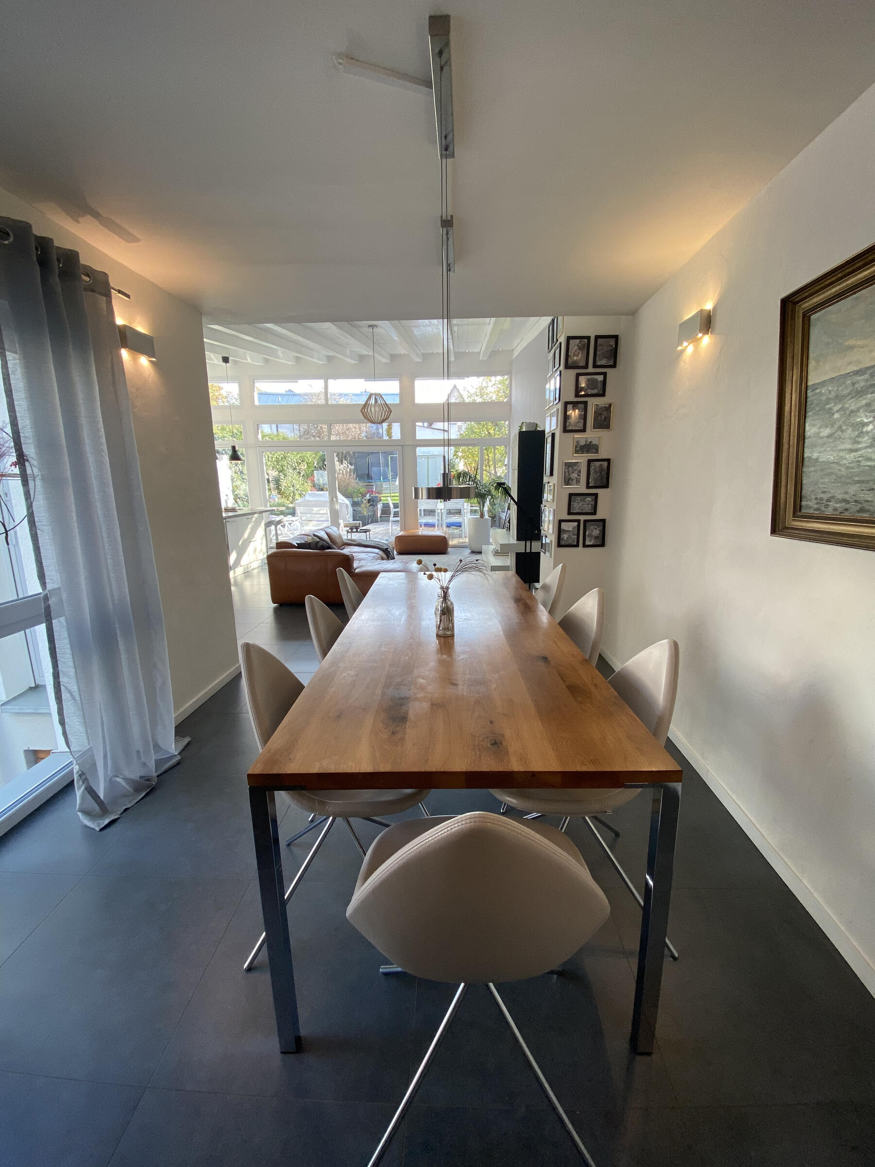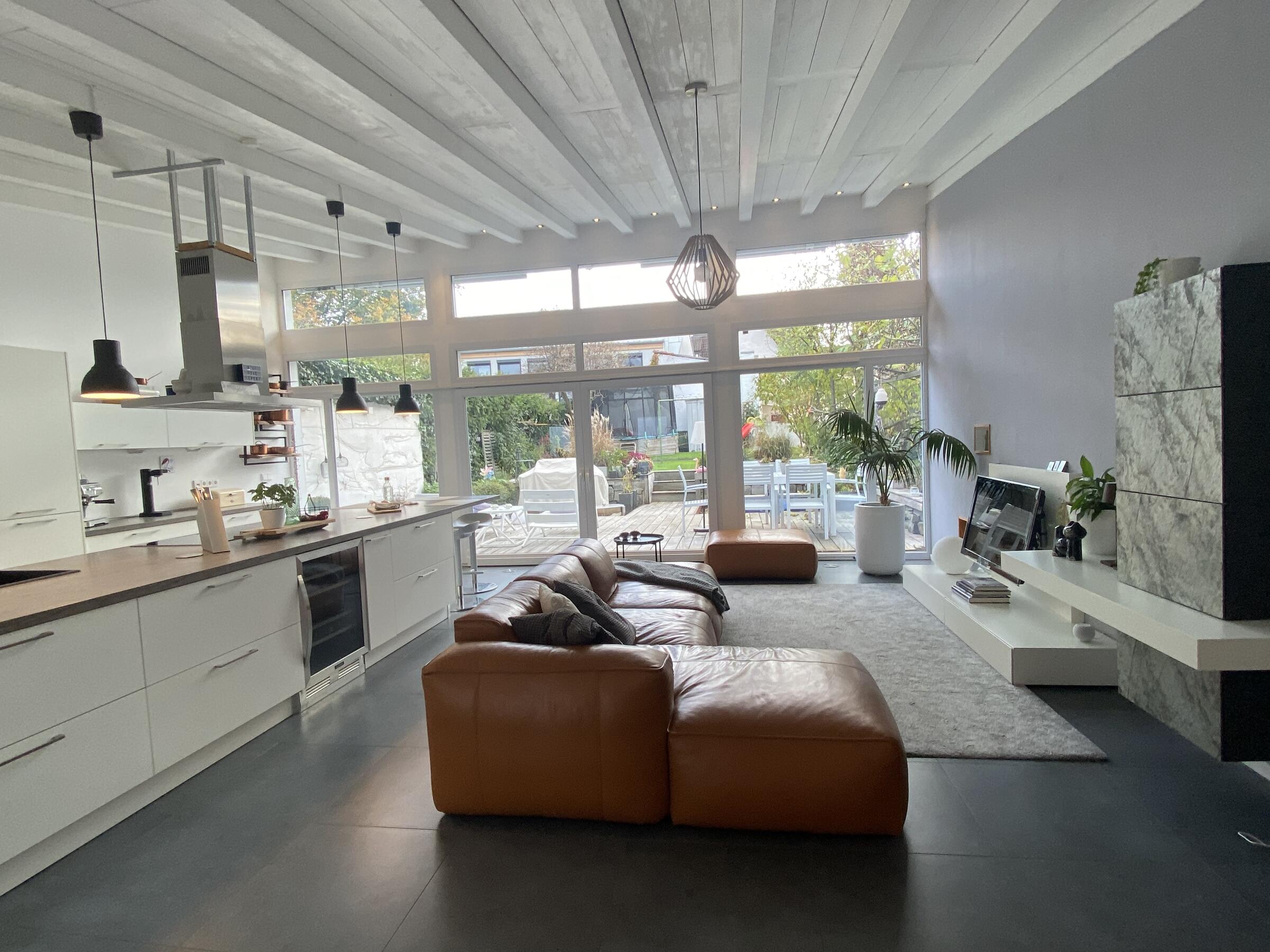 Unser Einfamilienhaus wurde im Jahr 1911 erbaut und im Jahr 2016 vollständig saniert. Für Dreharbeiten eignet sich vor allem der große Wohn- und Essbereich mit sehr gut ausgestatteter Küche. Der frei stehende Küchenblock ist 4,50 m lang und 1,20 m breit. Der lichtdurchflutete Wohnraum hat eine Deckenhöhe von 2,86 m bis 3,67 m und verfügt über eine große Glasfront zum Garten. Auch die Terrasse und der Essbereich eignen sich für Aufnahmen. Eine große Markise und Außenrolläden schützten vor zu starkem Lichteinfall. Im Dachgeschoss steht ein Gästezimmer mit separatem Bad zur Verfügung. Auch hier können Aufnahmen gemacht werden. Im Erdgeschoss kann das Arbeits-/Musikzimmer mit E-Piano und 2 Arbeitsplätzen als Produktionsbüro und auch als Dreh/Fotomotiv genutzt werden. Abstellflächen stehen im überdachten Innenhof zur Verfügung. Das Haus befindet sich im alten Ortskern mit Parkmöglichkeiten auf der Straße und fußläufig zum nahgelegenem ÖPNV.