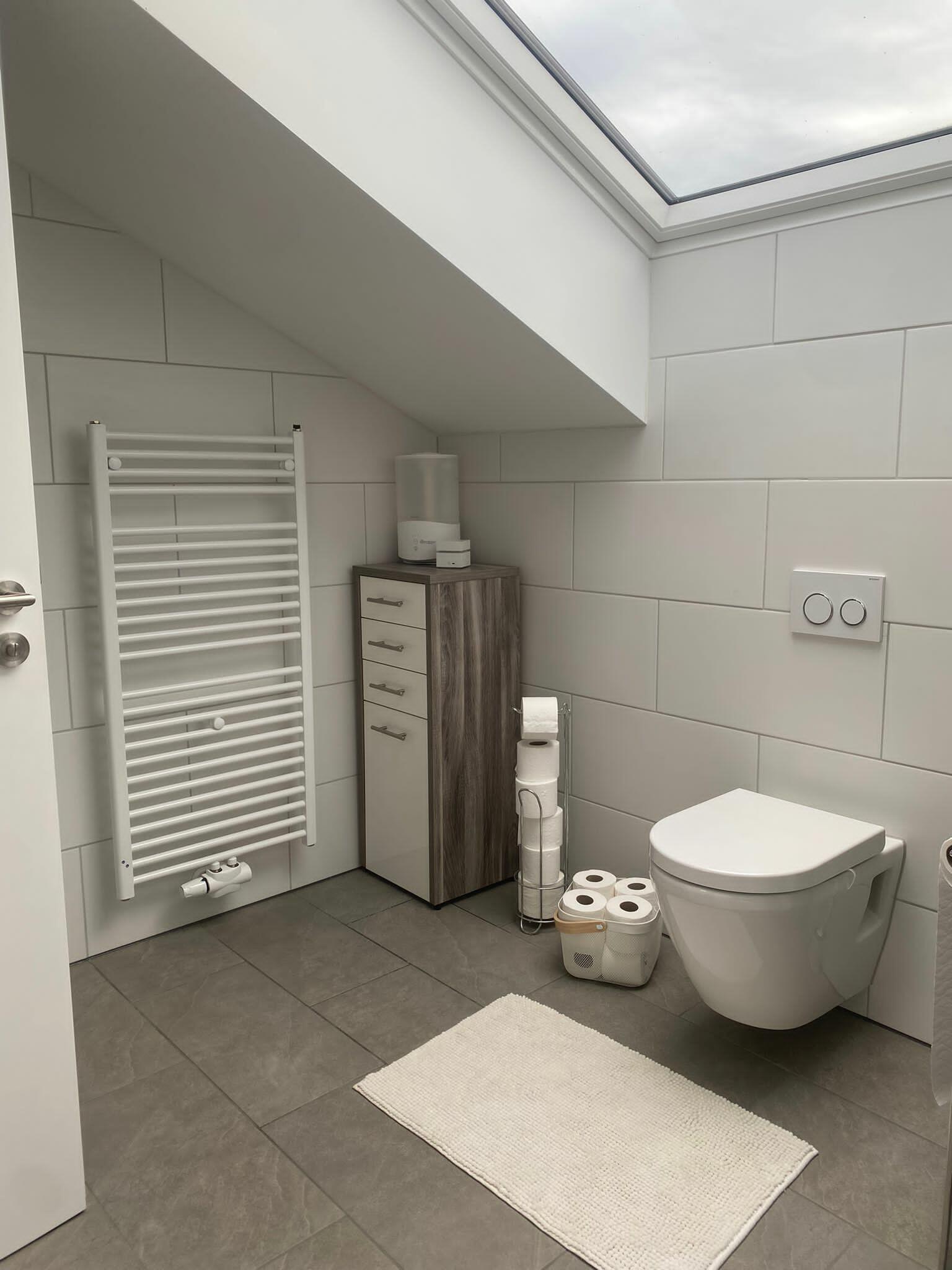 - Gästebadezimmer (EG)Fläche: 12 m²Länge: 4 mBreite: 3 mHöhe: 2,5 mmöbliert: ja