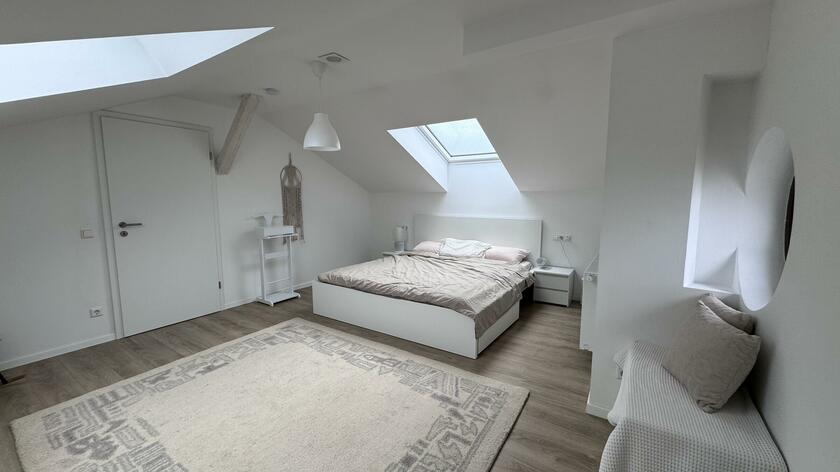 - Dachzimmer (1. OG)Fläche: 20 m²Länge: 5 mBreite: 4 mHöhe: 2,5 mmöbliert: ja