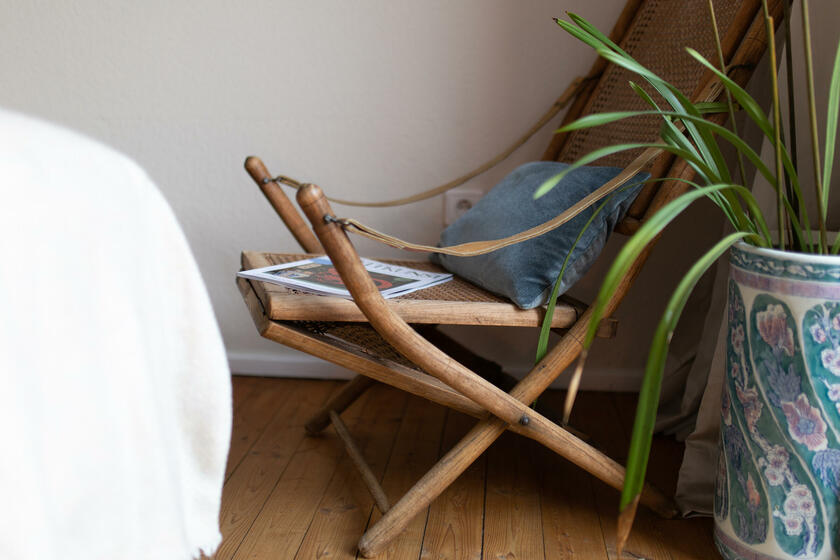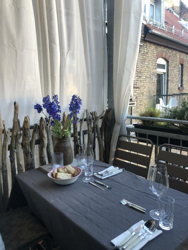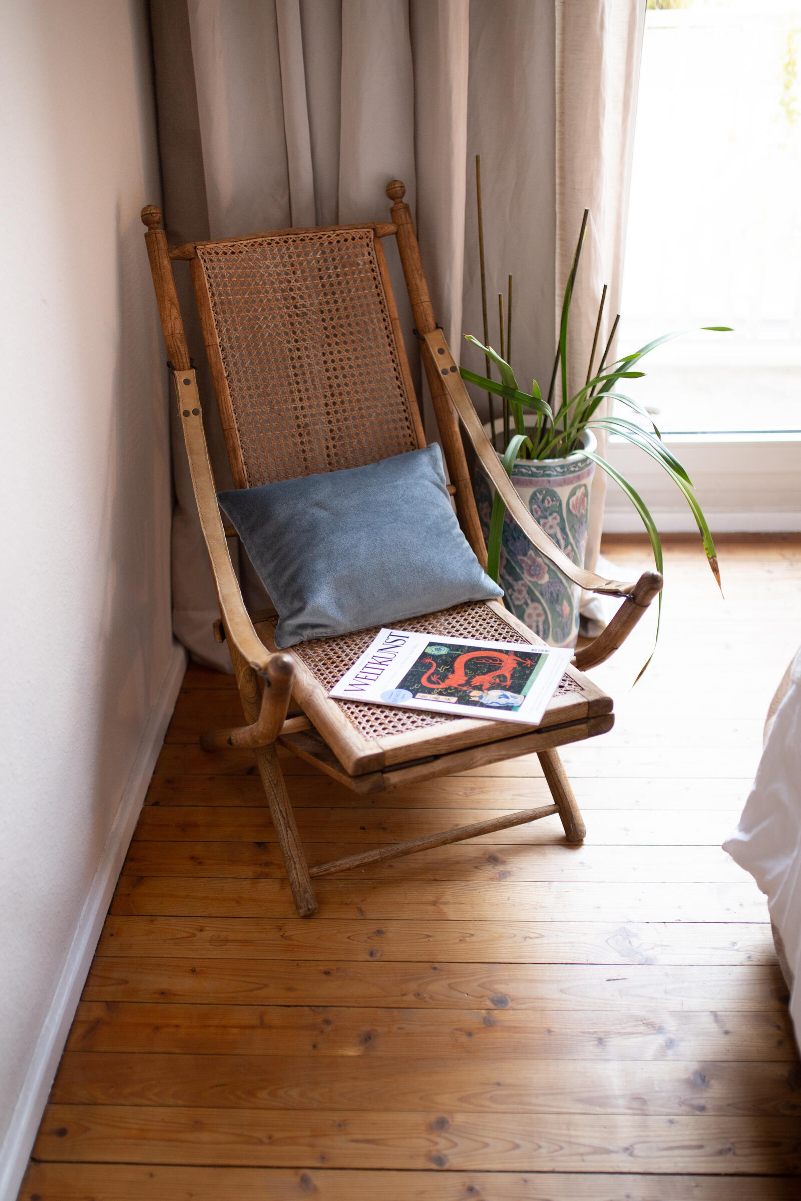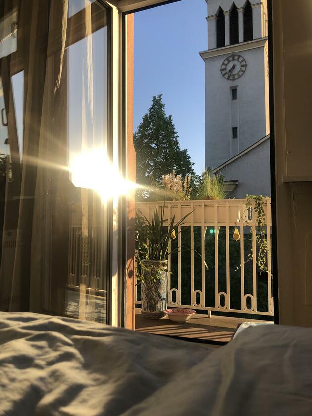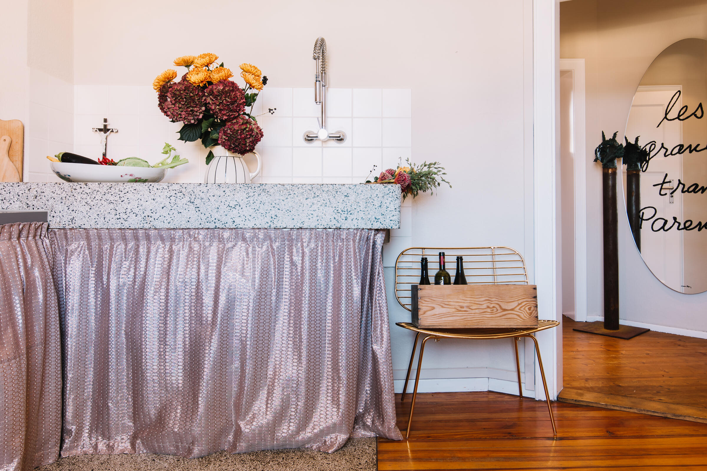 Die gut geschnittene Altbauwohnung liegt in einem Wohn- und Geschäftshaus. Hohe Decken und Parkettböden geben den Räumen einen unverwechselbaren Charme. Die Wohnung befindet sich im 3. Stock. In der Wohnküche befindet sich ein altes Terrazzo Waschbecken. Auf dem Boden sind vereinzelt Terrazzo Bereiche. Im Wohnzimmer ist über die gesamte Breite ein Schreibtisch schwebend installiert. Das Wohnzimmer ist komplett in einem Altrosa gestrichen. Die Rückwand des Schlafzimmers ist mit einer Art Déco Tapete bespielt. Vom Schlafzimmer aus gelangt man auf einen kleinen Sandsteinbalkon mit Blick auf eine Kirche. Das WC ist separat weiß gefliest, oberhalb sind die Wände und Decke in Anthrazit gestrichen. Es gibt noch ein Badezimmer mit Dusche und Waschbecken.