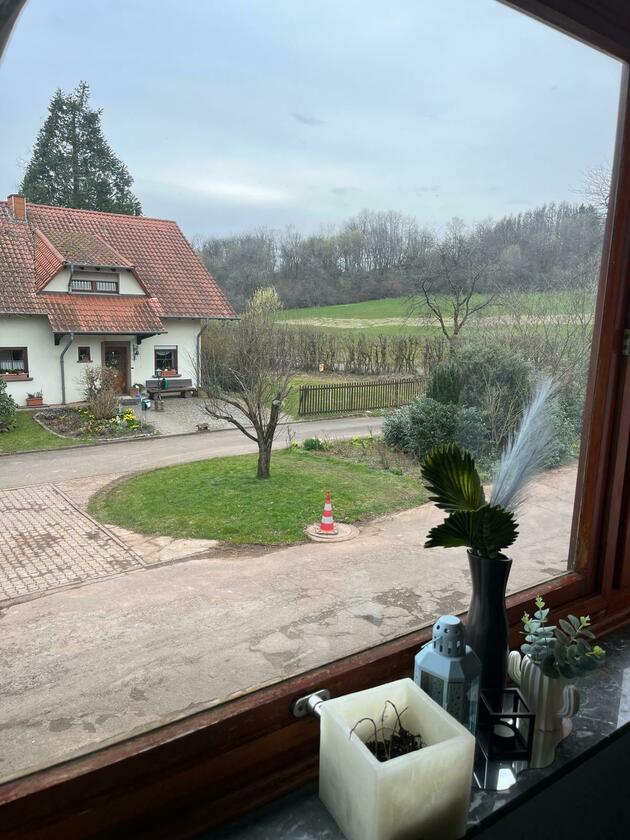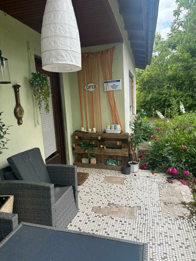 Es befinden sich zwei Häuser auf dem Grundstück mit einem Innenhof, großem Garten und einer u-förmigen Auffahrt. Wir liegen etwas abseits und uneinsehbar vom restlichen Dorf - man kann also komplett ungestört sein. Es gibt genügend Parkmöglichkeiten (sowohl bedacht als auch freistehend). Der komplette Keller (mit Küche und anschließendem Bad) kann als Aufenthaltsraum dienen. Gerne aber auch die Scheune oder Werkstatt.