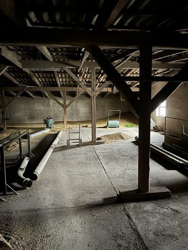 Unser Hof ist einzigartig, authentisch und voller Charakter. Neben einer großen Halle für Heu und Maschinen, haben wir eine zweistöckige Werkstatt, Traktoren, Hänger, Mähdrescher, 200 ha Grünland, Obstbäume, Getreide sowie Raps und einen süßen Australian Shepherd. Früher hatten wir auch Vieh, daher ist auch noch ein Kuhstall mit Melkstation vorhanden.