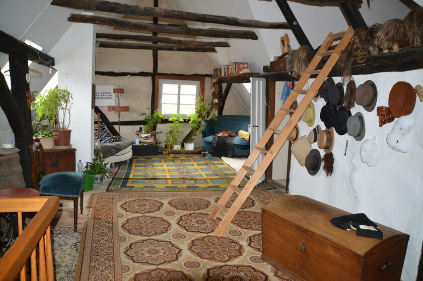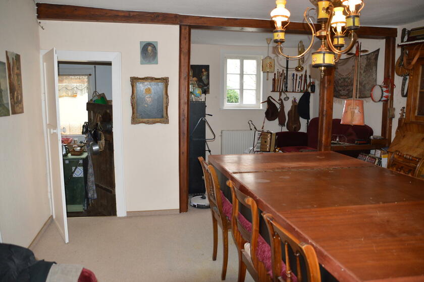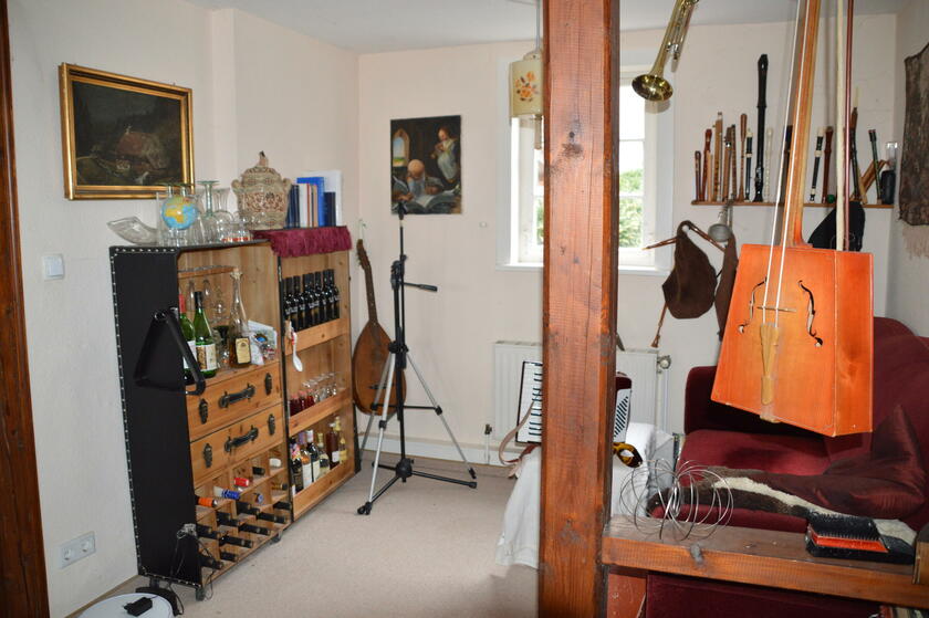 Unser 450 Jahre altes Fachwerkhaus, welches unter Denkmalschutz steht, befindet sich direkt am Historischen Dorfanger der Ortschaft. Die Räume sind thematisch mit historischen Möbeln und Antiquitäten verschiedener Stile und Epochen (Jahrhundertwende, Barock, Orientalisch, Knechtkammer) eingerichtet. In den jeweiligen Räumen hängen als Fundus die passenden Gewandungen verschiedener Größen welche genutzt werden können. In der kleinen Küche gibt es noch alte Wandmalereien. Das Haus ist bestückt mit ca. 40 verschiedenen, teilweise historischen, teilweise exotischen Musikinstrumenten unter anderen: Drehleier, Sister, Mandoline, Balalaika Dudelsäcken, Harmonium, Pferdekopfgeige, Akkordeons, sowie verschiedenen Skurrilitäten. Im Wohnzimmer steht ein Billardtisch, der, wenn nicht bespielt, als Esstisch, umgebaut ist. Im Erdgeschoss befindet sich eine kleine Weinstube (Kleinkunstbühne), die sporadisch in den Sommermonaten genutzt wird. Dort steht ein altes Kneipenklavier. Sofern diese nicht für den Dreh benötigt wird, kann selbige auch für den Teamaufenthalt genutzt werden. Ansonsten stehen aber auch andere Räume als Garderobe etc. zur Verfügung. An Lichtverhältnissen ist von lichtdurchflutet bis schummerig alles vorhanden. Direkt vor dem Haus steht ein Gemeinde Stromkasten wo Drehstrom gezapft werden kann. (Antrag). In unmittelbarer Nähe sind ausreichend Parkplätze vorhanden. In unmittelbarer Nähe vom Haus gibt es einen kleinen See der vom Eigentümer angemietet ist.