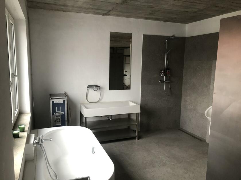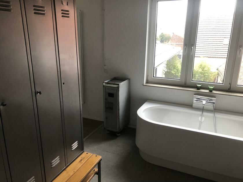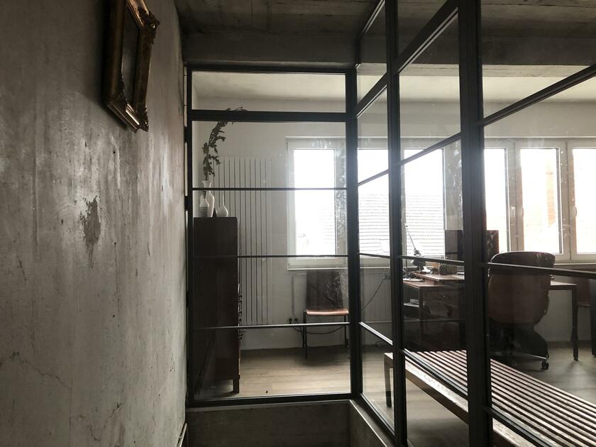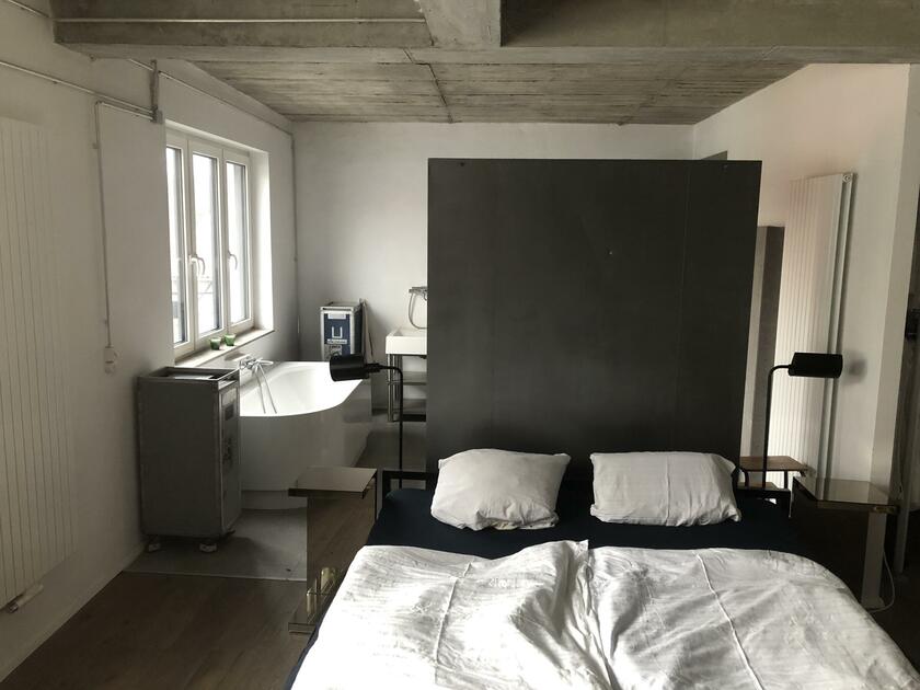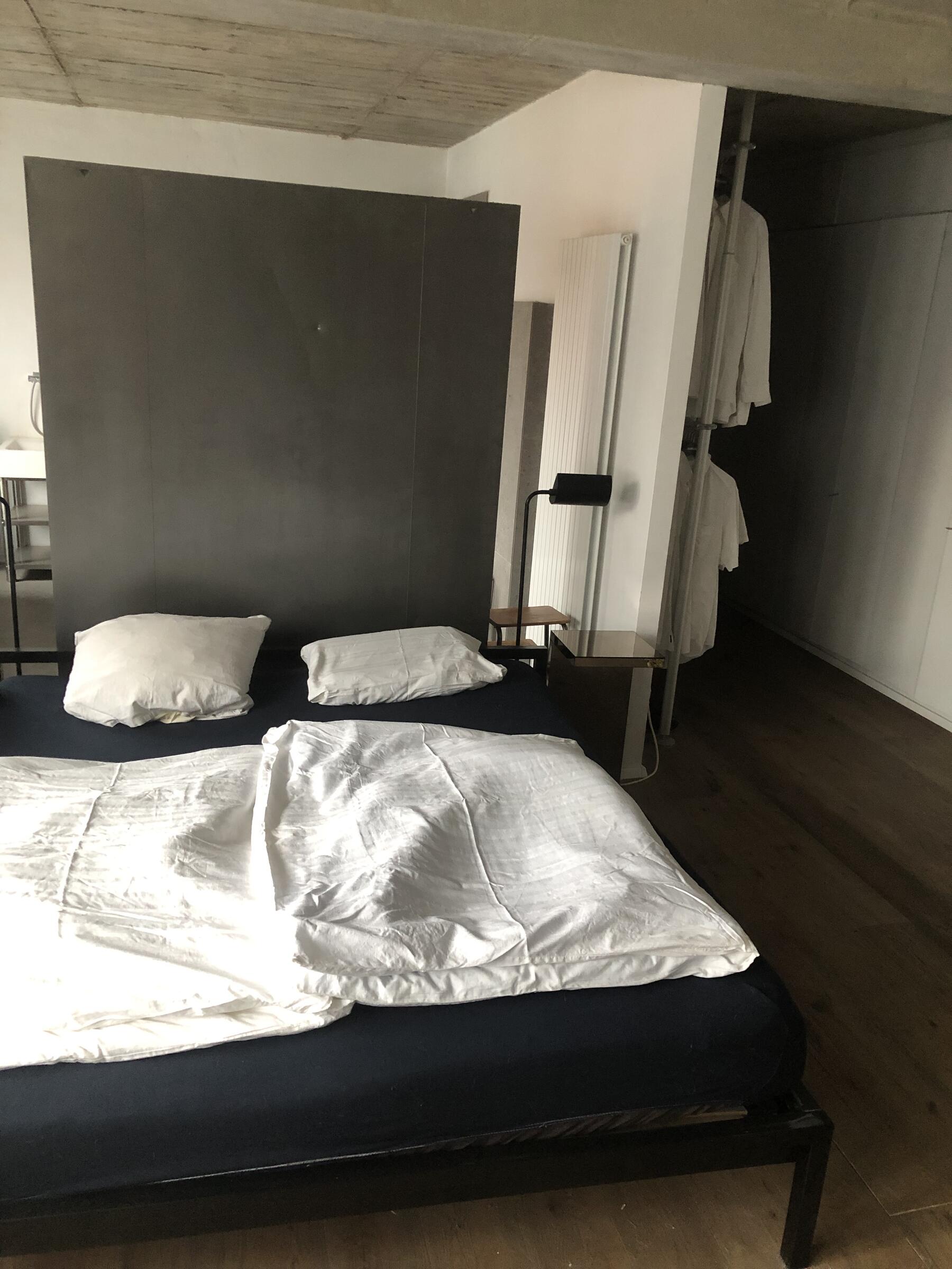 Mein großes Loft befindet sich in ruhiger Randlage im Mönchengladbacher Stadtteil Geneicken. Die Räume sind offen gestaltet. Das lichtdurchflutete Wohnzimmer bietet originalen Betonboden und verfügt über eine bodentiefe und 10 m² große Fensterfront, die nach Süden ausgerichtet ist. Die Fenster sind mit Rolläden abdunkelbar. Die große Küche mit gefliestem Boden ist im Vintage-Stil eingerichtet. Im Schlafbereich wurde Eichenparkett verlegt. Die Fenster im Schlafzimmer sind in Richtung Osten ausgerichtet und können ebenfalls mit Rolläden abgedunkelt werden. Im Außenbereich kann der Innenhof genutzt werden. Es stehen ausreichend Parkmöglichkeiten zur Verfügung.