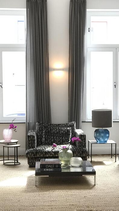 In der 2. und 3. Etage wurde der alte Holzdielenboden freigelegt, geschliffen und geölt. Alle Räume sind sehr hell. Lediglich der mittlere Raum im Erdgeschoss erhält aufgrund der Architektur kein direktes Sonnenlicht. Alle Fenster des Hauses sind neu und stilechte Holzfenster. Alle Wände wurden glatt verputzt und weiß gestrichen.