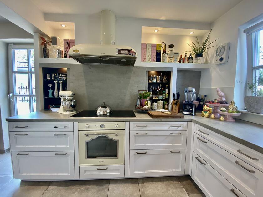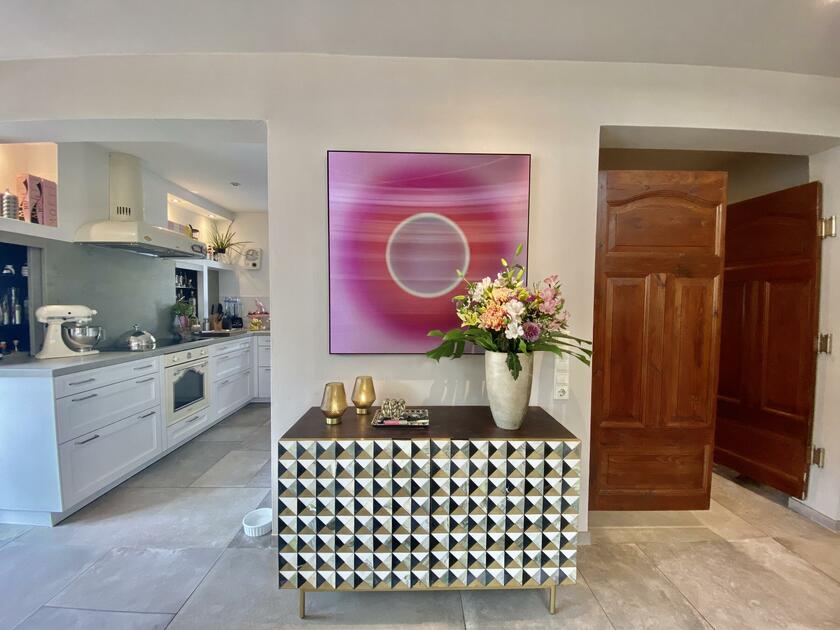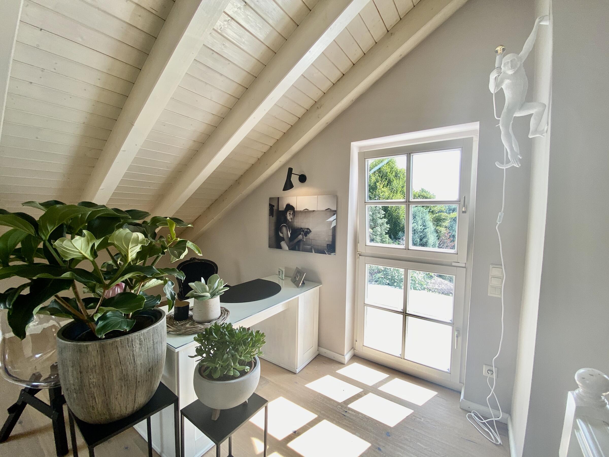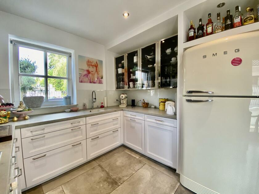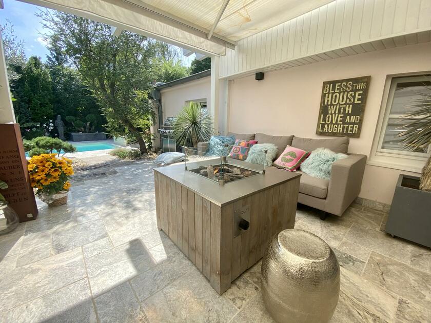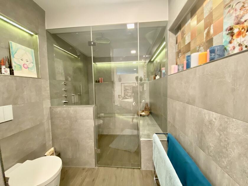 Unser schönes Einfamilienhaus im Südfranzösischen Stil befindet sich auf einem 530 m² großen Grundstück in Monheim am Rhein, einer Kleinstadt zwischen Düsseldorf und Köln. Es zeichnet sich durch seine erstklassige Einrichtung und hochwertige Ausstattung aus. Durch den Eingangsbereich gelangt man in den großen Wohnbereich, der sich über 2 Etagen mit offener Galerie erstreckt und über einen Kamin und eine offene Küche verfügt. Vom Wohnbereich aus gelangt man zu den Privaträumen: ein Schlafzimmer mit großem Zugang zur Terrasse, ein großes Wellnessbad mit freistehender Wanne, zwei Waschtischen, außergewöhnlichen Lichtkonzepten und einer großen begehbaren Dusche/Dampfsauna.