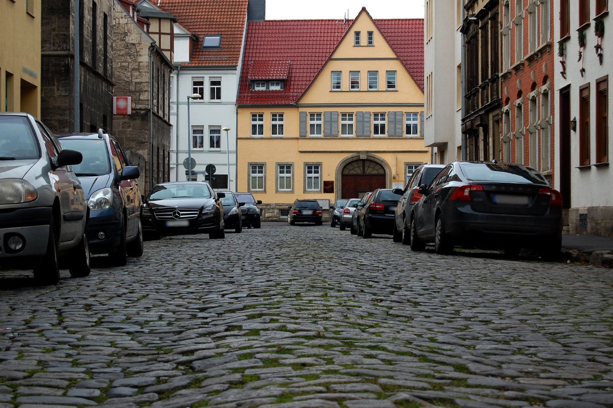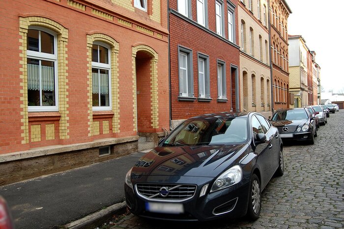 Sehr interessant ist auch das Kopfsteinpflaster der kleinen Gasse, in der sich das hübsche dreistöckige Reihenhaus befindet. Es verleiht der Straße mit den bunten Fassaden einen historischen Charme.