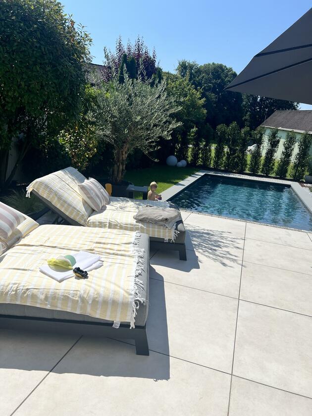 Die wunderschöne Doppelhaushälfte in idyllischer Lage besticht mit moderner Leichtigkeit. Die hochwertige Einrichtung des Hauses wurde sehr bewusst ausgewählt. In den Fokus wurde eine moderne Gemütlichkeit gestellt, die aus einem Material- und Farbenmix in Naturtönen erzeugt wurde. Durch die vielen und bodentiefen Fenster im Wohnzimmer lassen sich die Rinder auf der anliegenden Kuhweide beim Grasen beobachten. Insgesamt stehen in der Immobilie 3 Bäder und 5 Toiletten zur Verfügung, eine Sauna, ein Fitnessraum, eine große offene moderne Küche sowie 2 Terrassen. Es gibt 2 Schlafzimmer, ein Kinderzimmer inklusive Toilette und ein Büroraum. Ein weiteres Highlight des Hauses ist die überdachte Outdoorküche auf der Seitenterrasse inklusive Weber Grill sowie der große Pool (8x4 m). Der Internetanschluss kann bei Buchung genutzt werden. Die Südseite des Grundstückes garantiert ganztägiges Sonnenlicht und unterstreicht die Helligkeit und Leichtigkeit der Einrichtung, lädt zudem zum Sonnenbaden im grünen Garten bzw. der 40 m² großen Terrasse ein.