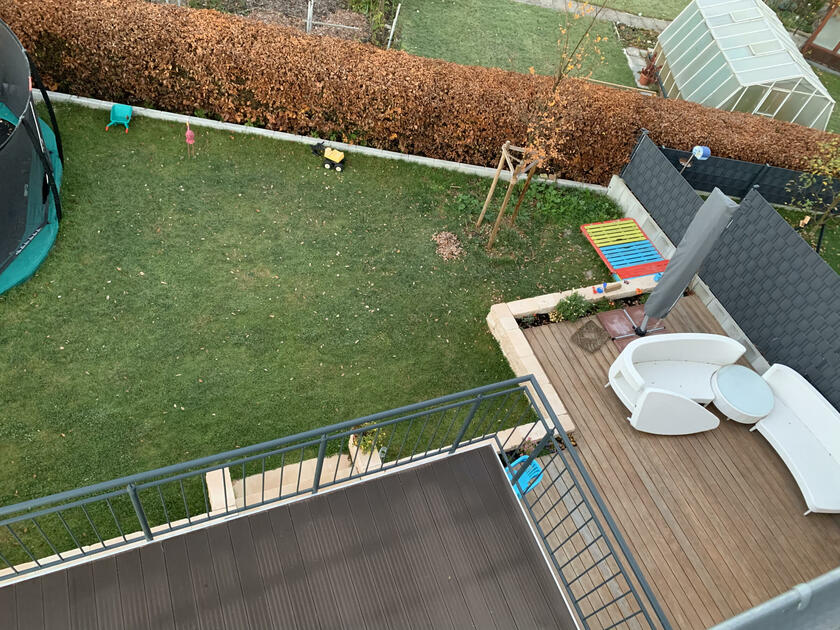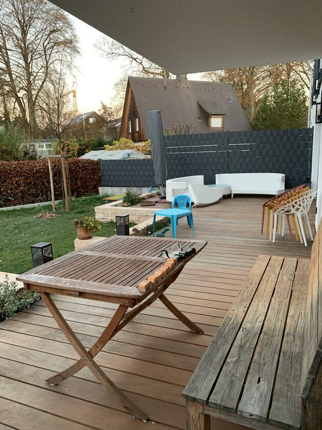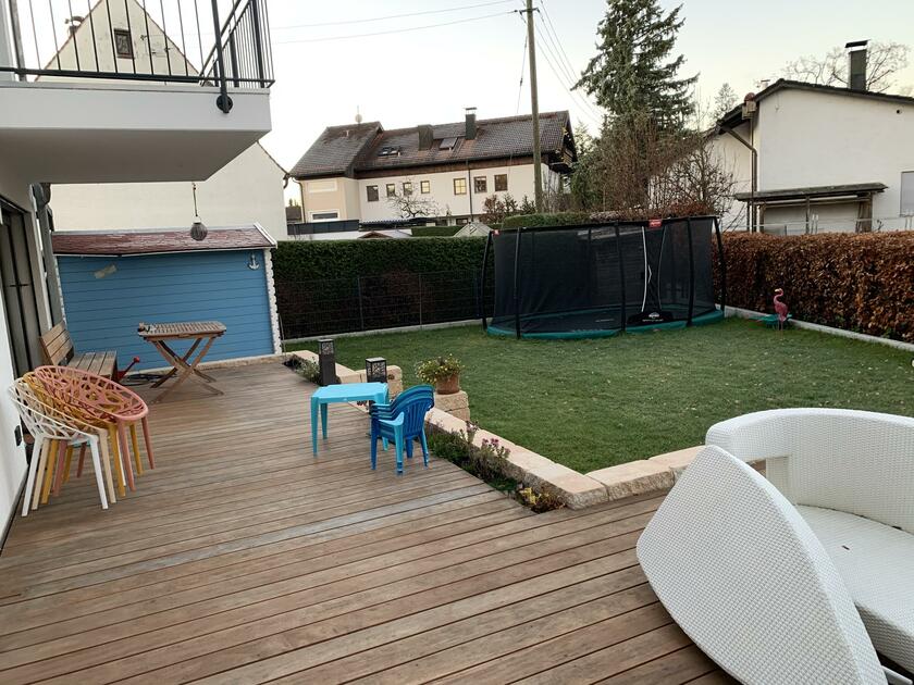 Die Doppelhaushälfte befindet sich im Münchner Westen nahe dem Naherholungsgebiet Langwied mit zwei Seen und verfügt über einen uneinsehbaren Garten