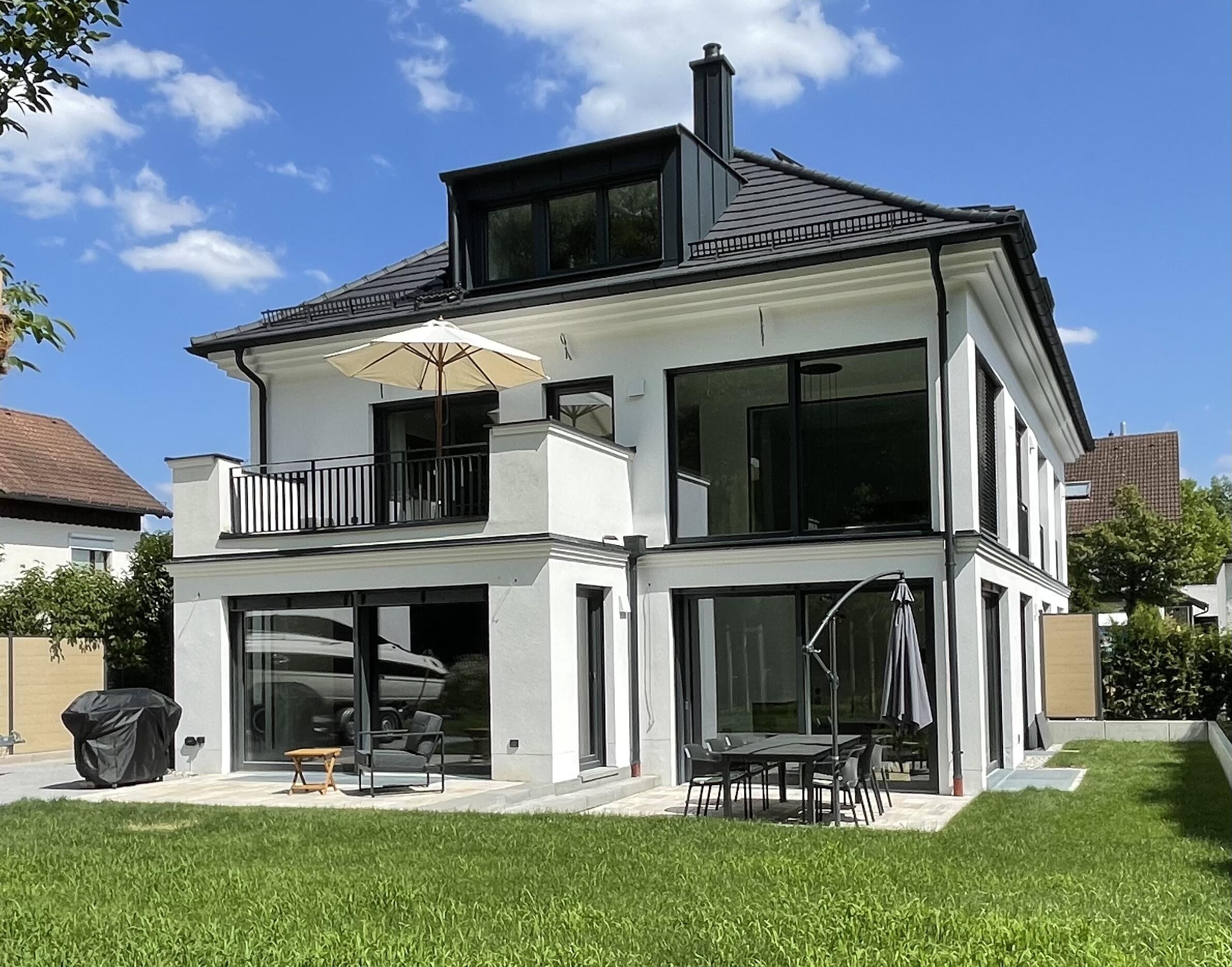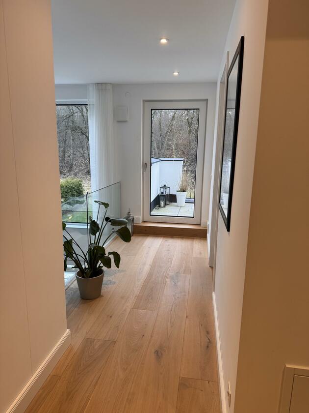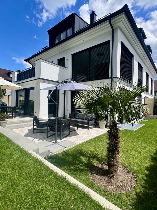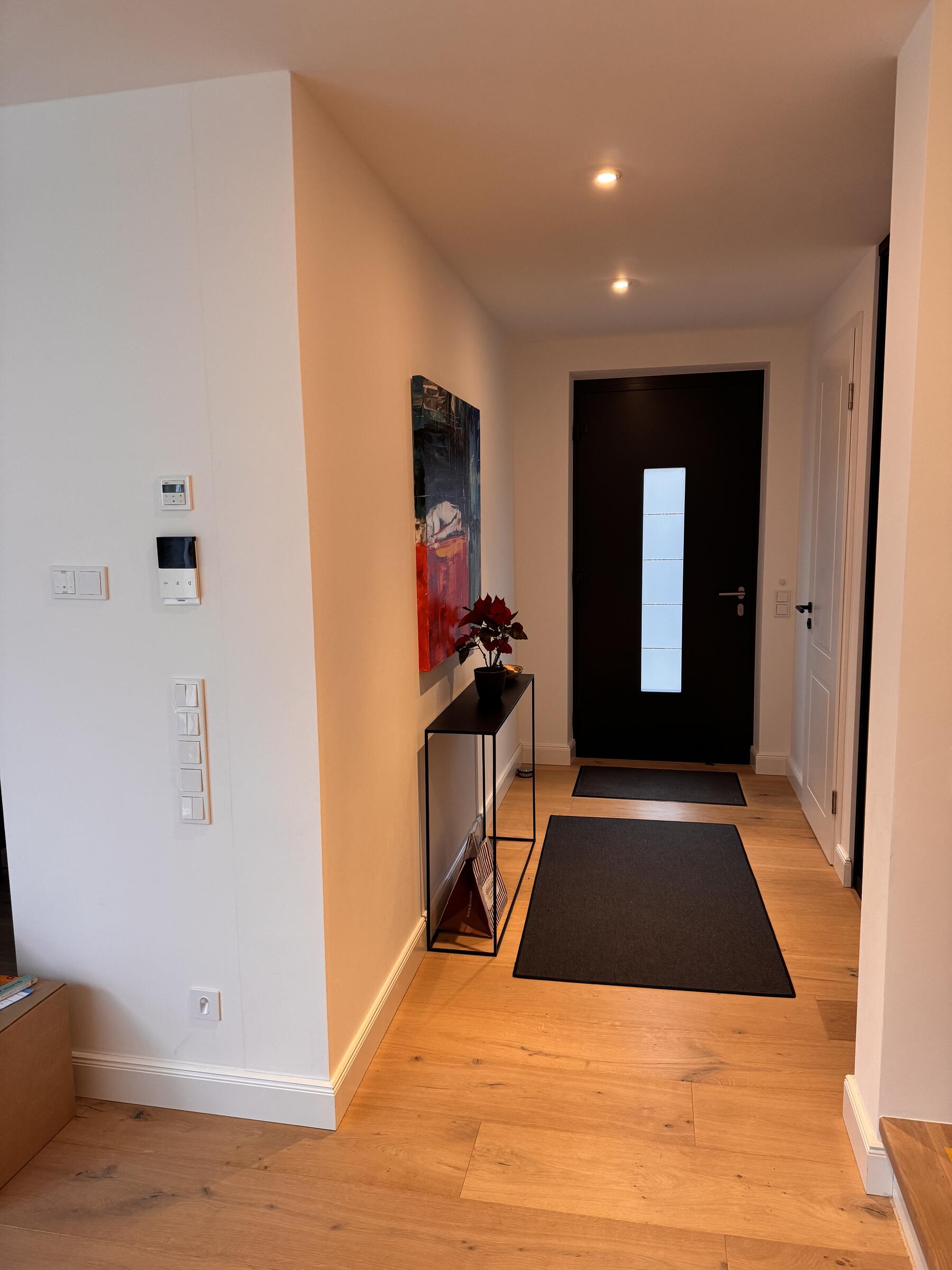 Unsere Doppelhaushälfte befindet sich am Stadtrand von München und wurde im Jahr 2023 gebaut. Das Haus ist modern und hochwertig eingerichtet und beeindruckt durch die offene Raumgestaltung und die großen Glasflächen, durch die viel Tageslicht in die Räume fällt. Auf den Böden der Wohnräume ist hochwertiges Eichenparkett verlegt. Die Fenster aller Räume können mit elektrischen Raffstores verdunkelt werden. Nach Absprache dürfen die Räume umgestaltet werden. Im Außenbereich stehen unsere 2 Terrassen zur Verfügung. Parkplätze gibt es auf der Auffahrt und in der näheren Umgebung des Hauses. Ebenfalls ist die Anfahrt mit Lkw möglich.