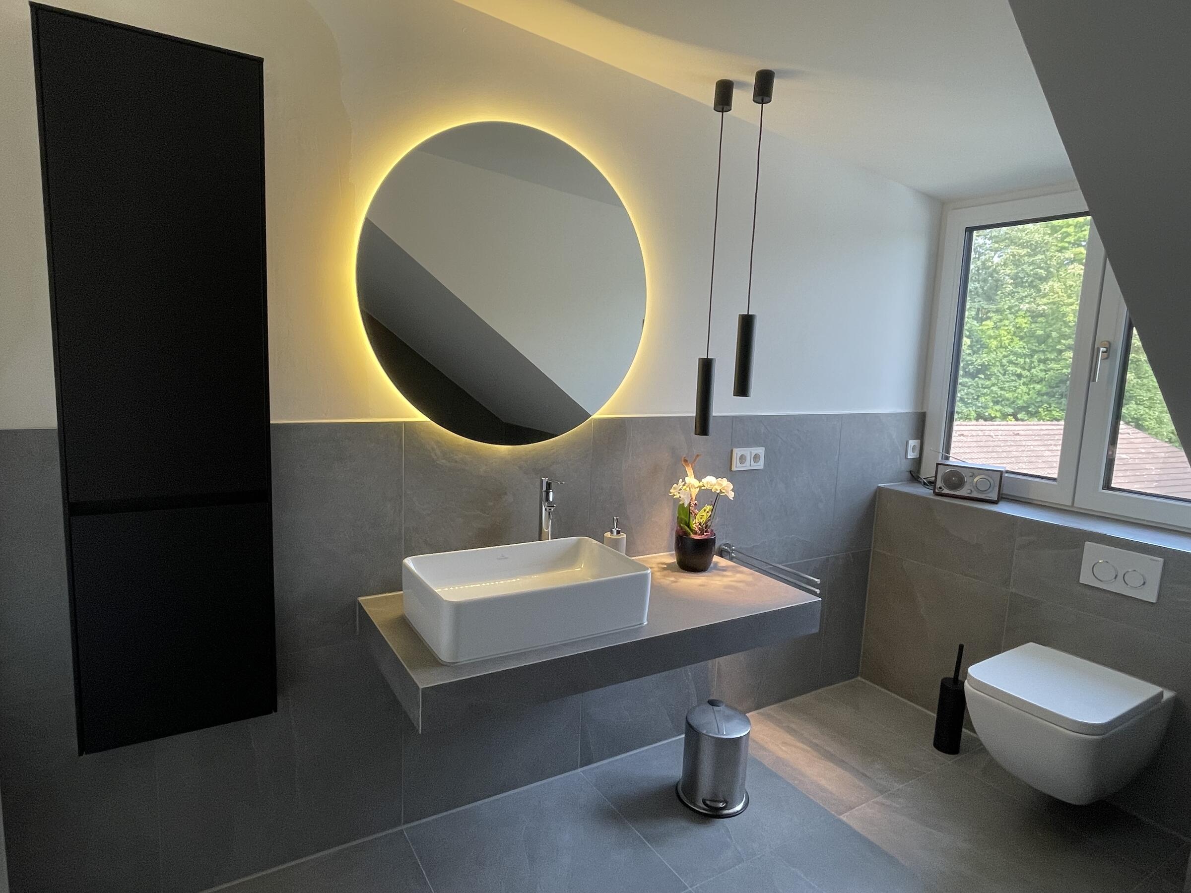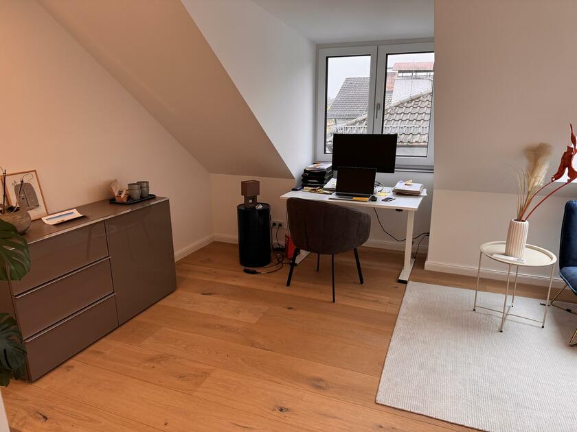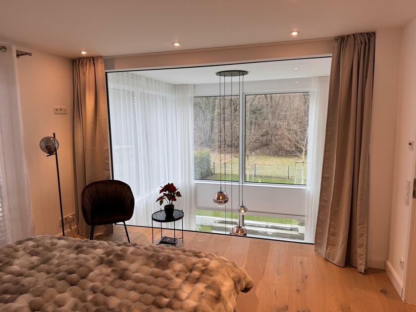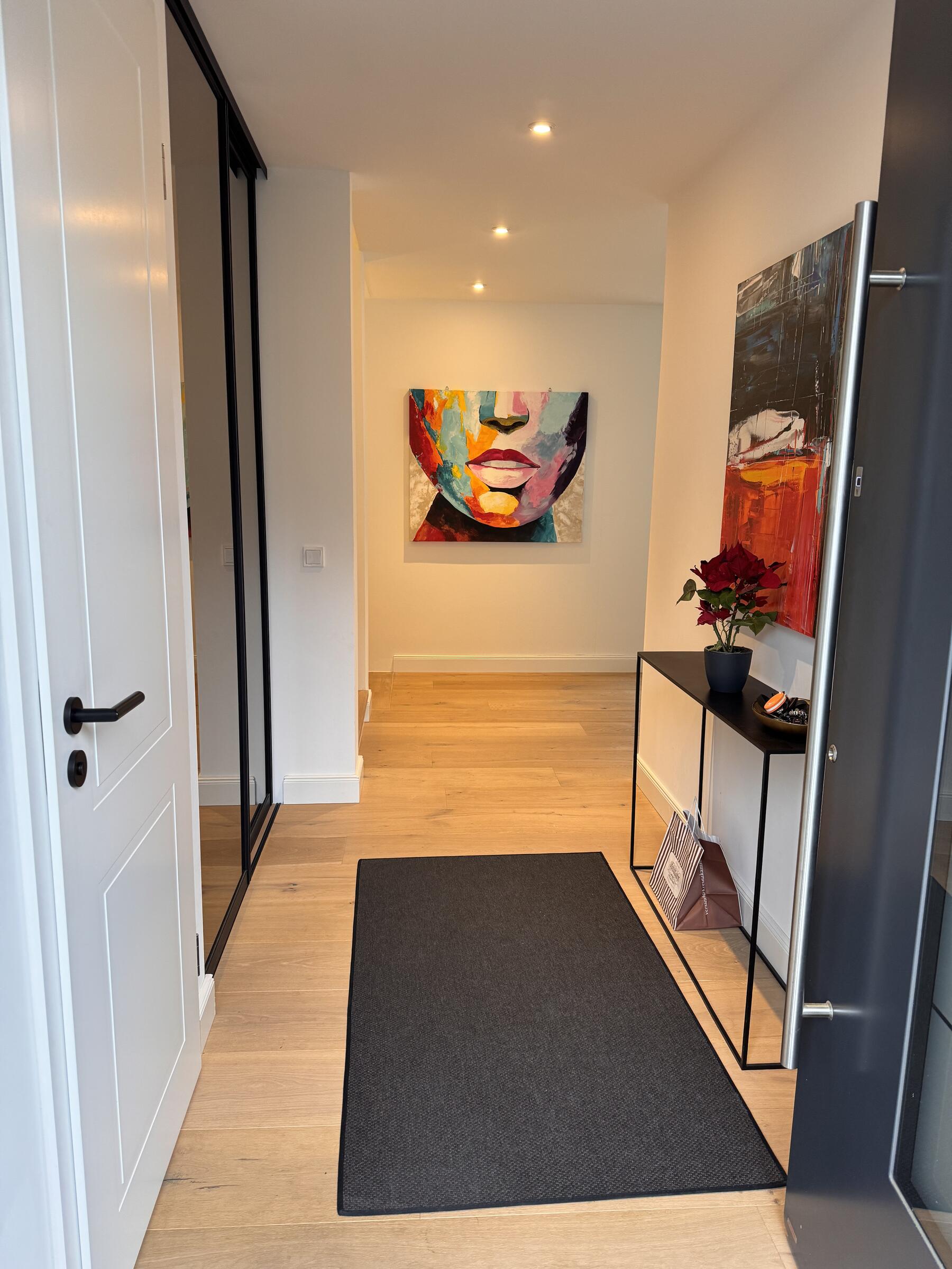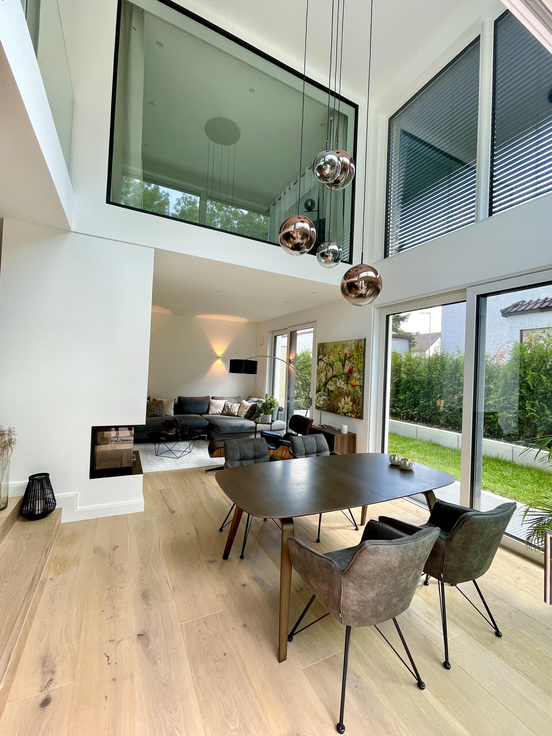Unsere Doppelhaushälfte befindet sich am Stadtrand von München und wurde im Jahr 2023 gebaut. Das Haus ist modern und hochwertig eingerichtet und beeindruckt durch die offene Raumgestaltung und die großen Glasflächen, durch die viel Tageslicht in die Räume fällt. Auf den Böden der Wohnräume ist hochwertiges Eichenparkett verlegt. Die Fenster aller Räume können mit elektrischen Raffstores verdunkelt werden. Nach Absprache dürfen die Räume umgestaltet werden. Im Außenbereich stehen unsere 2 Terrassen zur Verfügung. Parkplätze gibt es auf der Auffahrt und in der näheren Umgebung des Hauses. Ebenfalls ist die Anfahrt mit Lkw möglich.