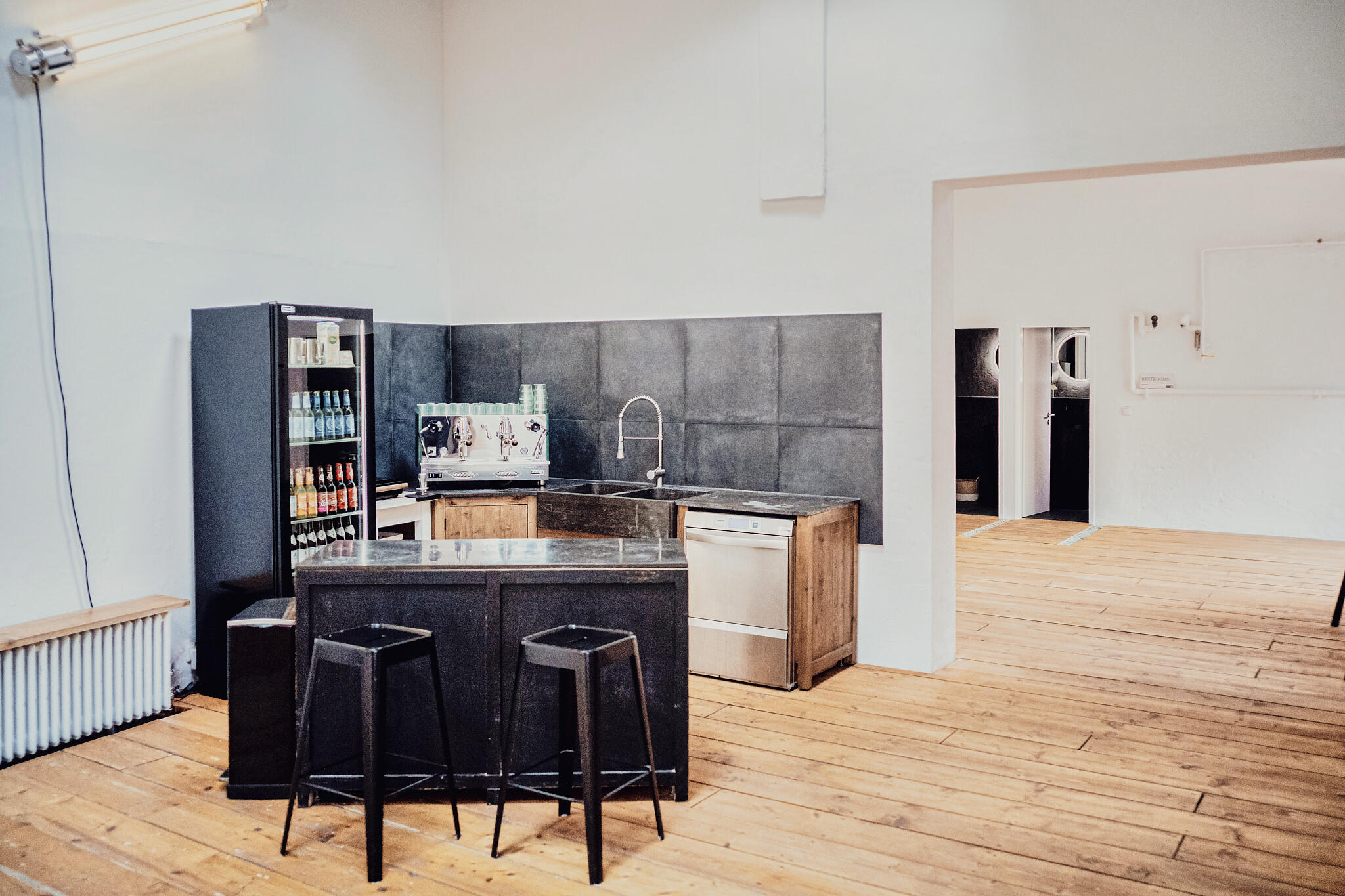 Unser Loftstudio befindet sich in München-Neuhausen in der Nähe des Rotkreuzplatz. Das wandelbare Studio bietet eine Deckenhöhe von 6,5 m und ist in einen Hauptraum mit großer und lichtdurchfluteter Studiofläche, 2 Nebenräume und einer Kaffee-Bar aufgeteilt. Die Fensterfronten können mithilfe von Vorhängen abgedunkelt werden. Die Böden der Räume sind mit rustikalen Holzdielen ausgelegt. Alle Raumelemente können flexibel und je nach Wunsch angeordnet werden. Im Außenbereich kann ebenfalls der Innenhof genutzt werden. Das Studio befindet sich an einer ruhigen Einbahnstraße.