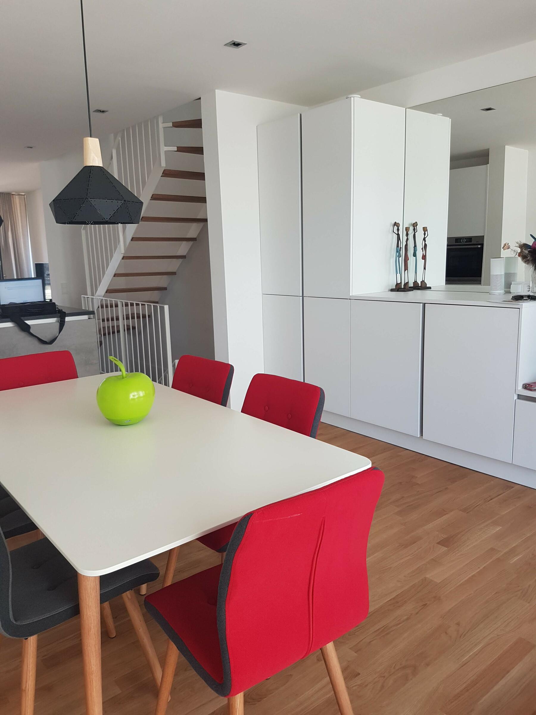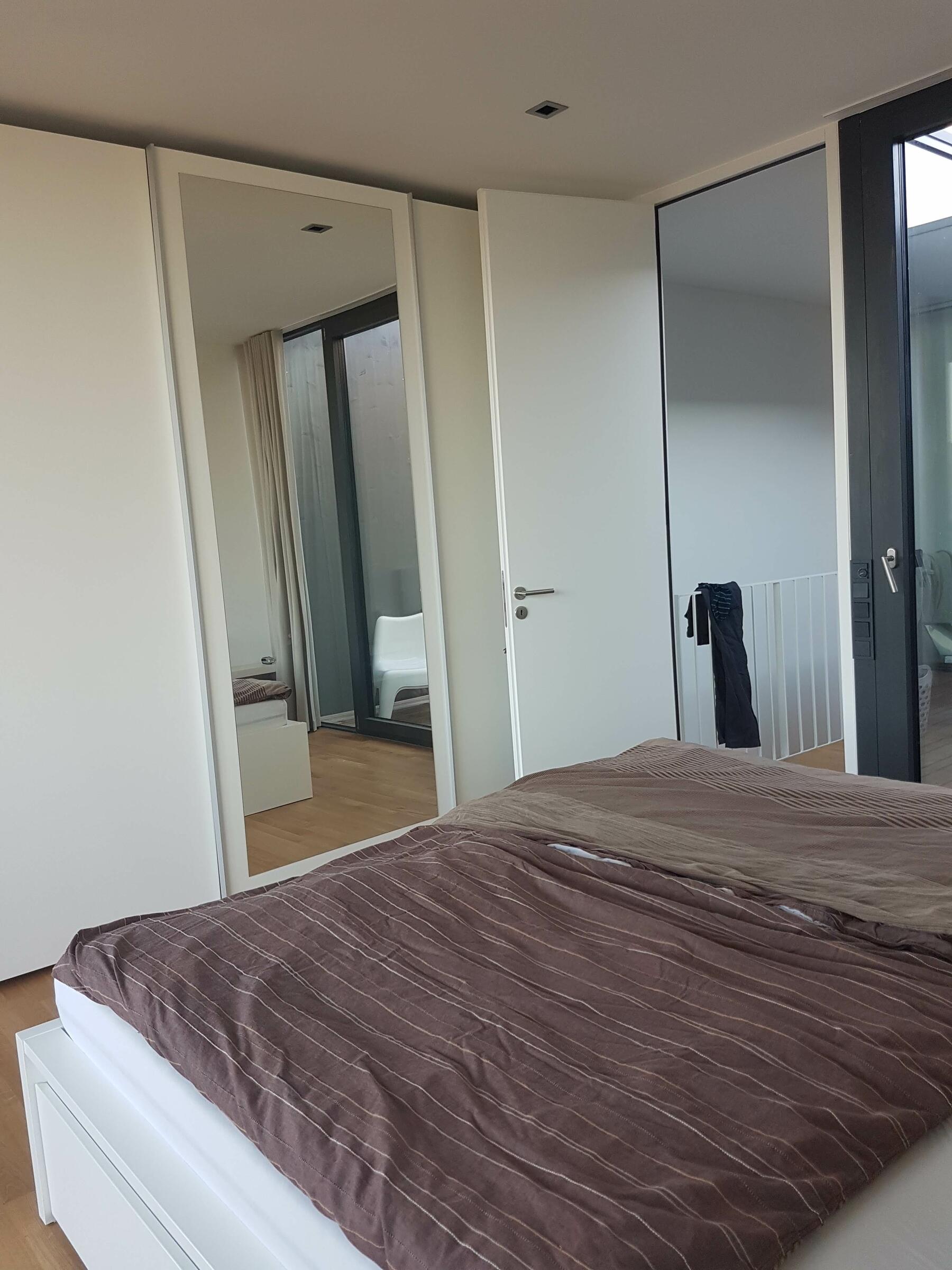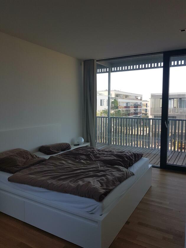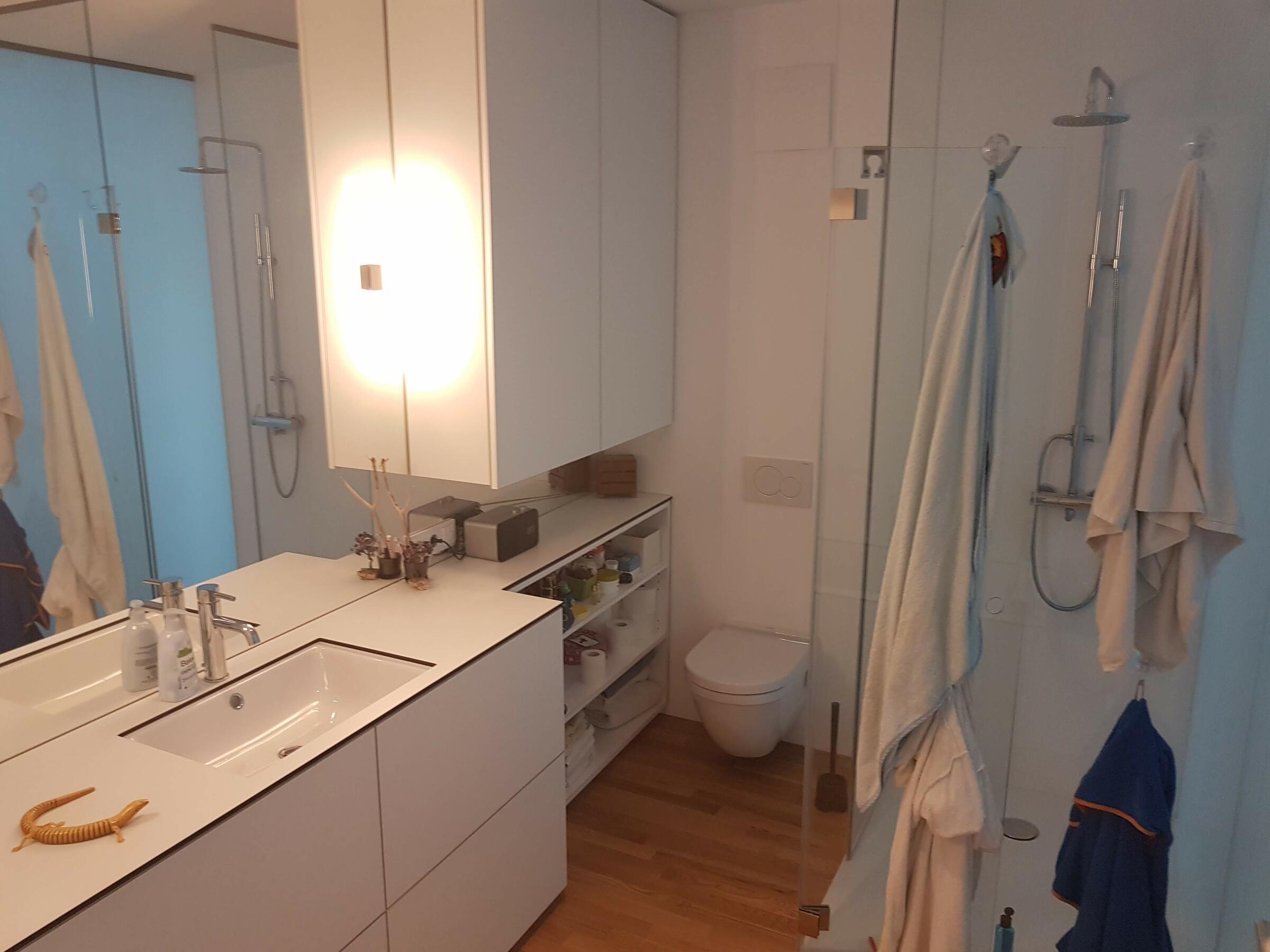 Das helle und offene Stadthaus aus dem Jahr 2018, hat vollverglaste Fronten und besteht aus 3 Etagen und Souterrain. Es steht in Südausrichtung und besitzt einen kleinen Garten. Die hochwertige Ausstattung besticht mit durchdachten Lichtinstallationen, Eichenparkett, Spiegeleinbauten, Einbauschränken und teilweise Designermöbeln. Das Erdgeschoss, mit seinen matten Glasfronten, ist vollständig offen und bietet eine weiße Küche mit mittig stehender Kücheninsel mit Steinplatte und Herd. Das Dachgeschoss hat einen innenliegenden Balkon, der 3 seitig verglast ist. Alle Zimmer in den Obergeschossen haben Balkone. Das Bad ist mit einer kompletten Milchglaswand, Schreinereinbauten sowie einem riesigen Spiegel ausgestattet. Es ist ein Tiefgaragenstellplatz vorhanden.