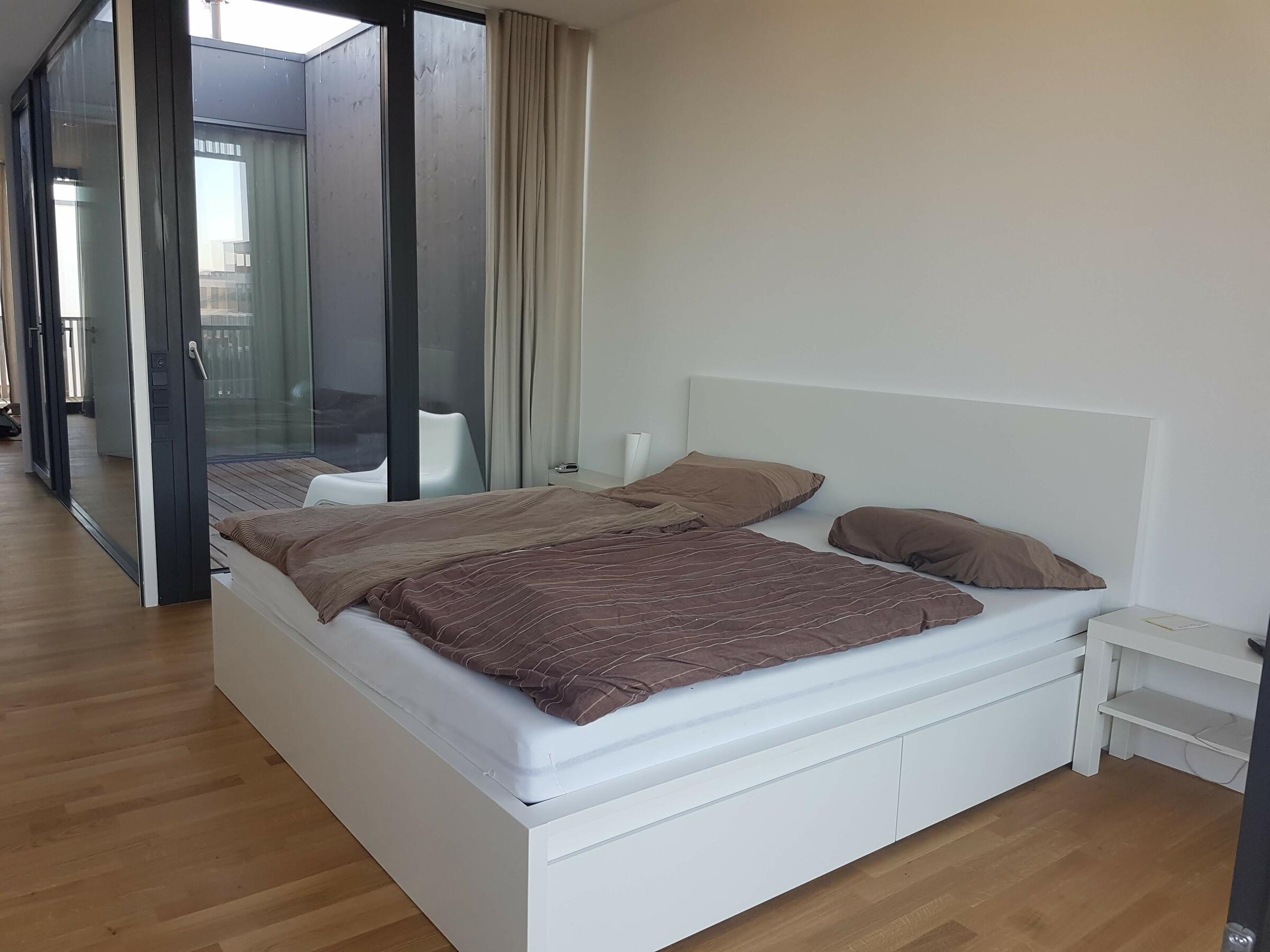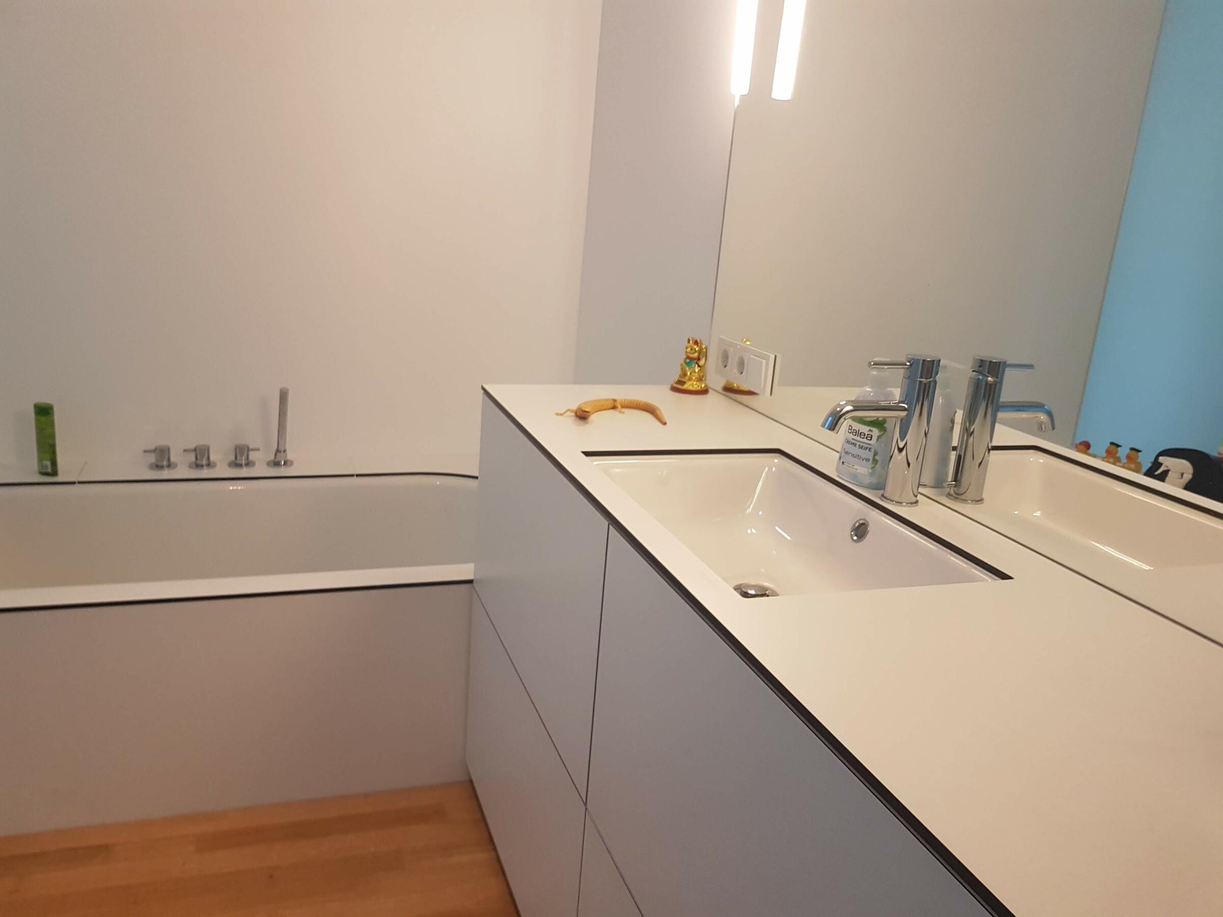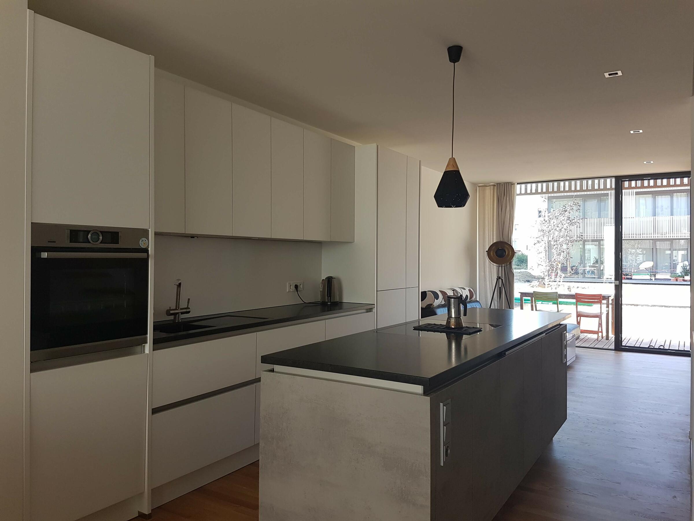 Das helle und offene Stadthaus aus dem Jahr 2018, hat vollverglaste Fronten und besteht aus 3 Etagen und Souterrain. Es steht in Südausrichtung und besitzt einen kleinen Garten. Die hochwertige Ausstattung besticht mit durchdachten Lichtinstallationen, Eichenparkett, Spiegeleinbauten, Einbauschränken und teilweise Designermöbeln. Das Erdgeschoss, mit seinen matten Glasfronten, ist vollständig offen und bietet eine weiße Küche mit mittig stehender Kücheninsel mit Steinplatte und Herd. Das Dachgeschoss hat einen innenliegenden Balkon, der 3 seitig verglast ist. Alle Zimmer in den Obergeschossen haben Balkone. Das Bad ist mit einer kompletten Milchglaswand, Schreinereinbauten sowie einem riesigen Spiegel ausgestattet. Es ist ein Tiefgaragenstellplatz vorhanden.