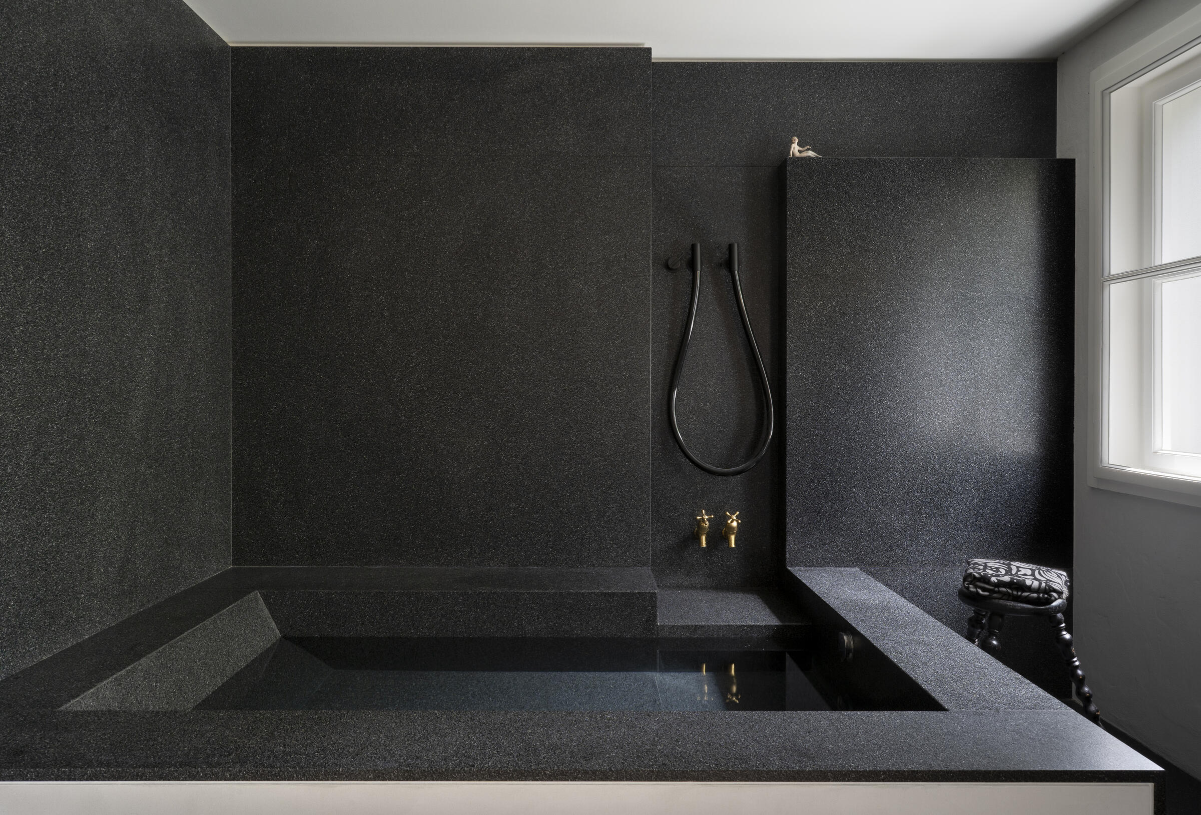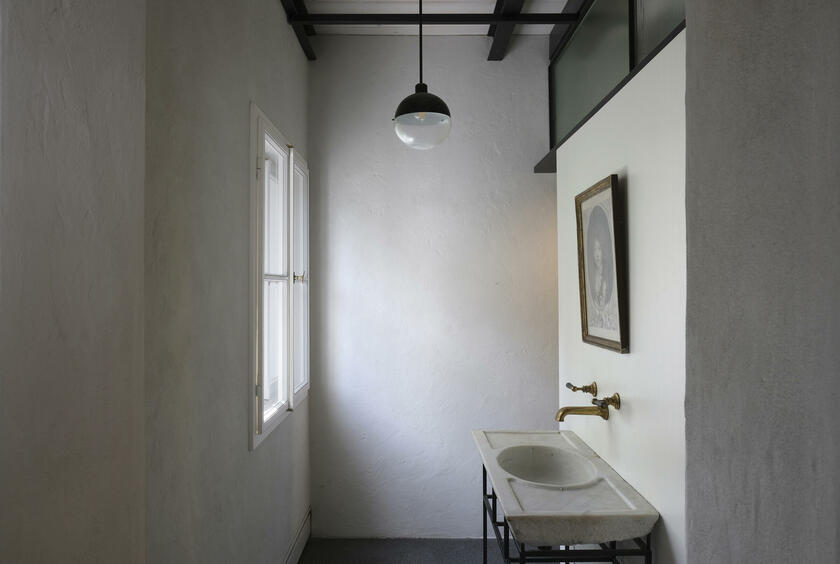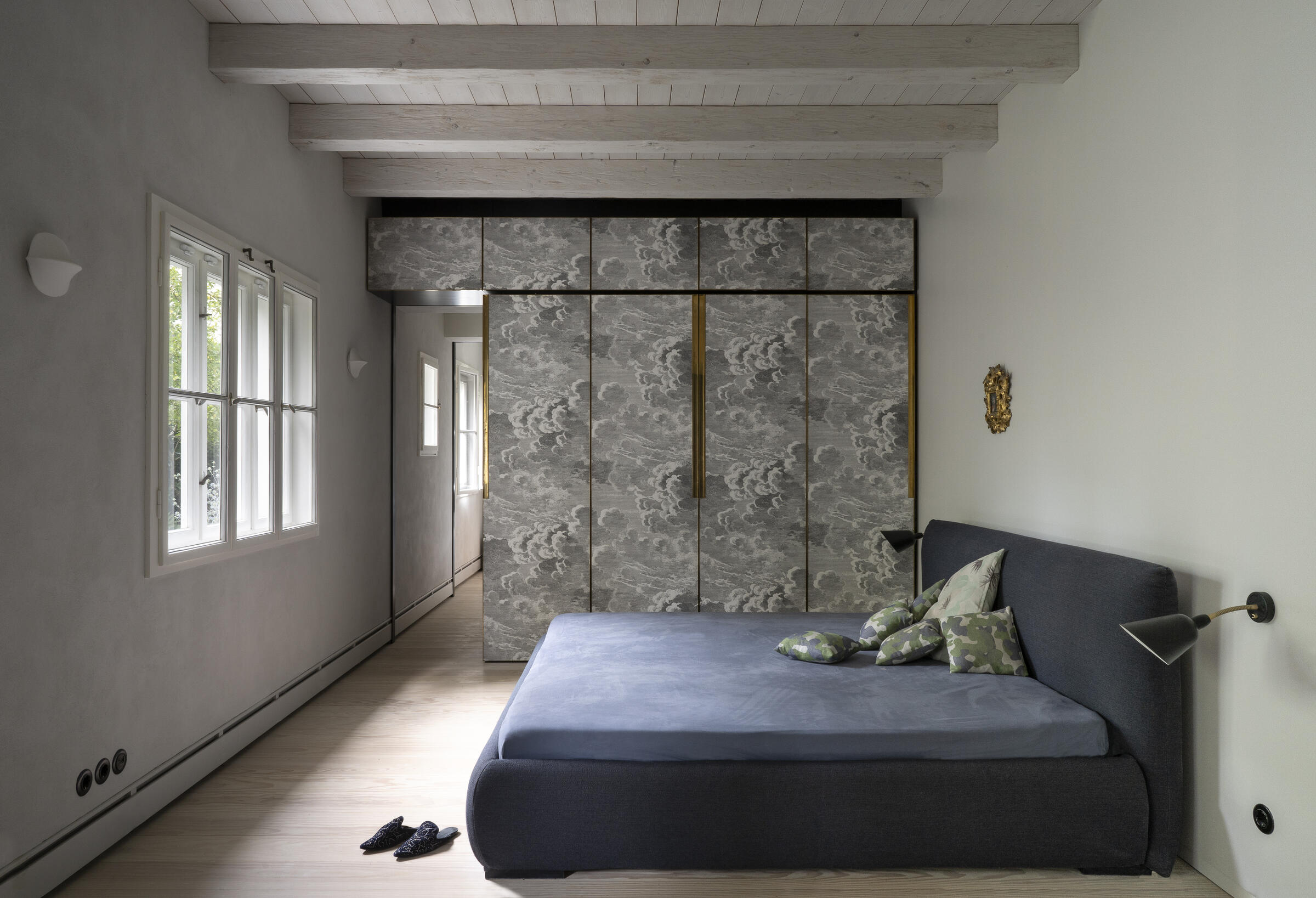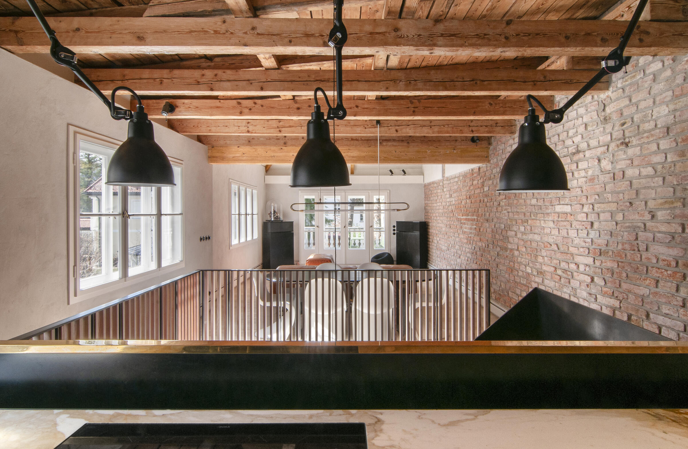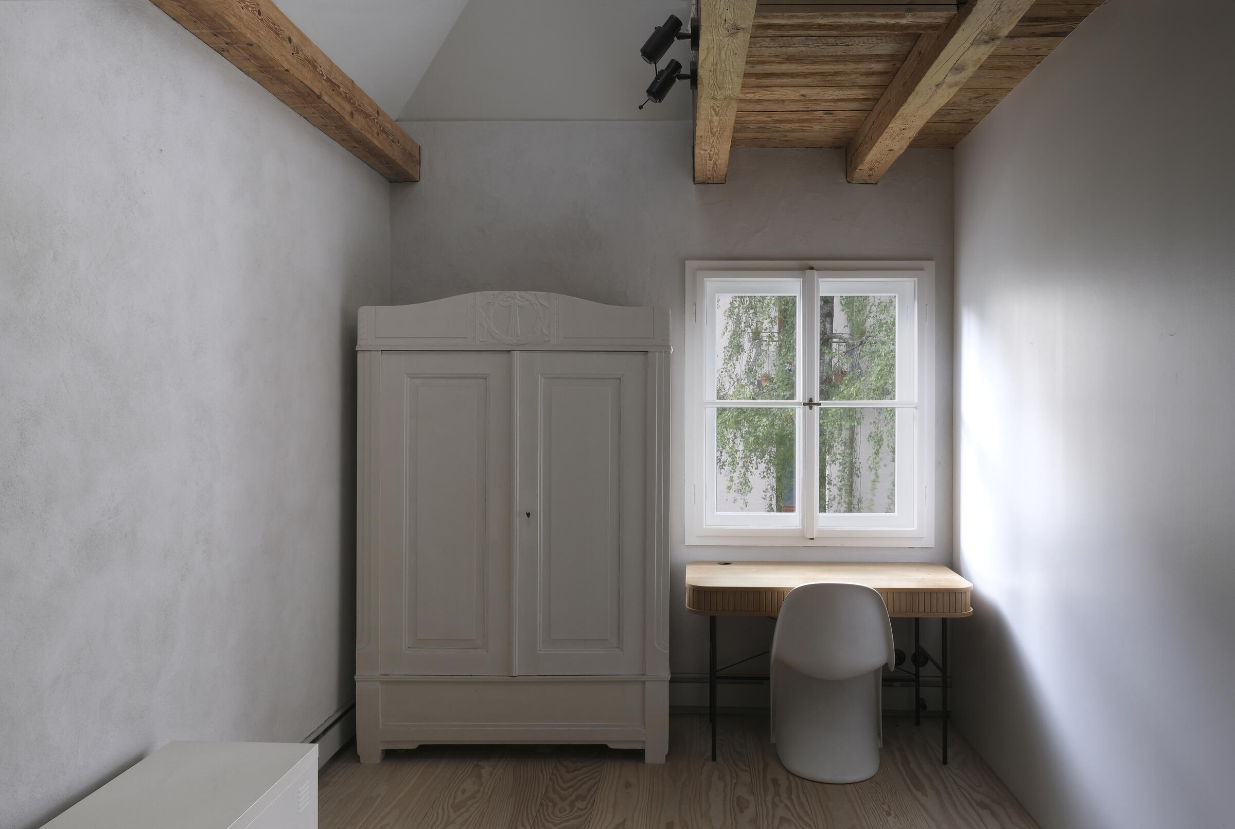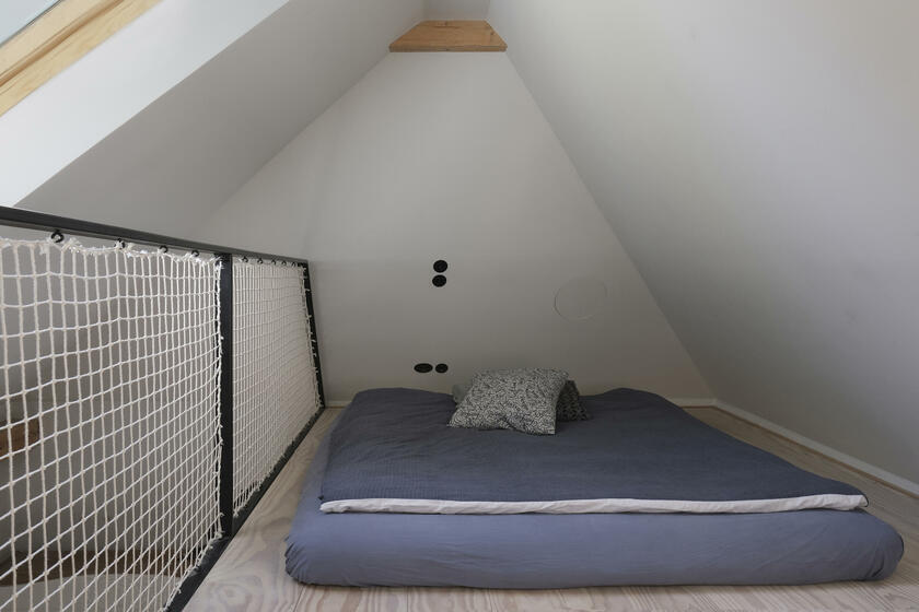Unser ruhig gelegenes Haus ist ein von italienischen Architekten liebevoll renovierter Altbau aus dem Jahr 1904. Über das Haus und dessen außergewöhnlichem Interior wurde bereits verschiedenen Publikationen, wie beispielsweise Architectural Digest und Cube berichtet. Im Eingangsbereich und Gang zum Kinderzimmer im EG sowie zum Seiteneingang und der Waschküche ist Terrazzo-Boden gegossen. Im Bad im EG besteht der Boden Naturstein. Im Kinderzimmer, Schlafzimmer und Arbeitszimmer wurden Douglasie-Dielen von Dinesen verlegt. Die Treppe ist eine Maßanfertigung aus Stahl. Im Haus sind außerdem Holzeinbauten aus Douglasie in Lamellenoptik verbaut. Im 1. OG befindet sich ein offener Küchen-Wohn-Essbereich ebenfalls mit Dielenboden, sowie ein weiteres Kinderzimmer mit Leiter ins ausgebaute Dach. Das Bad im 1. OG ist komplett mit Betonspachtel Mercatier und Messing-Einbauten gestaltet. Die Dachterrasse hat einen Betonfliesen-Boden. Überall sind Kastenfenster verbaut. Die Lampen sind größtenteils Vintage aus den 1950er Jahren. Die Lichtschalter sind aus Bakelit. In der Küche gibt es eine Arbeitsplatte aus Carrara Paonazetto Marmor. Im Wohnbereich ist ein Living Divani Extrasoft Sofa von Piero Lissoni. Im Arbeitszimmer im Erdgeschoss hängt eine Serge Mouille Lampe. Die Räume dürfen nur nach Absprache umgestaltet werden. Aktuell können die Fenster nicht verdunkelt werden. Vor dem Haus können 2 Pkw-Parkplätze genutzt werden. Weitere Parkplätze finden sich auf der Straße in der Nähe.