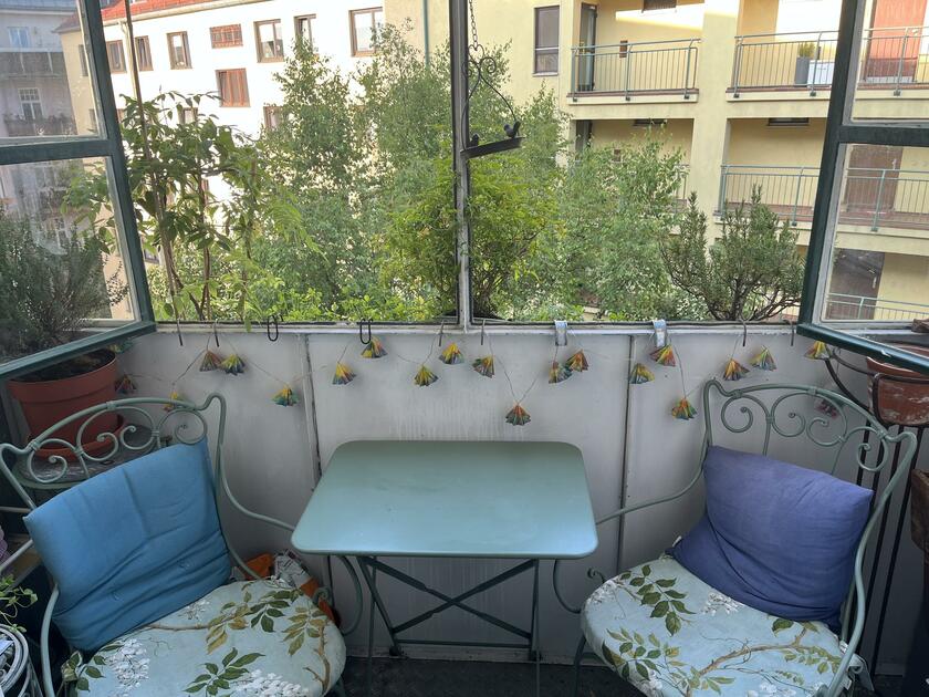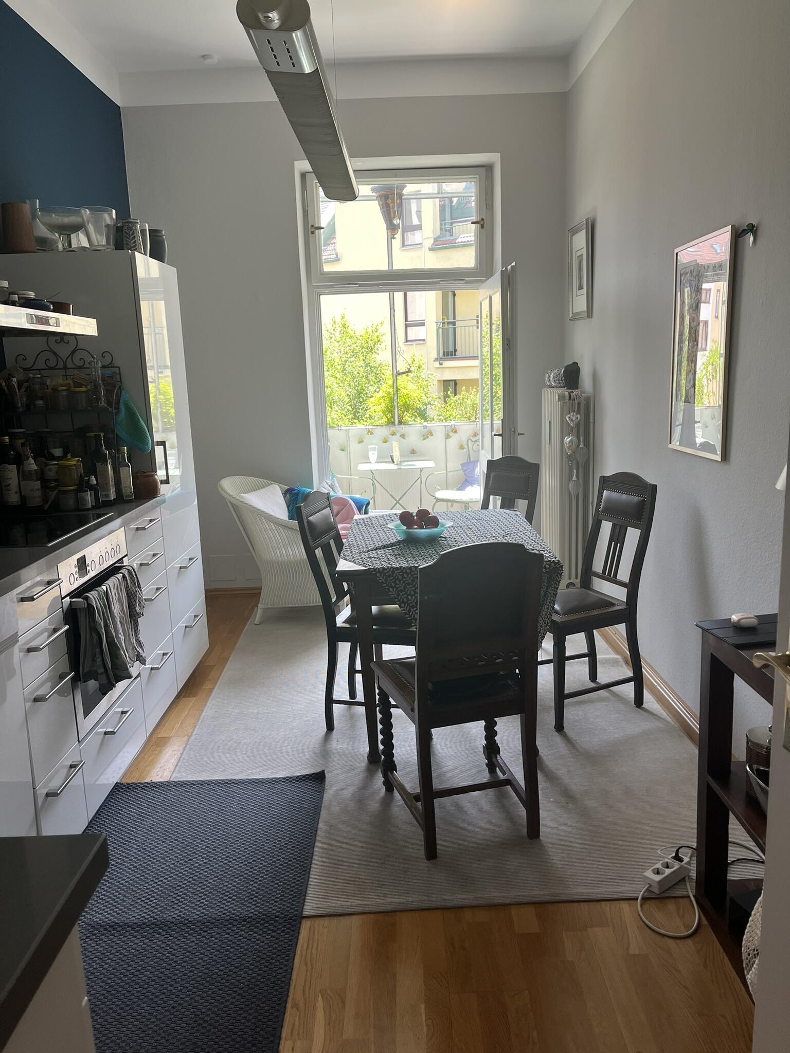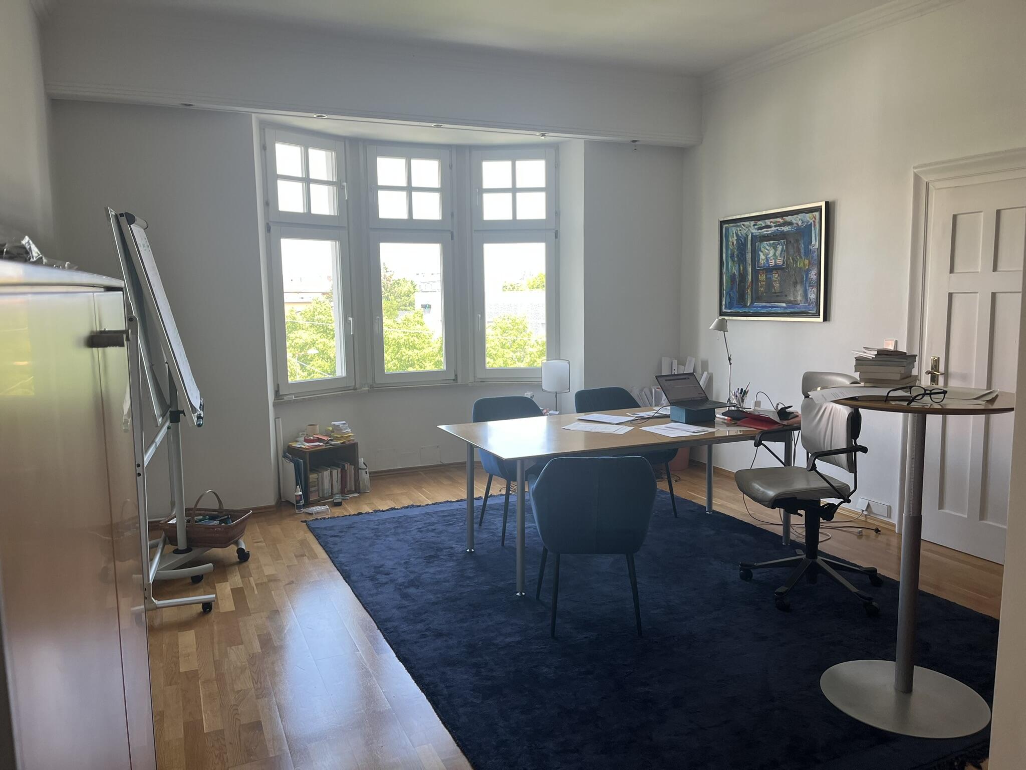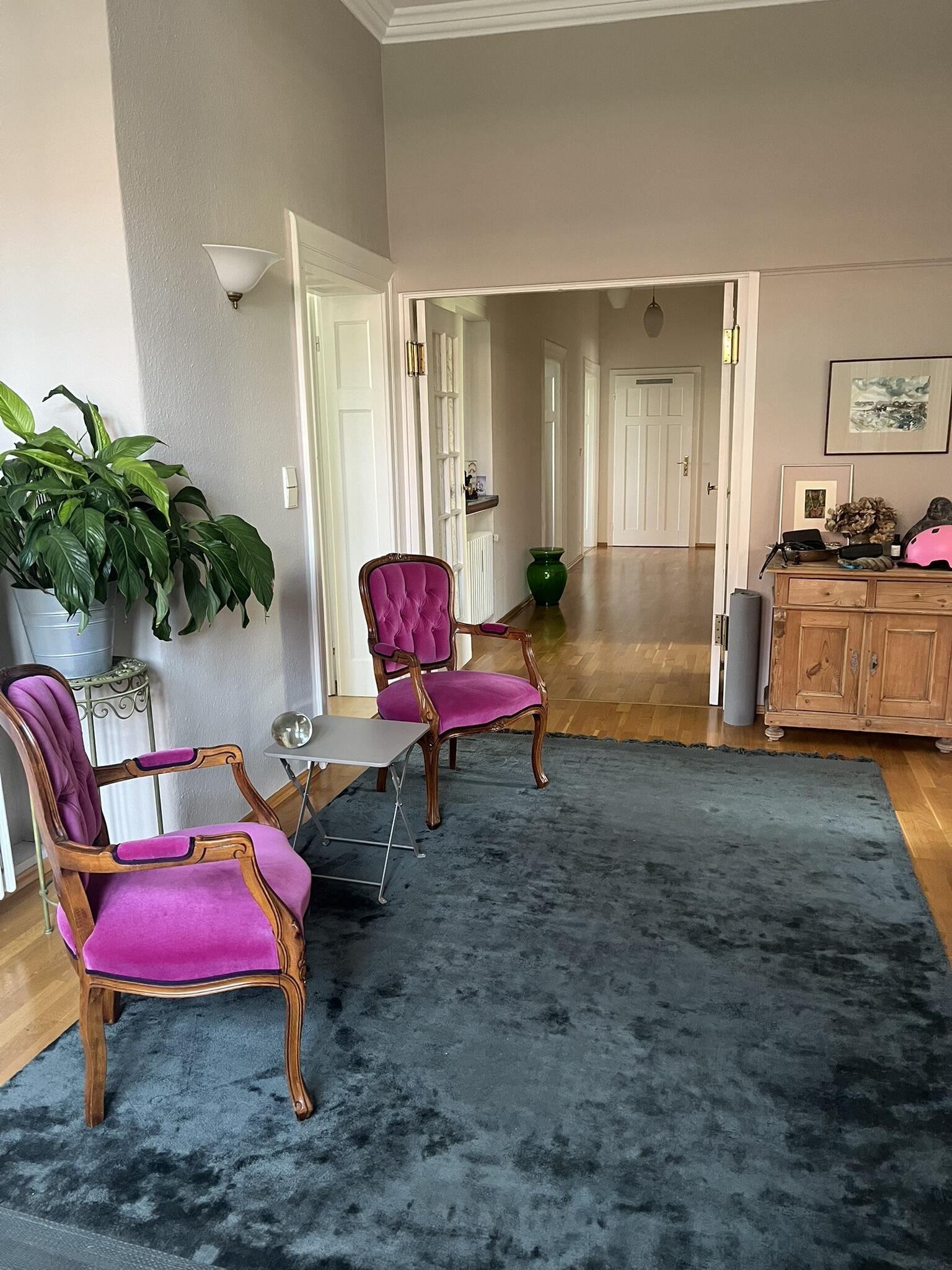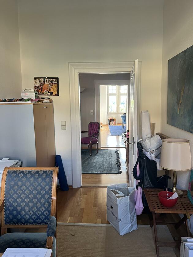 Die Altbauwohnung befindet sich im 3. Obergeschoss eines Wohn- und Geschäftshauses am Rotkreuzplatz. Die Einrichtung der Wohnung ist eine Mischung aus modern und alt. Auf den Böden ist hochwertiges Eichenparkett verlegt. Es fällt viel Tageslicht in die Wohnräume, die nach Absprache umgestaltet werden können. Die Fenster können teilweise verdunkelt werden. Es stehen Räume für Maske und Garderobe zur Verfügung. Aufgrund des Verkehrslärms der vorbeiführenden Hauptverkehrsstraßen, sind Produktionen mit O-Tonaufnahmen nur sehr eingeschränkt möglich. Parkplätze finden sich in der Nähe auf der Straße.