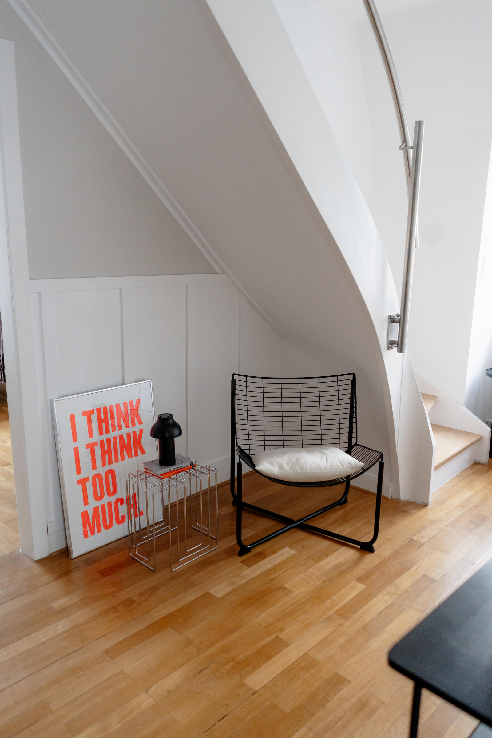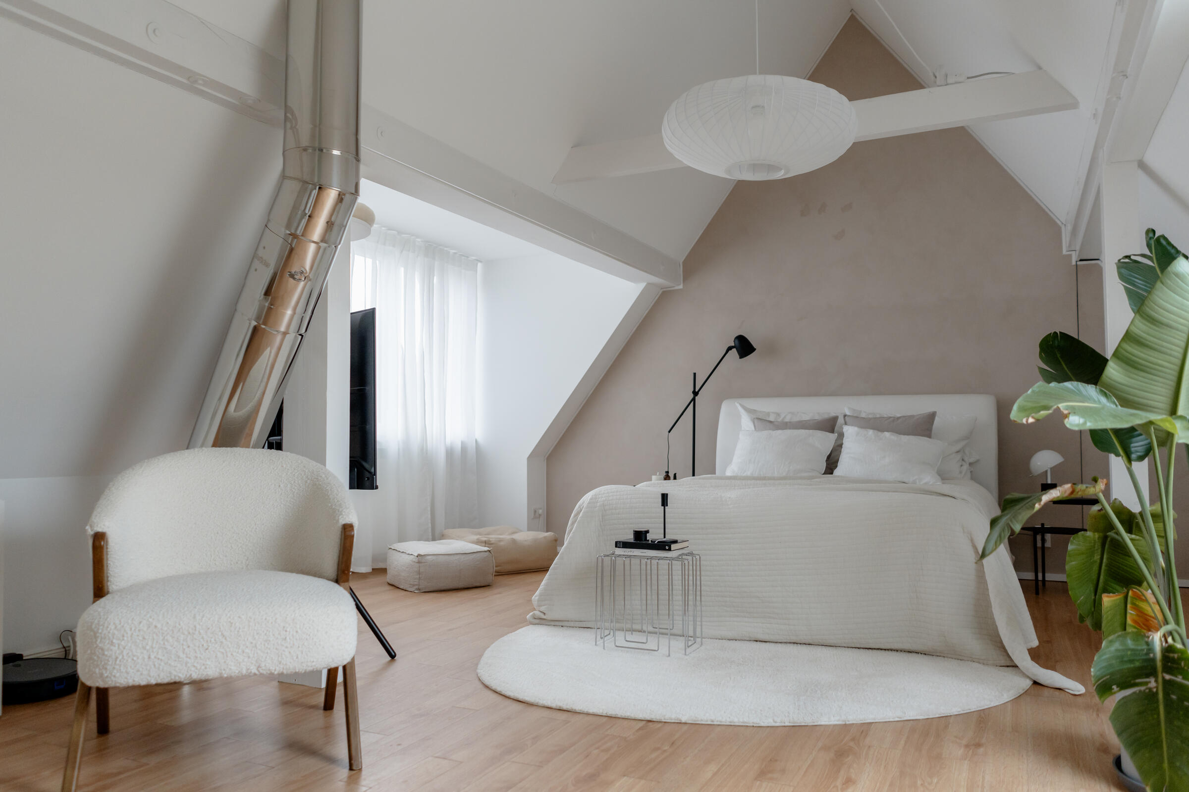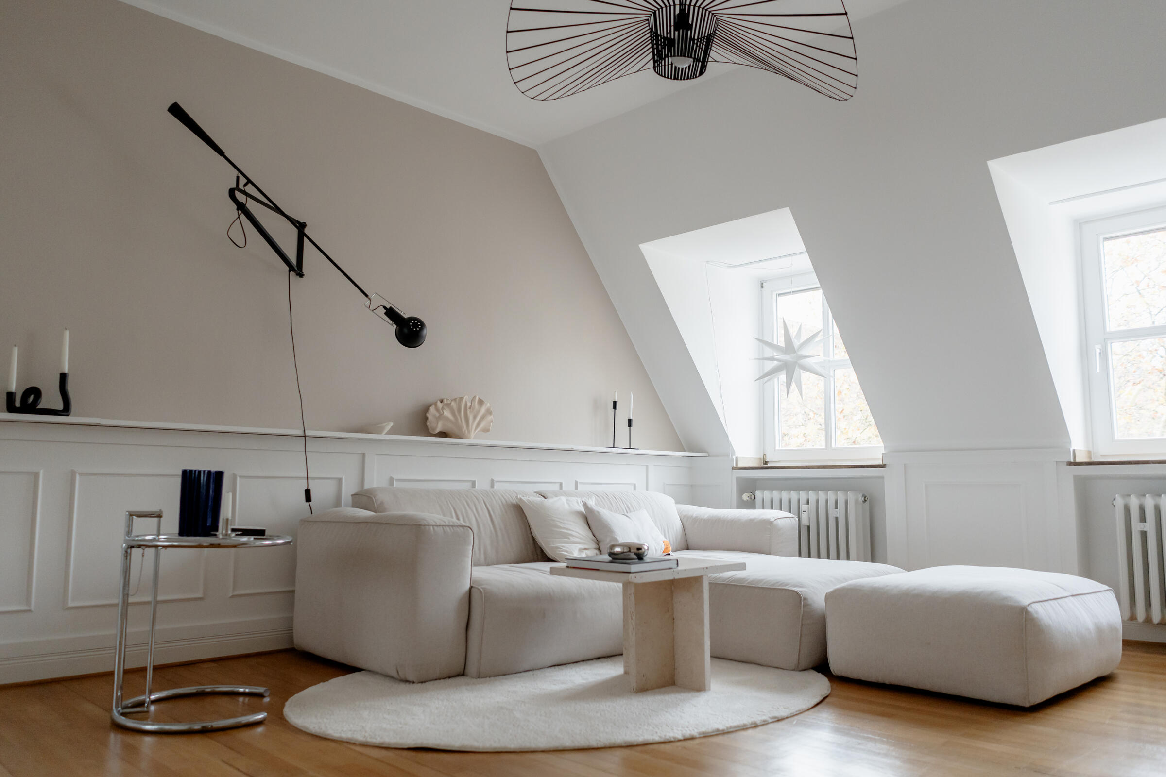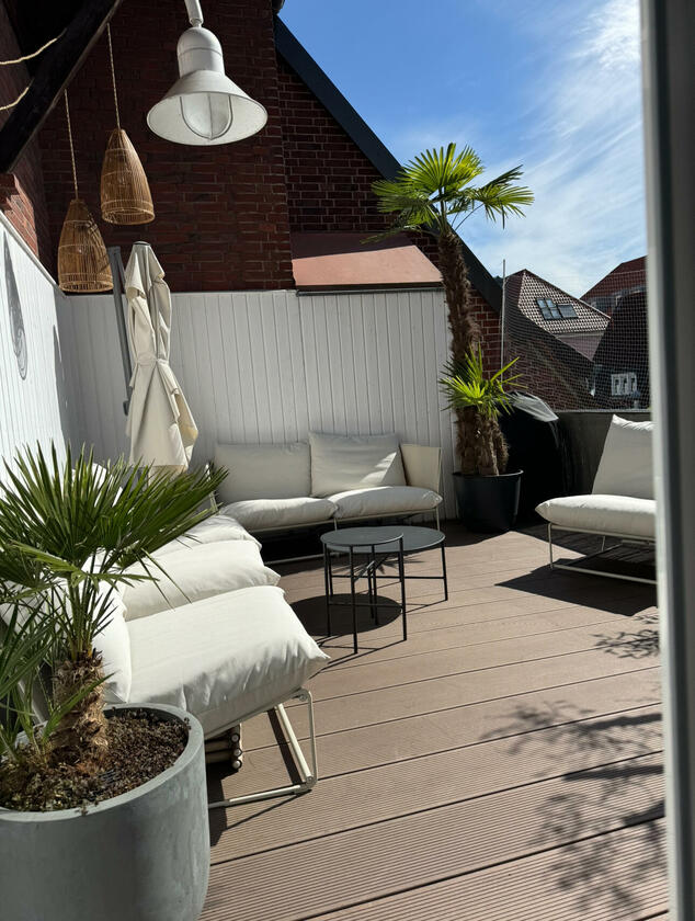 Die Maisonette-Wohnung befindet sich in einem Wohn- und Geschäftshaus im Zentrum von Münster. Die Räume der Wohnung sind hell und geschmackvoll mit Design-Möbeln eingerichtet. Auf den Böden der Wohnräume ist Parkett verlegt. Der Boden der vollausgestatteten Küche hat ein Schachbrettmuster. Einige Räume bieten dekorative Wandkassetten. Das Schlafzimmer mit hoher Spitzbodendecke und Balken befindet sich unter dem Dach des Hauses. Eine Dachterrasse, mit Zugang durch die Küche, steht ebenfalls zur Verfügung. Vor dem Haus gibt es eine Ladezone. Ein Parkhaus befindet sich direkt nebenan.