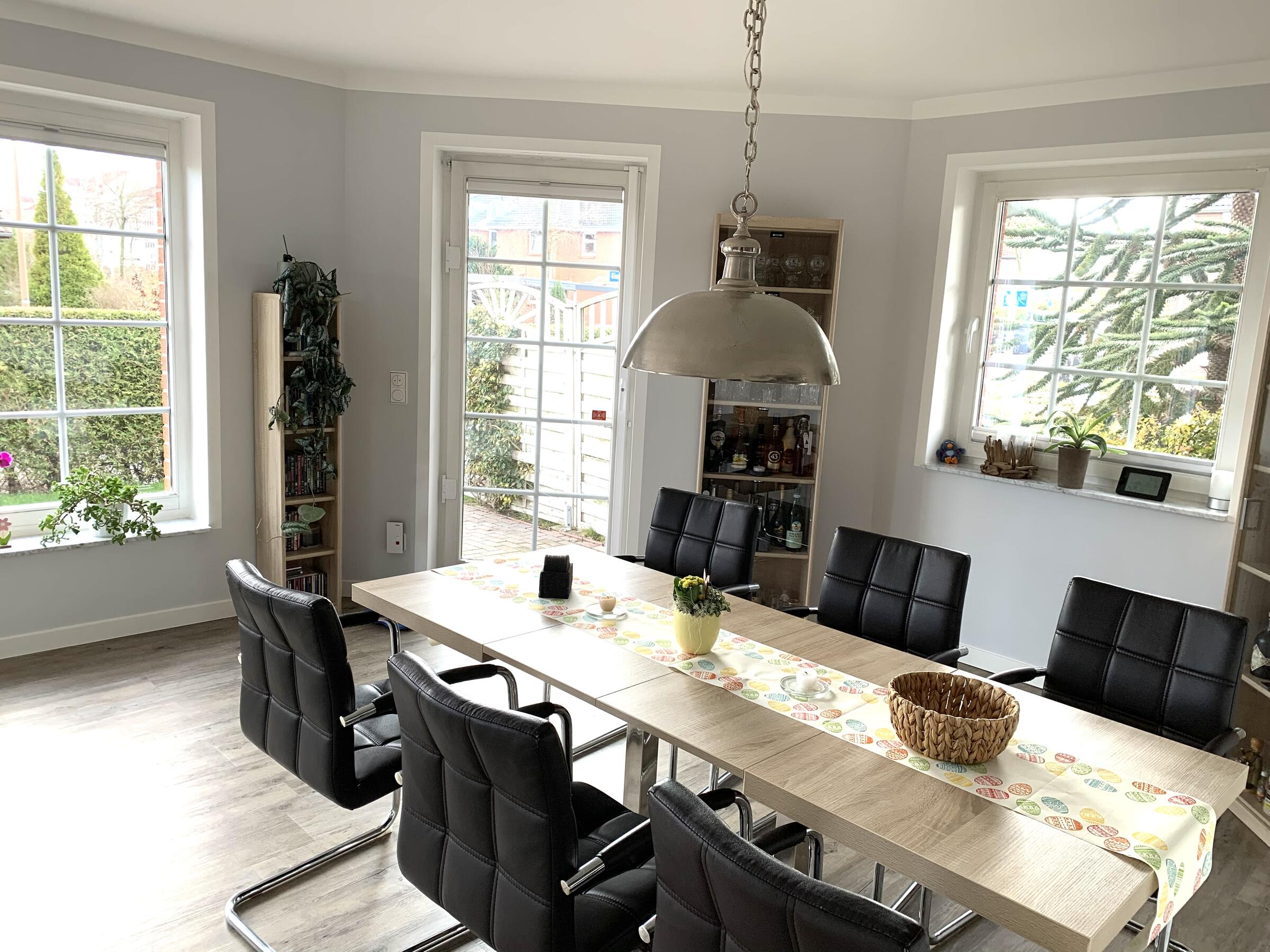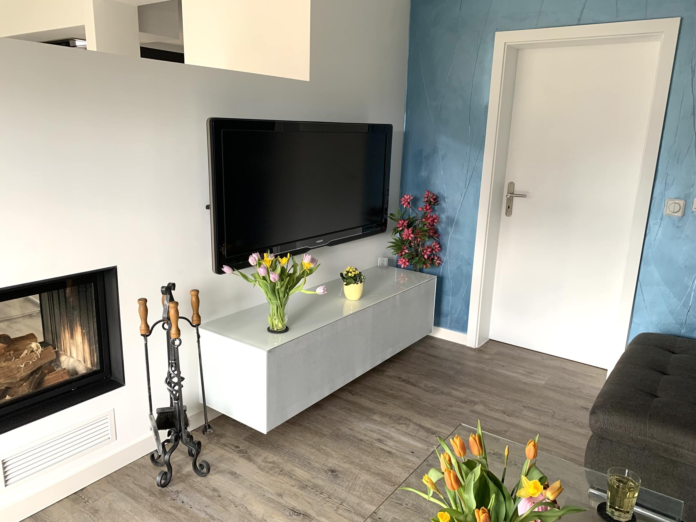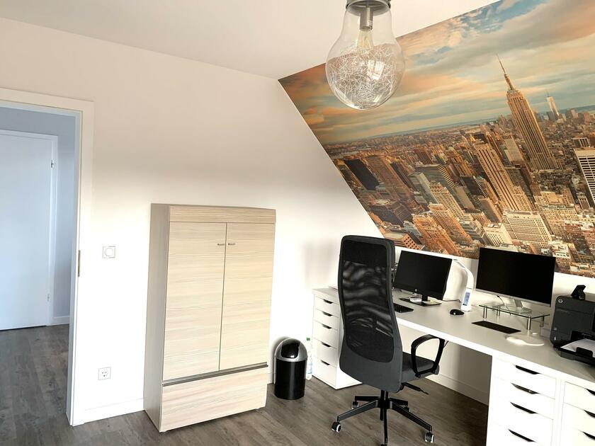 Unser Einfamilienhaus erstreckt sich über ca. 300 qm und ist in 3 Etagen (EG, 1. und 2. OG) und einen großzügigen Keller unterteilt, der aus einer Tiefgarage und drei weiteren Räumen besteht. Die komplette Einrichtung ist neu und modern, eine umfassende Sanierung und Neueinrichtung wurde im Sommer 2019 beendet.