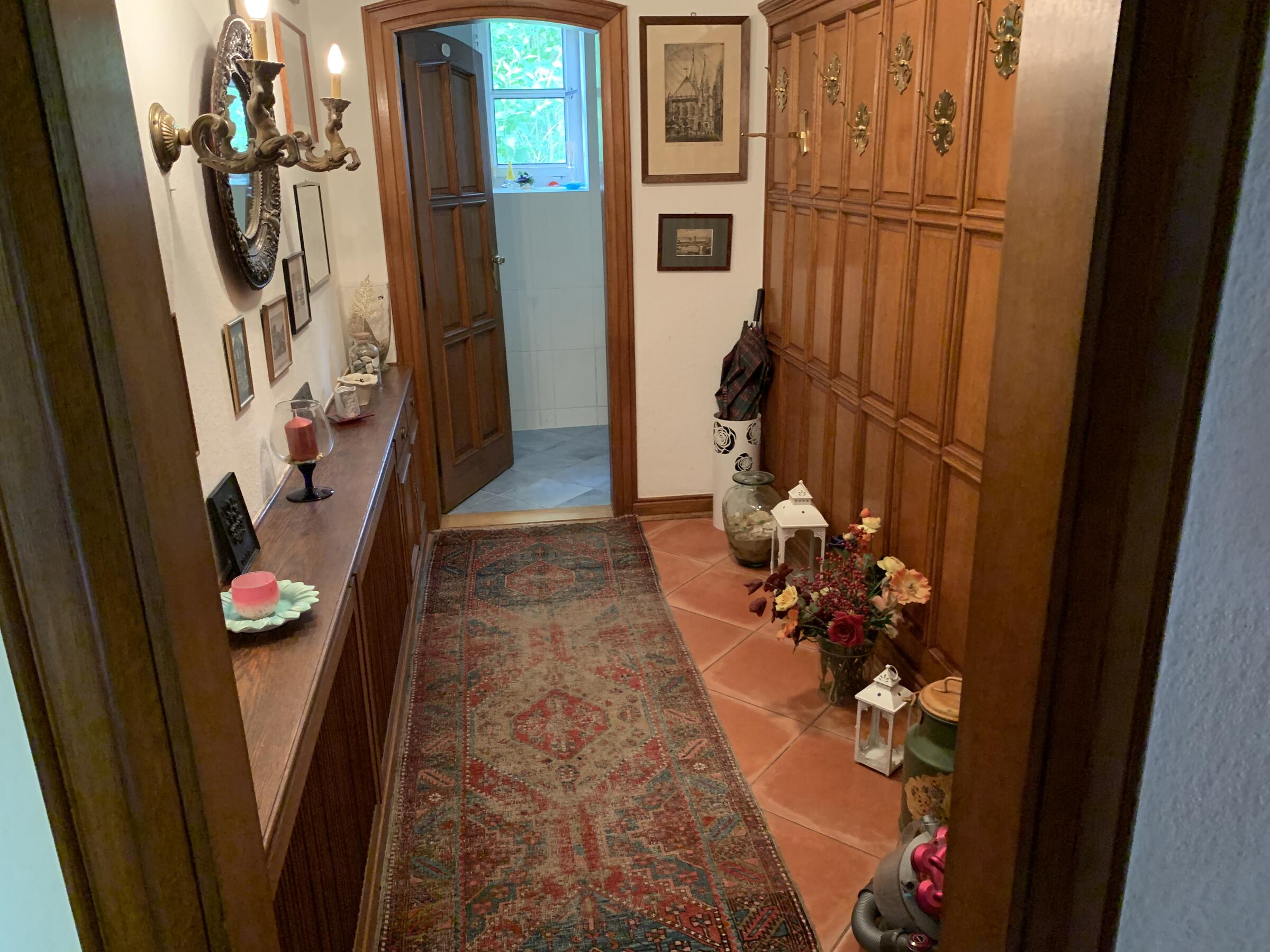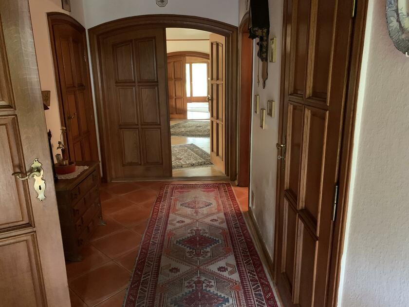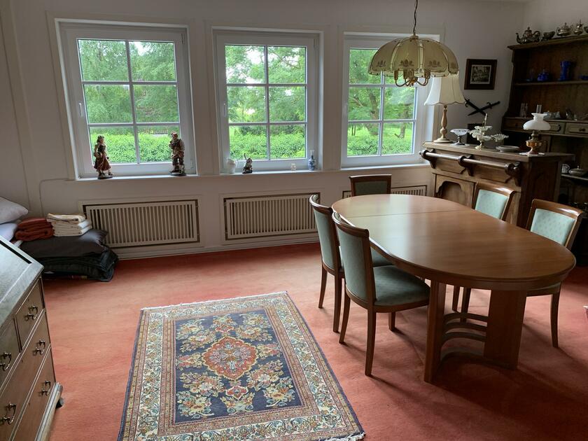 Das freistehende und teilweise mit einer Mauer umgebene Haus bietet eine Innenraumfläche von ca. 400 m² und befindet sich auf einem großem Grundstück mit Altbaumbestand. Das Haus wurde ungefähr im Jahr 1900 erbaut und in den 1960er Jahren renoviert. Bis Anfang des Jahres 2022 war das Haus bewohnt. Im Innenbereich bietet das Haus 10 Wohnräume sowie eine Küche und 5 kleine Badezimmer. In den Räume finden sich einige Antiquitäten. Im Wohnbereich sind die Wände vertäfelt und durch die Fenster fällt viel Tageslicht. Neben dem großen und weitläufigen Grundstück stehen auch 2 Garagen und ein Parkplatz zur Verfügung.