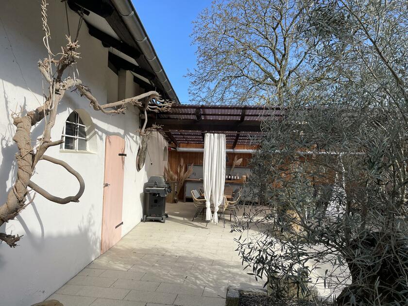 Unser im Jahr 1865 gebautes Bauernhaus wurde im Jahr 2019 aufwändig umgebaut und saniert. Der große, lichtdurchflutete Wohnbereich bietet mit der darüber liegenden Galerie 7 m Deckenhöhe. Im Außenbereich steht ein teilweise überdachter und somit wetterfester Innenhof mit einem riesigen Olivenbaum und einem Lounge-Bereich, die voll eingerichtete Werkstatt, der große Scheunenboden sowie der 1.300 m² große Garten mit eigenen Obstbäumen zur Verfügung. Die Anlieferung und Lagerung von Produktionsausrüstung ist in der Scheune und Garage Garage möglich. Die Scheune bietet genug Platz, um beispielsweise Ausrüstung und Dekorationen für mehrere Motive vorzubereiten. Der Zugang zum Haupthaus und allen Hauptmotiven kann durch die Hauswirtschaftsräume erfolgen. Die Zufahrt und der Hof bieten Platz für min. 6 Fahrzeuge. Wir sind erfahrene Motivgebende. Mehrere Produktionen haben bei uns bereits stattgefunden.