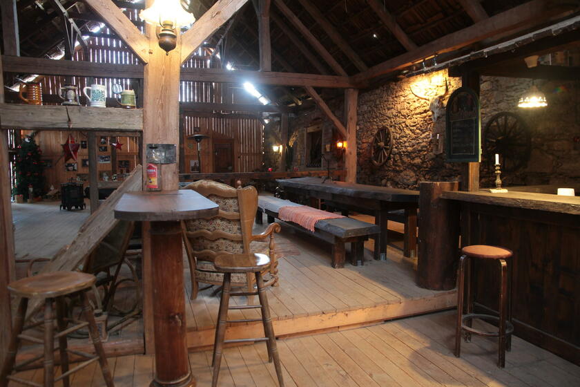 Diese einzigartige Scheune wurde im Stil eines Western Saloon umgebaut. Die Scheune ist sehr alt und besticht durch ihre authentische Atmosphäre mit vielen alten Balken und wunderschönen Steinmauern. Zur Ausstattung gehören beispielsweise alte Bierfässer, große Heuwagen, ein altes Piano und viele weitere rustikale Accessoires. Die Scheune ist nicht beheizt und daher im Winter nur eingeschränkt nutzbar. Im Außenbereich kann ebenfalls der Garten genutzt werden. Parkplätze stehen vor der Scheune auf der vorbeiführenden und kaum befahrenen Straße zur Verfügung. Die Autobahn Nürnberg-Pilsen-Prag ist nur ca. 5 km entfernt.