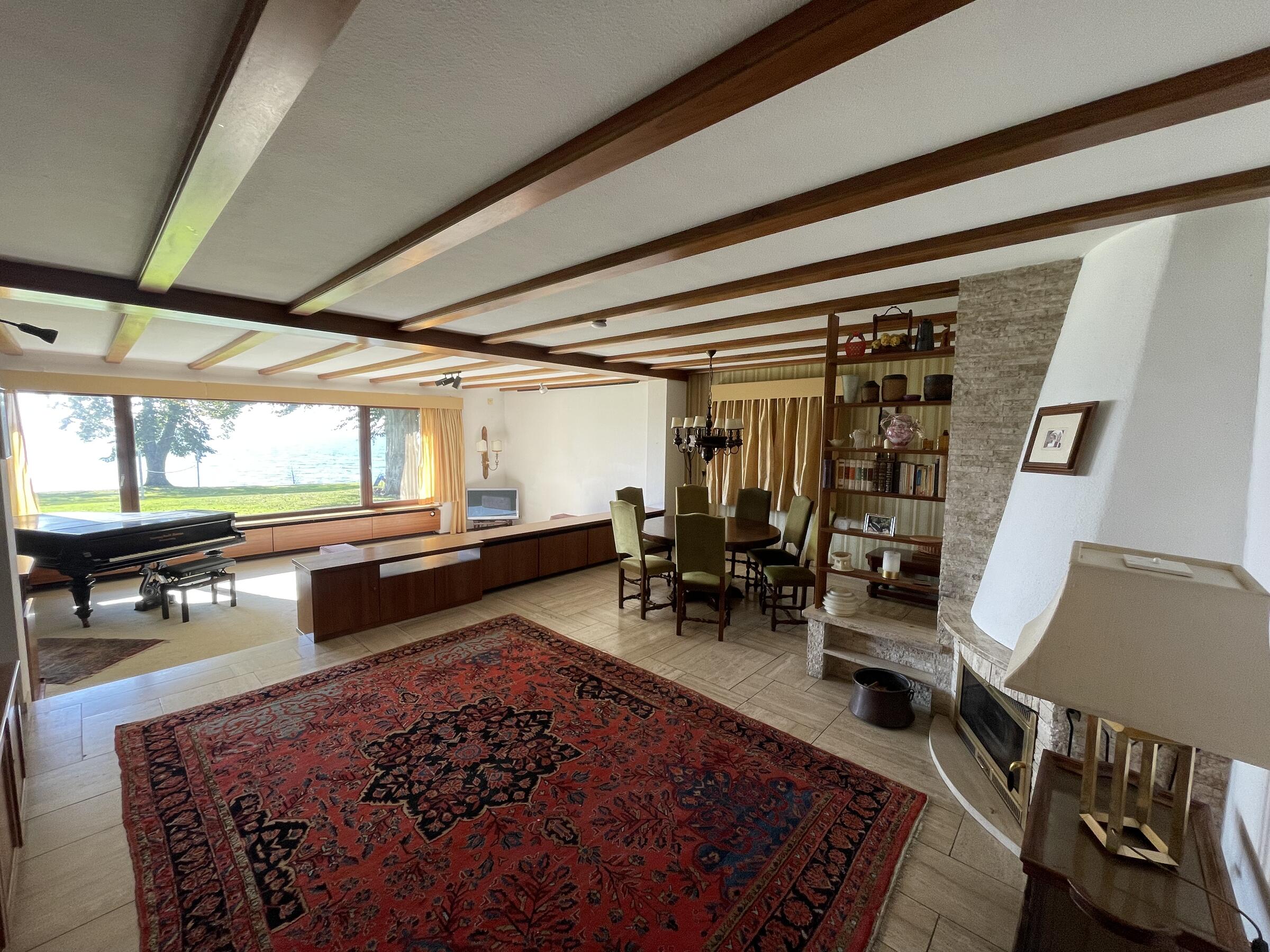 This 440 square meter Villa, located directly on Lake Constance, is composed of two separate units divided into 5 floors. It is set on a 2000 square meter lush lawn ending with a 30 meter long private beach. The villa was built in 1969 and has been in our family since 1975 when it was modified and expanded toward the lake. I occupy the upper apartment with my family, which was completely renovated in 2013, together with the roof and the façade of the villa. The ground floor, on the other hand, is still original and vacant.