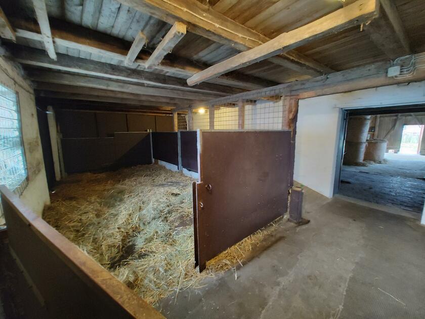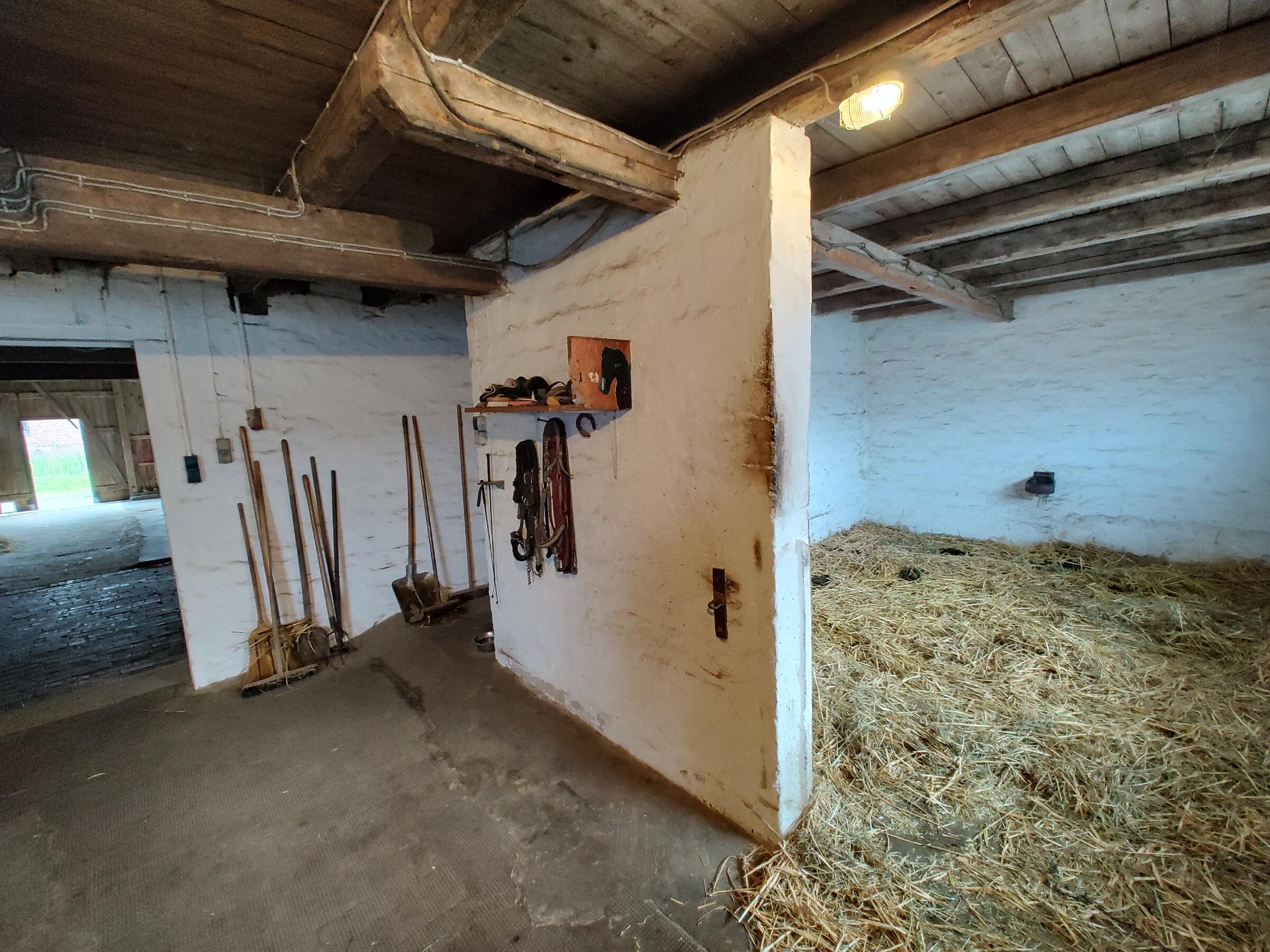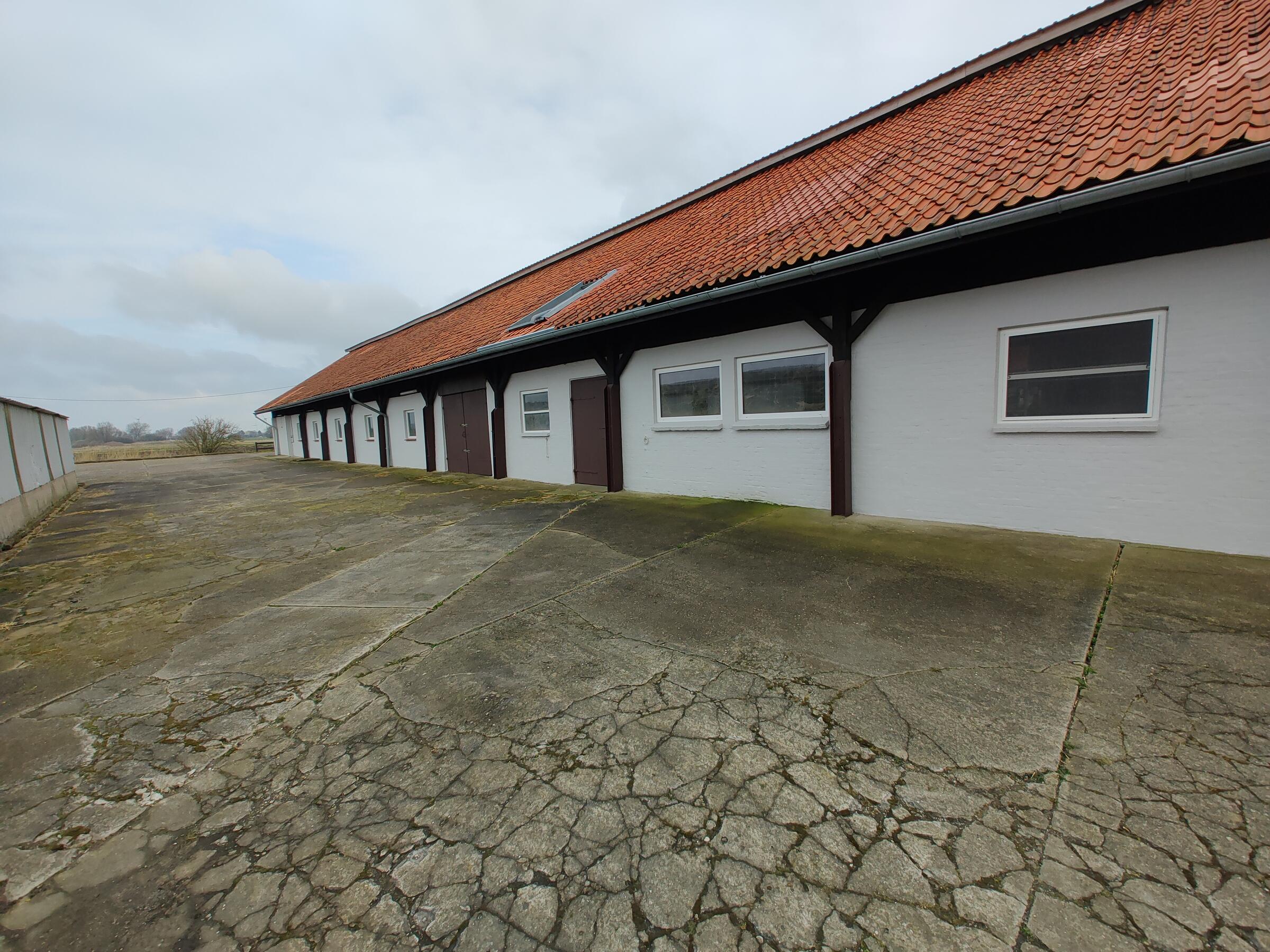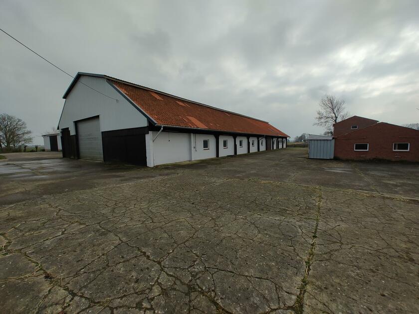 Ebenfalls befinden sich 3 Hallen auf dem Hof. Die erste ist ein nicht mehr benutzter alter Schweinestall. Die Scheune mit zwei Pferdeboxen und Strohballenlager wurde 1945 aus den Trümmern wieder aufgebaut. Diese Scheune hat unter anderem ein großes altes Holztor. Das Dach ist mit Dachziegeln bestückt. In der anderen Hälfte dieser Scheune werden landwirtschaftliche Geräte und Fahrzeuge gelagert. In der dritten Halle, die außen mit Blech verkleidet ist, befindet sich ein Reitplatz sowie eine kleine Werkstatt. Der Hof ist 4 km von der Nordseeküste entfernt.
