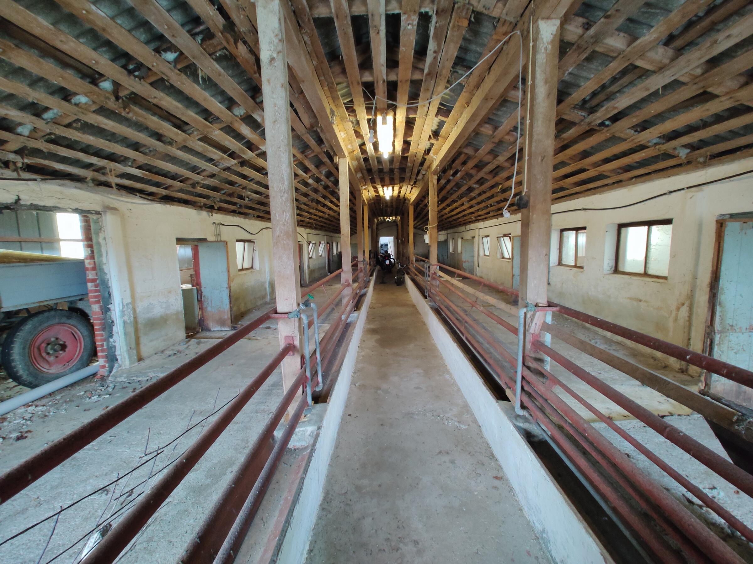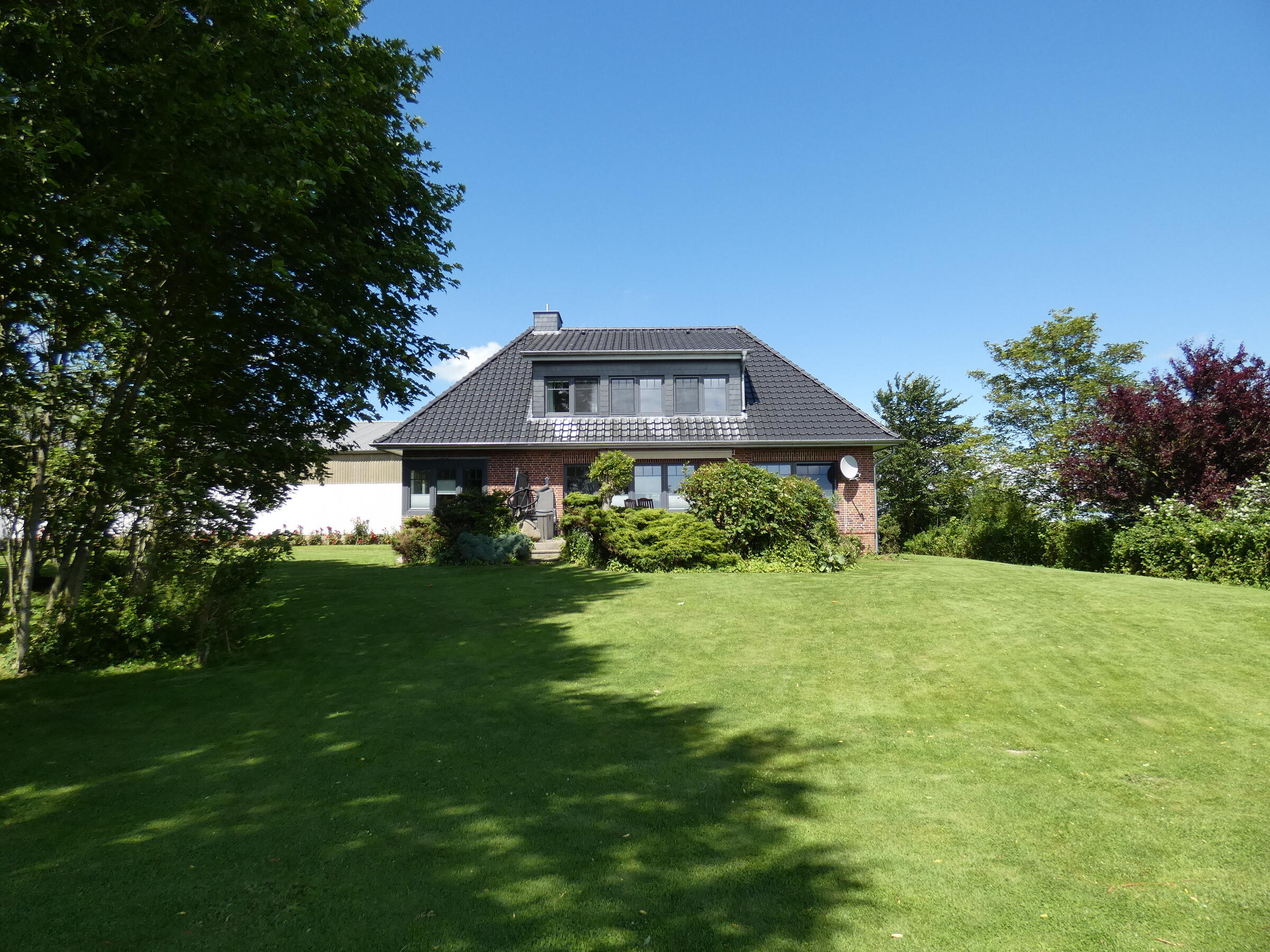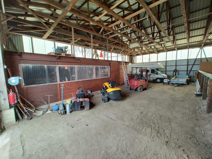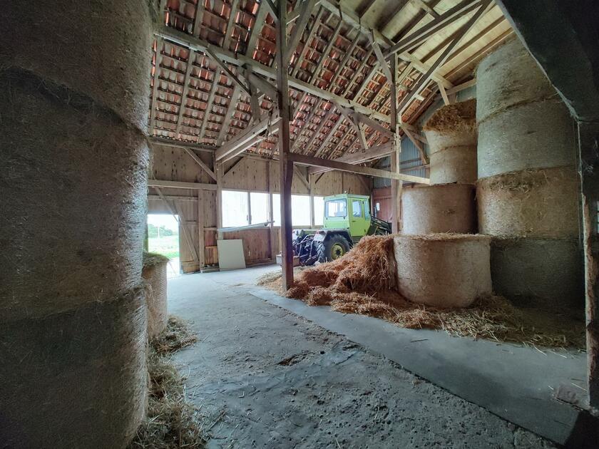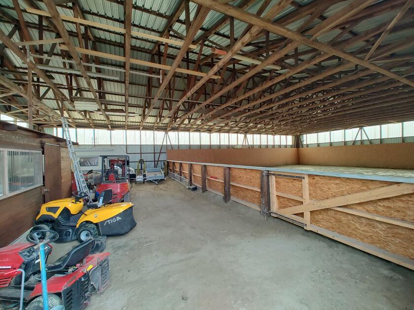 Ebenfalls befinden sich 3 Hallen auf dem Hof. Die erste ist ein nicht mehr benutzter alter Schweinestall. Die Scheune mit zwei Pferdeboxen und Strohballenlager wurde 1945 aus den Trümmern wieder aufgebaut. Diese Scheune hat unter anderem ein großes altes Holztor. Das Dach ist mit Dachziegeln bestückt. In der anderen Hälfte dieser Scheune werden landwirtschaftliche Geräte und Fahrzeuge gelagert. In der dritten Halle, die außen mit Blech verkleidet ist, befindet sich ein Reitplatz sowie eine kleine Werkstatt. Der Hof ist 4 km von der Nordseeküste entfernt.