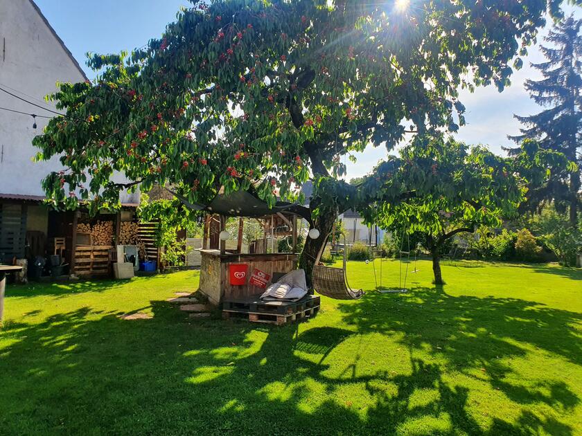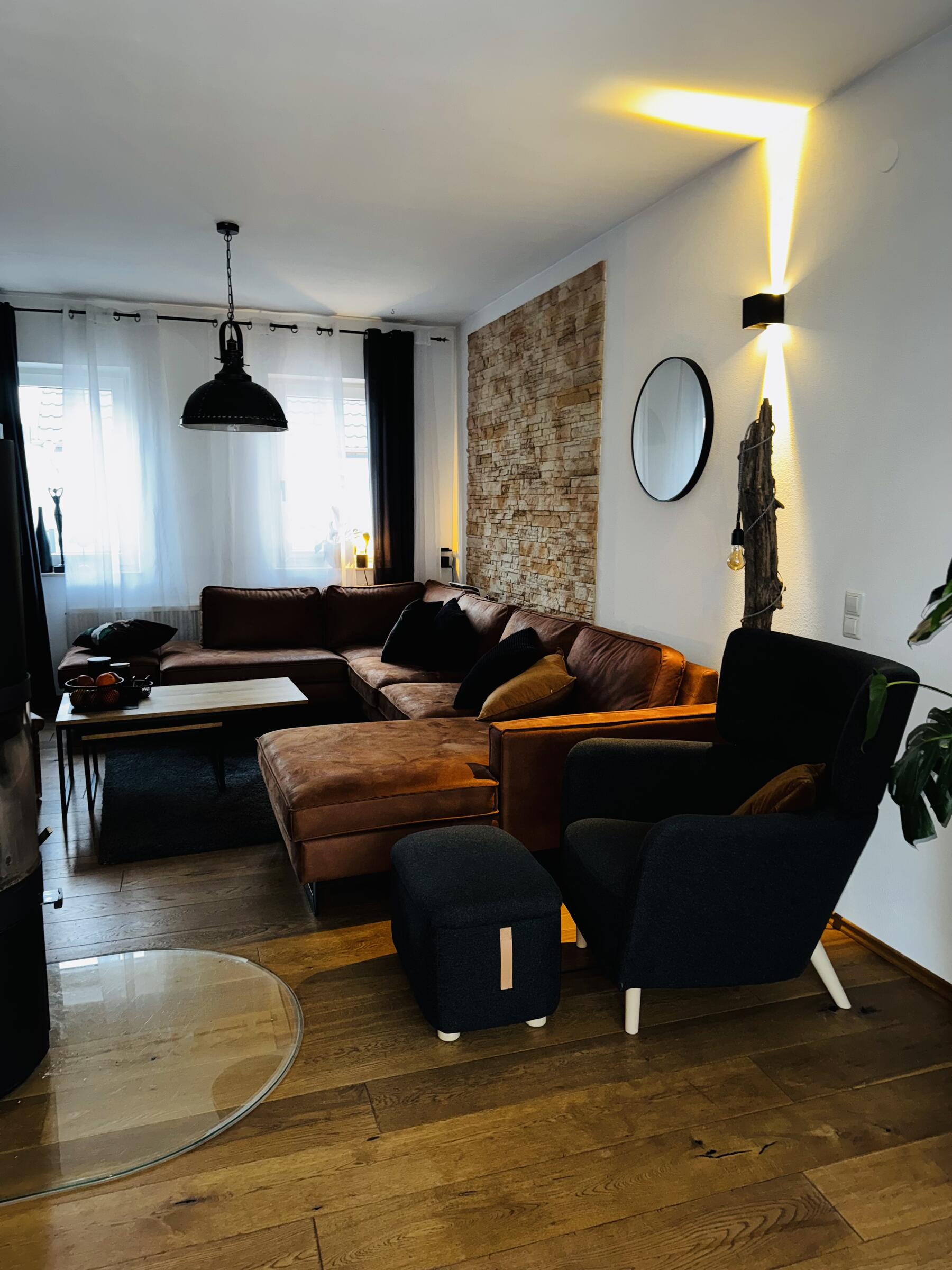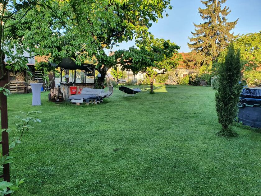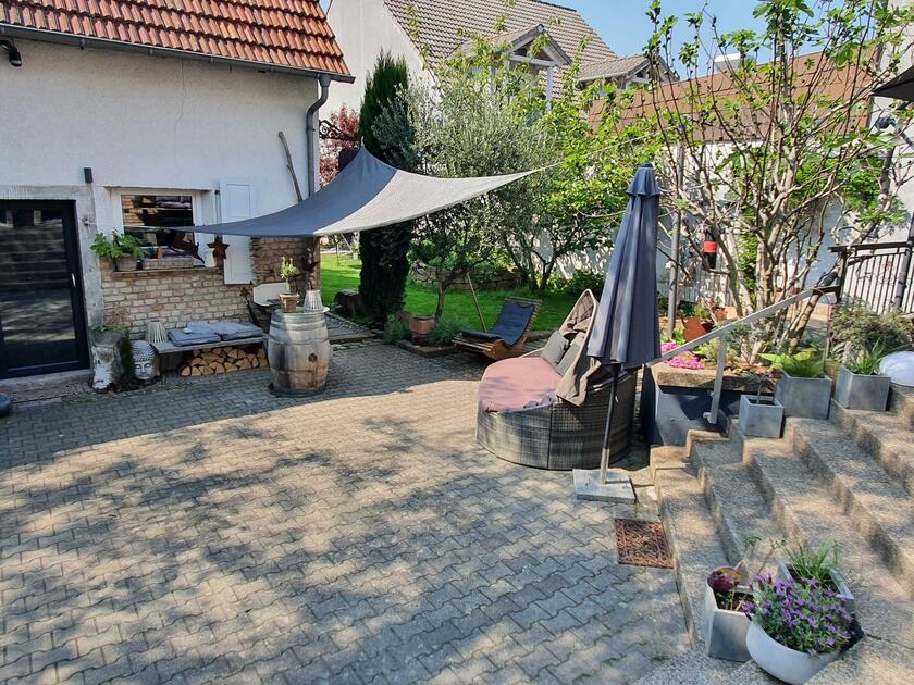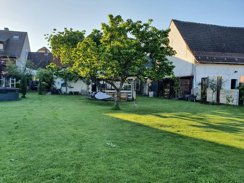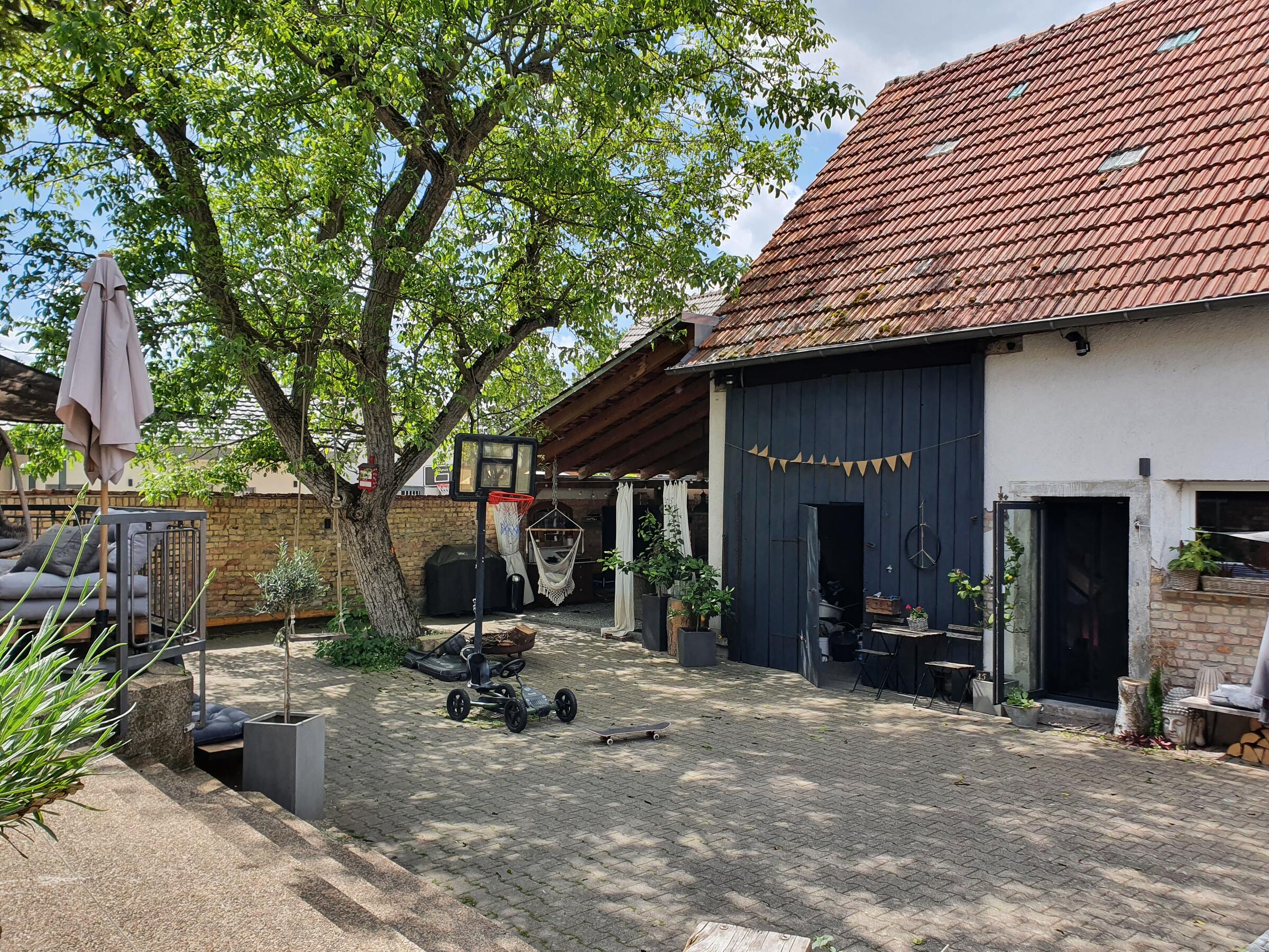 Unser Haus wurde im Jahr 1891 erbaut und befindet sich in der Ortsmitte. Das Grundstück, mit Haus, Hof, Scheune und Garten, hat eine Fläche von 1400 m² und bietet viel Natur und Baumbestand. Im EG befindet sich der Flur mit Treppenhaus, Küche, Esszimmer, Abstellraum, Kellerabgang, Gäste WC, Elternbad, Waschraum, Elternschlafzimmer und das Wohnzimmer auf insgesamt 220 m² Wohnfläche. Im OG befindet sich ein kleiner Gang, Zimmer und ein Bad auf 220 m² Wohnfläche mit Dachschräge. Eine große Terrasse erstreckt sich über die komplette Hausbreite von 17 m Länge. Stufen führen zum großen Innenhof mit der Scheune, einem alten Walnussbaum und einer tollen Überdachung (Outdoor-Wohnzimmer/Partylounge) die ein echter Hingucker ist. Hinter der Scheune folgt dann ein großer Naturgarten mit ca. 700 m² Fläche mit einer Feuerstelle, Hühnerstall, Spielplatz, Holzunterstand, Pizzabackofen, WC und Aufstellpool.