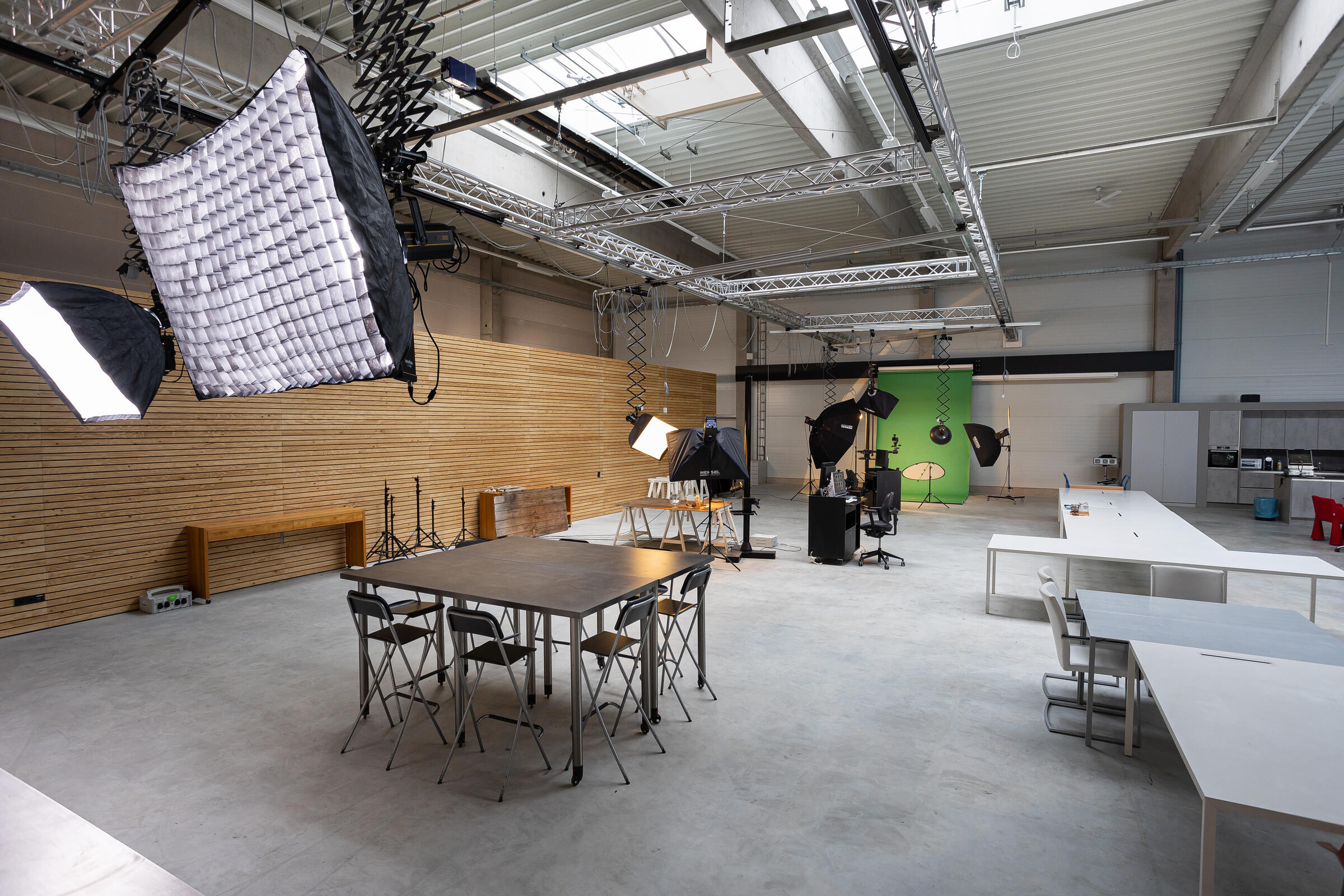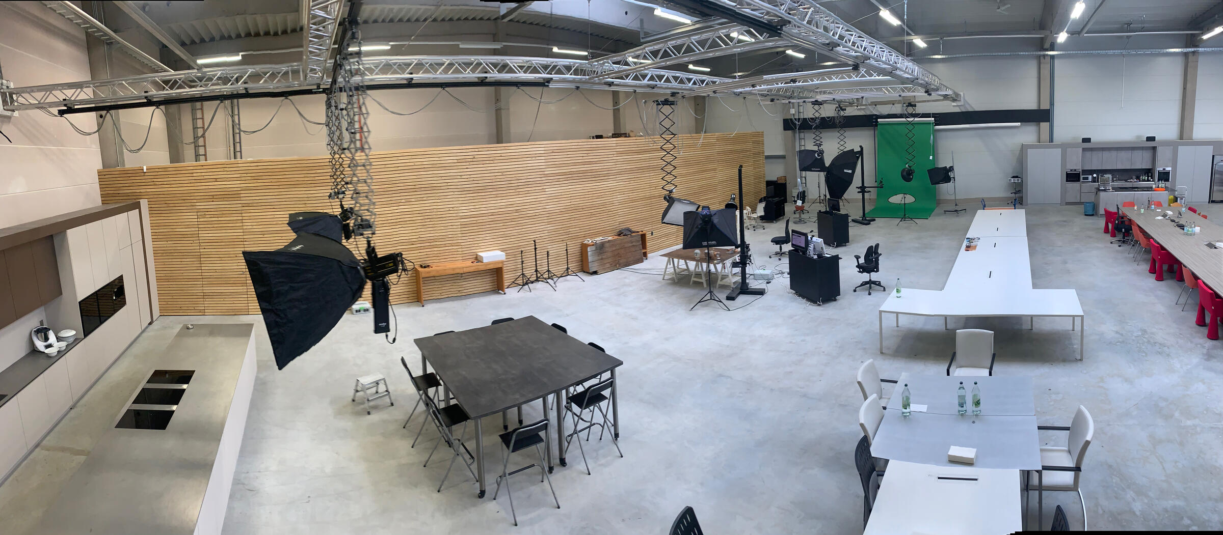 Unser großes Studio befindet sich in einem Gewerbegebiet. Zur umfangreichen Ausstattung unseres Studio gehören beispielsweise ein Deckenschienensystem, Licht, Aufheller, verschiedene Stative, professionelle Belichtung und Blitzanlagen. Ebenfalls bieten wir eine vollausgestattete und offene Küchenzeile für Food-Fotografie und andere Produktionen im Küchenbereich. Die Küche ist mit einer freistehenden Kücheninsel (4,80 m x 1,20 m) inklusive einem 3-Fach Induktionsfeld, einer Spülmaschine, 3 Kühlschränken, einem Gefrierschrank, 2 Bora X BO Dampfbacköfen und einem Kaffeevollautomat ausgestattet. Im Außenbereich unseres Studios sind ausreichend Parkplätze zu finden. Für das direkte Be- und Entladen von Material und Equipment kann eine LKW-Laderampe genutzt werden.