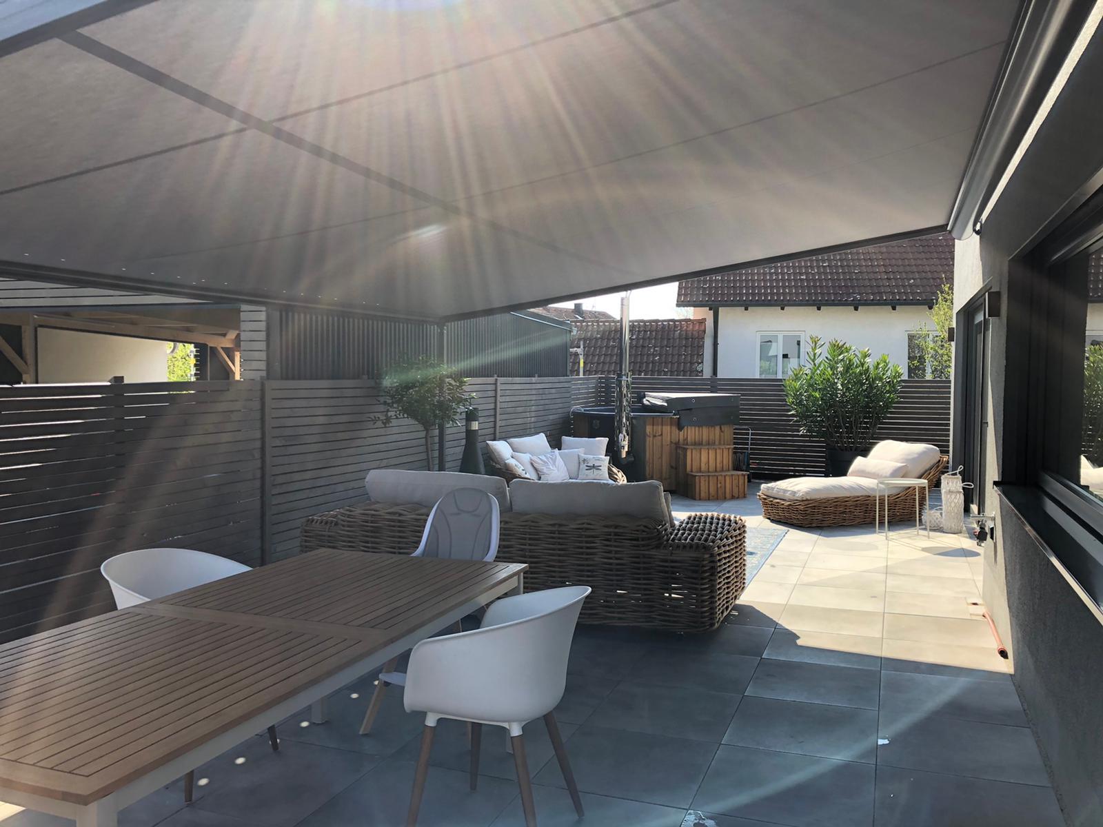 Das moderne Einfamilienhaus im Landkreis Dachau wird als Location für Film- und Fotoproduktionen angeboten. Ein besonders schönes Motiv des Einfamilienhauses ohne Keller, ist die Terrasse mit 70 m². Sie ist mit hochwertigen Holz-Rattan-Möbeln und einem Hot-Pot ausgestattet. Zudem befindet sich eine Küche auf der Terrasse. Der großzügige und offene Wohnbereich im Erdgeschoss bietet direkten Zugang zur Terrasse. Im 1. OG sind in zwei Zimmern die Decken offen gelassen, so dass eine zweite Ebene zum Schlafen eingezogen werden konnte. Unter der schwarzen Stahl-Treppe befindet sich ein Einbauschrank. Das Masterbad im 1. OG verfügt über eine freistehende Badewanne. In den beiden Kinderzimmern ist Platz für die Maske und Teambesprechungen.