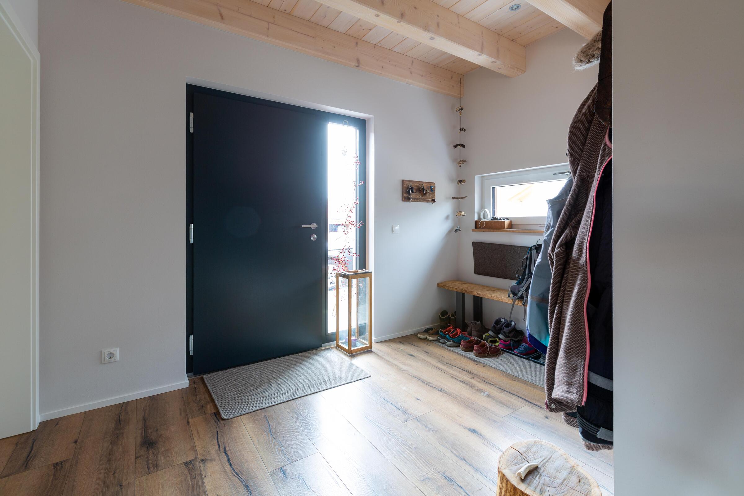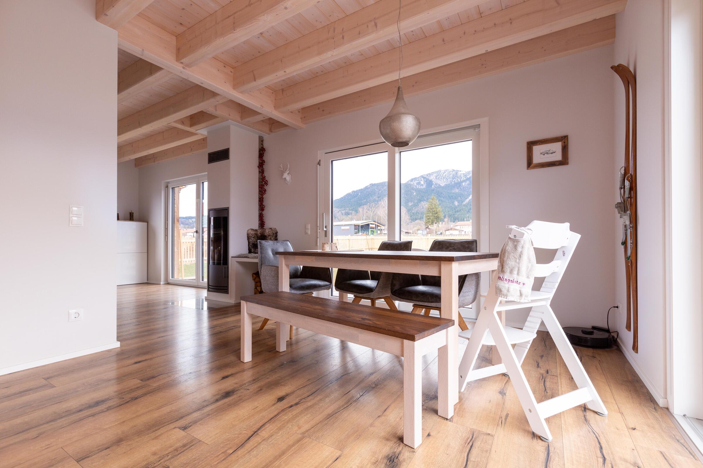 Die Räume unseres modernen Einfamilienhauses sind aufgrund der großen Fensterflächen sehr hell und lichtdurchflutet. Die Fußböden der Räume sind mit robustem Laminat oder Vinylboden verlegt. Im Wohnbereich gibt es einen Schwedenofen mit einem integrierten Sitzbereich. Als Teamaufenthalt, Maske und Garderobe bieten sich beispielsweise ein ausbebauter und beheizter Raum im Keller und ein Badezimmer im Erdgeschoss unseres Hauses an. Im Außenbereich bietet unser Haus eine teilweise glasüberdachte Terrasse mit einem Badefass, einen Garten und ein Doppel-Carport. Parkplätze sind auf unserem Grundstück vorhanden.