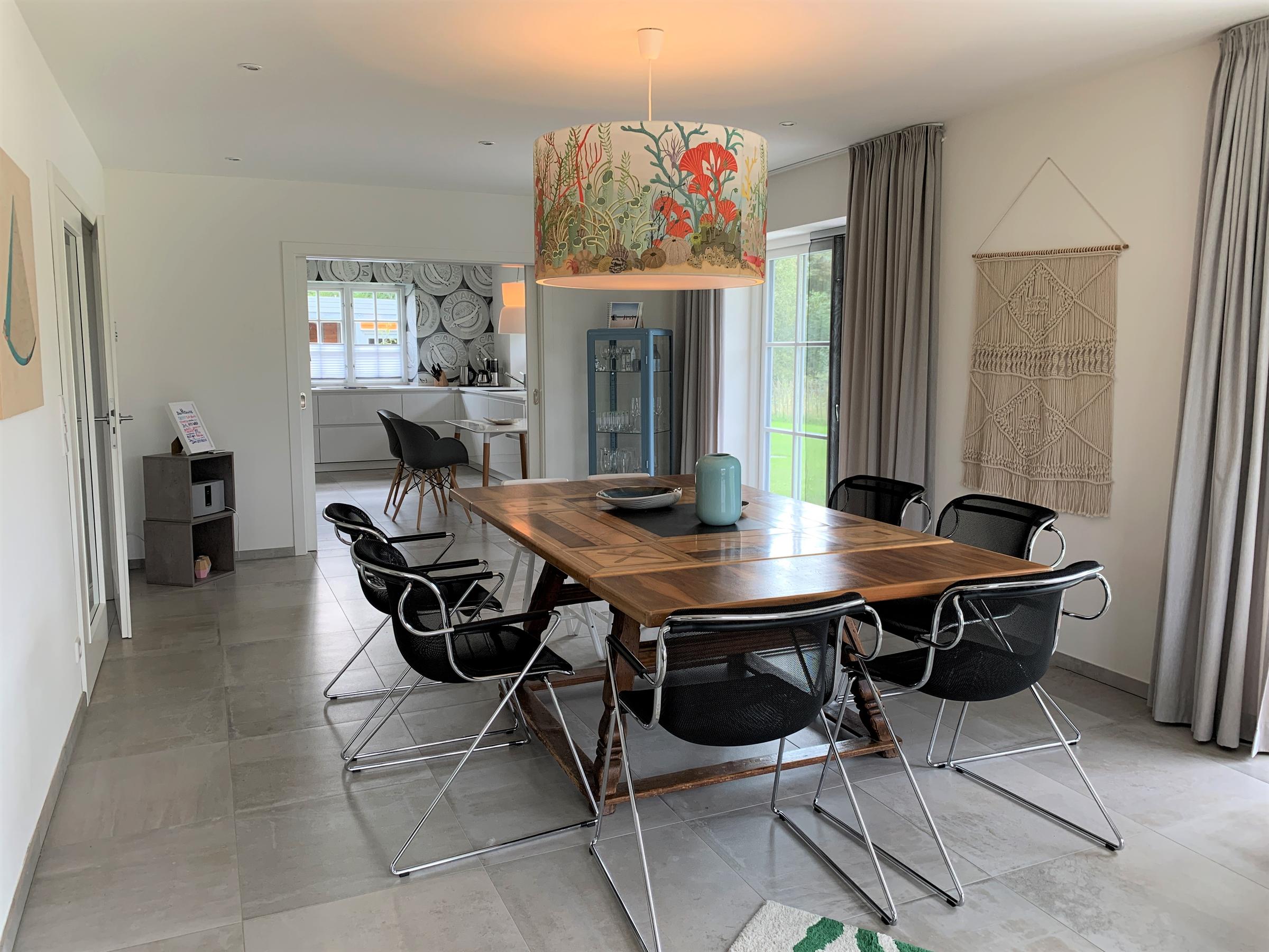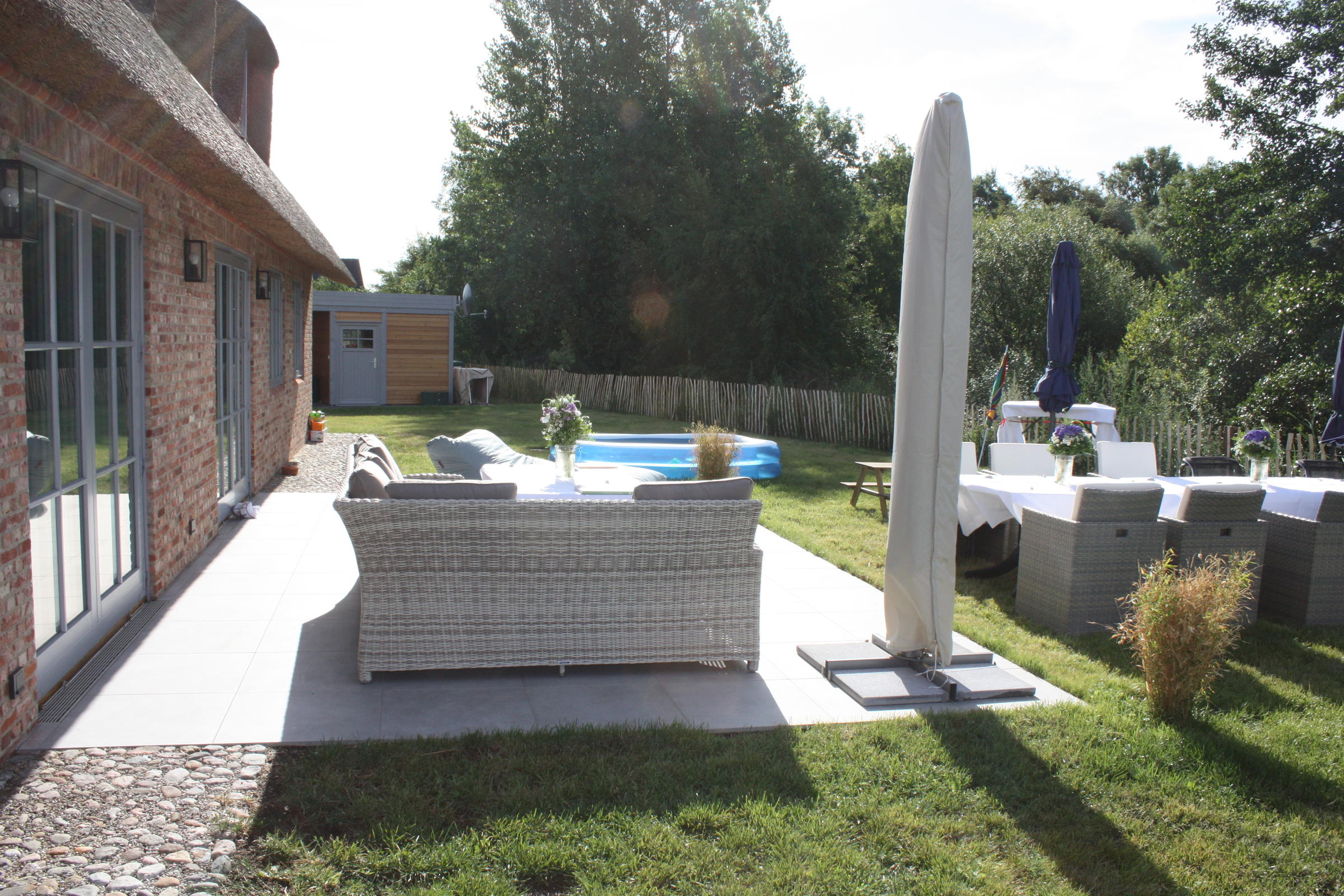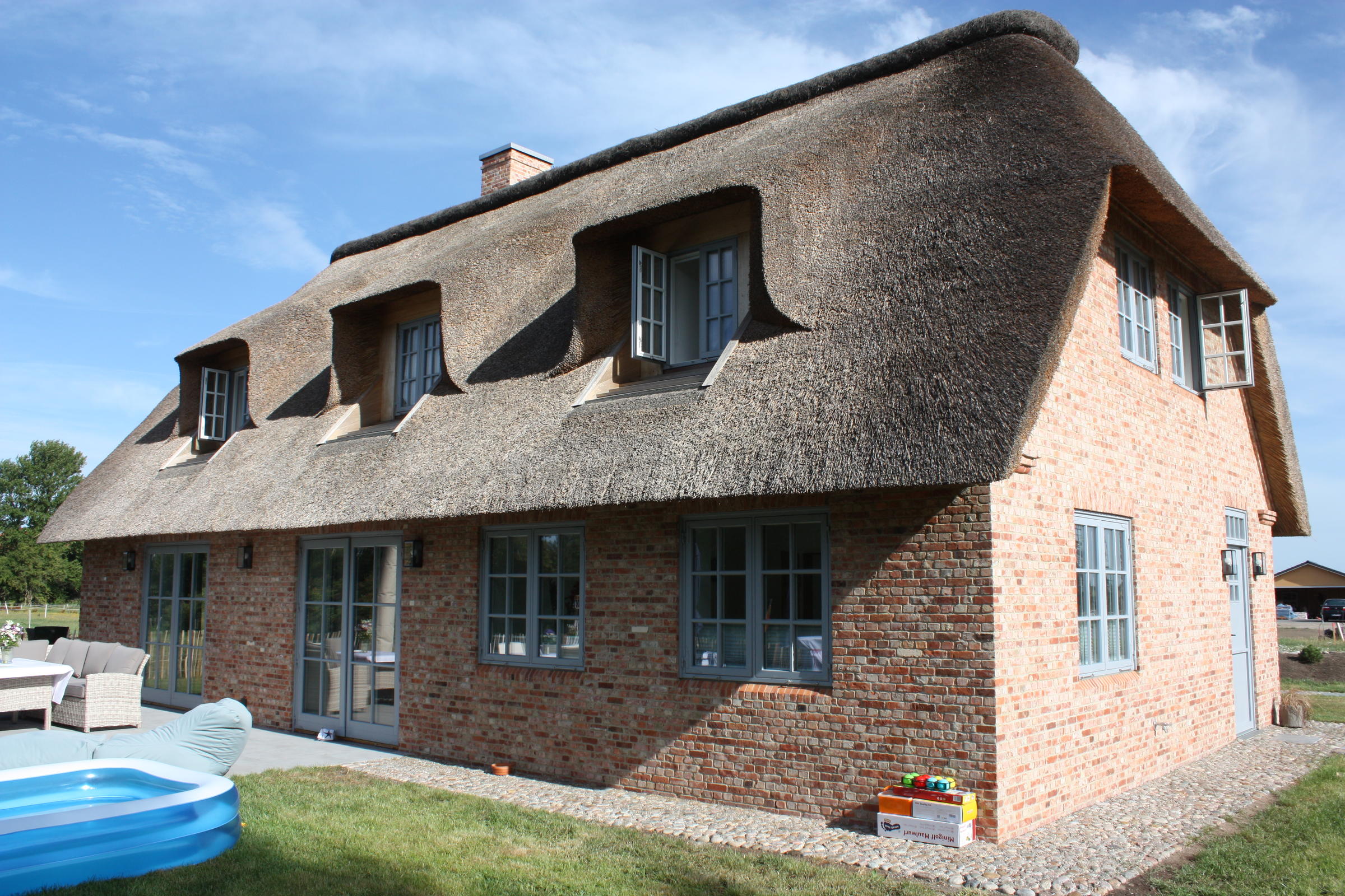 Wir vermieten unser neues und wunderschönes Reetdachhaus vor den Toren von Sankt Peter-Ording für Film- und Fotoaufnahmen. Unser Haus misst insgesamt 140 m² und wurde mit alten, historischen Steinen (ca. 100 Jahre alt) und individuellen Holzfenstern vom Tischler erbaut. Von außen ist unser Haus durch diesen Stil sehr klassisch. Innen jedoch sehr modern und durch drei große und bodentiefe Terrassenfenster sehr hell. Im Obergeschoss haben das Elternschlafzimmer und die Kinderzimmer offene Decken mit Sichtbalken. Das 1000 m² große Grundstück ist nach Süden ausgerichtet und hat einen freien Blick in die Natur der Halbinsel Eiderstedt. Der Deich und die Badestelle von Vollewiek sind in 3 Minuten zu erreichen. Zum Seebad Sankt Peter-Ording sind es 15 Minuten mit dem PKW, der nächste Flughafen Hamburg liegt in 138 km Entfernung über die A23.