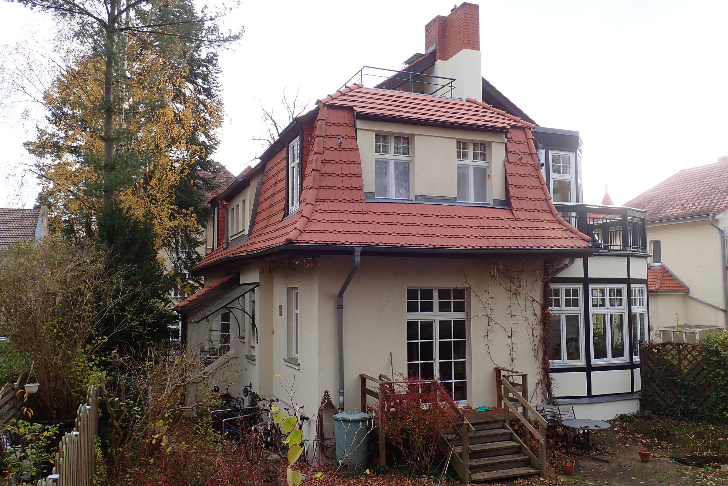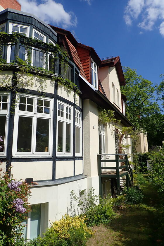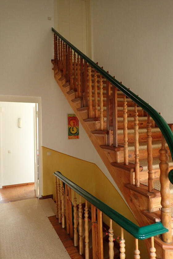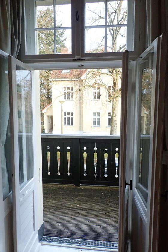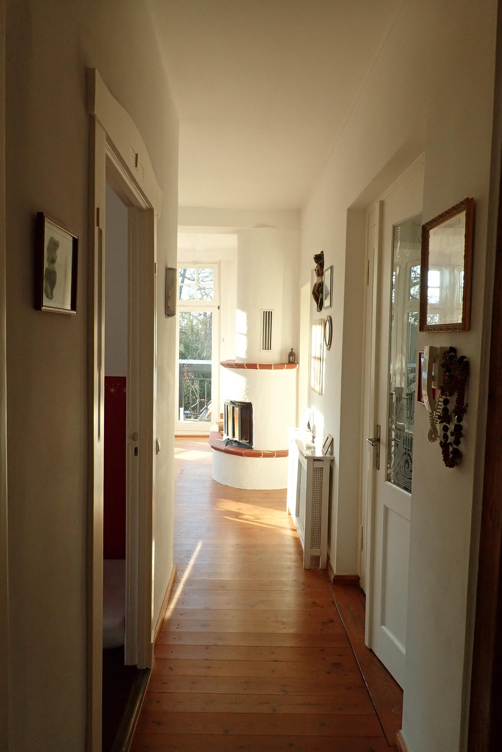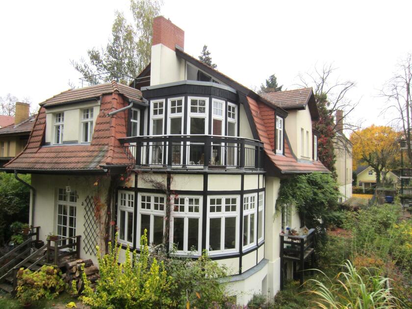 Die Maisonette-Wohnung befindet sich in einer im Jahre 1912 erbauten Villa in Babelsberg-Nord. Historische Stilelemente umfassen die Holzwangentreppe mit gedrechselten Traillen und Schnitzereien, original Doppelkastenfenster und -türen mit alten Beschlägen, geätztes Glas, Kassettentüren mit Art Deco Gestaltung und schönen Messingbeschlägen, die Pitchpine Landhausdielen und einige dekorative Stuckrosetten.