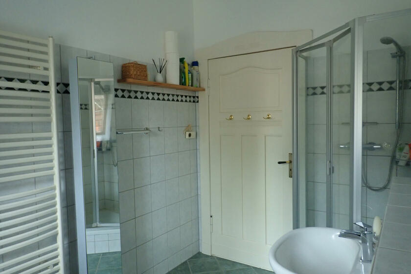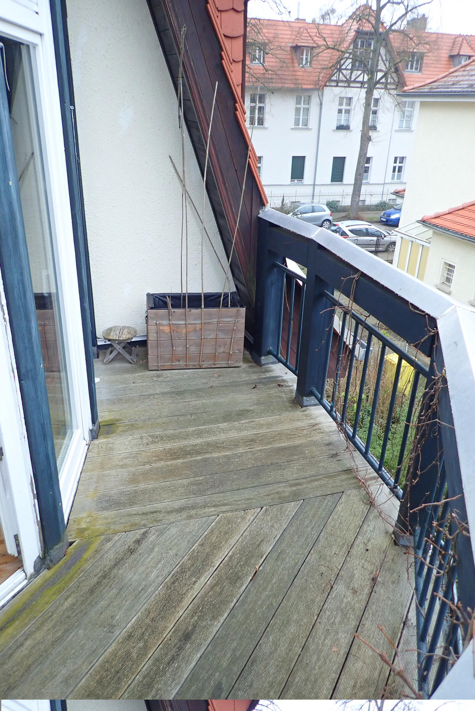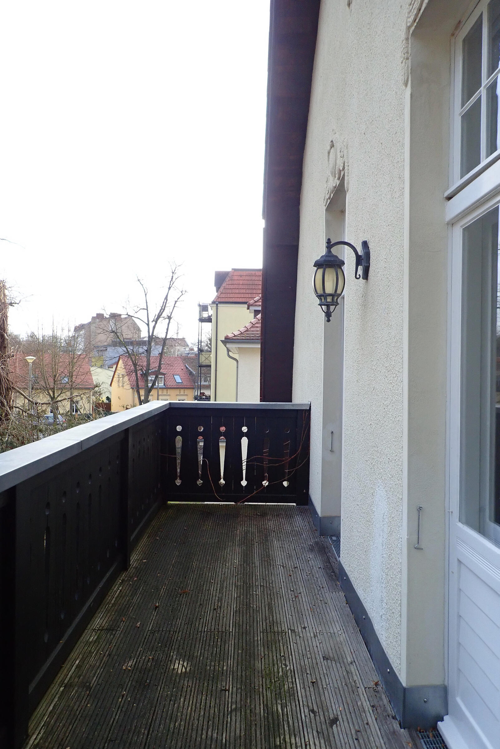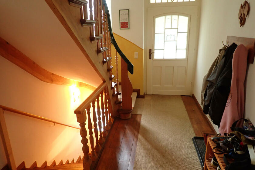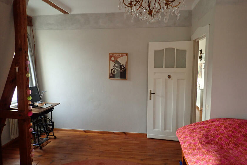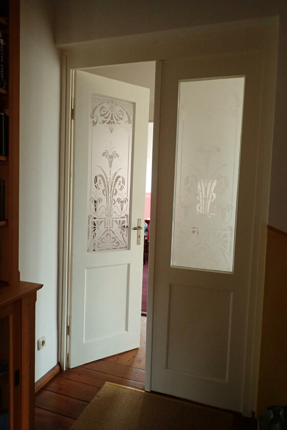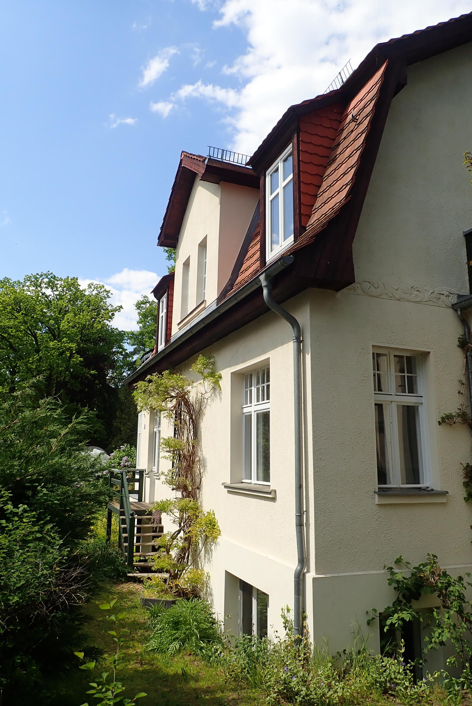 Die Maisonette-Wohnung befindet sich in einer im Jahre 1912 erbauten Villa in Babelsberg-Nord. Historische Stilelemente umfassen die Holzwangentreppe mit gedrechselten Traillen und Schnitzereien, original Doppelkastenfenster und -türen mit alten Beschlägen, geätztes Glas, Kassettentüren mit Art Deco Gestaltung und schönen Messingbeschlägen, die Pitchpine Landhausdielen und einige dekorative Stuckrosetten.