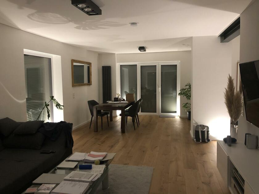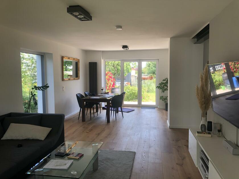 Das große und moderne Doppelhaus mit Luxusausstattung befindet sich in einer sehr ruhigen Wohnlange in Pulheim, ist aber dennoch Zentral gelegen. Der Vorgarten ist modern und aufgrund der großen Magnolie ein Hingucker. Der hintere Garten bietet viel Natur sowie eine Sitzlounge und ist mit einer Fläche von ca. 400 m² sehr großzügig. Im Keller befindet sich ein Kraft- und Fitness/Boxraum. In den Räumen des Hauses wurden die Böden großzügig mit Parkett bestückt und es wurde mit viel Holz gearbeitet. Die bodentiefen Fenster und die moderne Küche runden den Gesamteindruck des Hauses ab. Vor dem Haus, im Wendehammer, gibt es viele Parkmöglichkeiten.