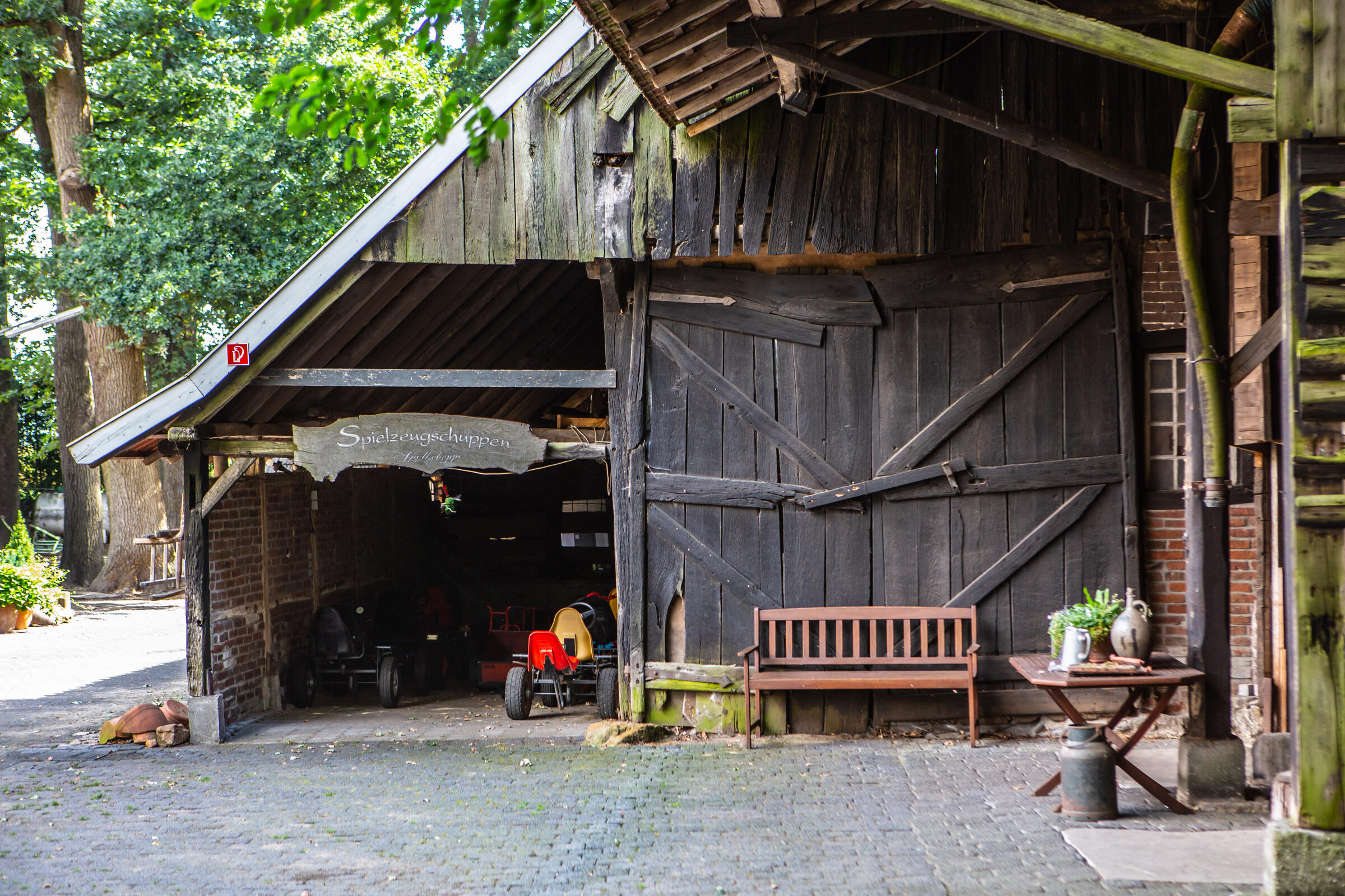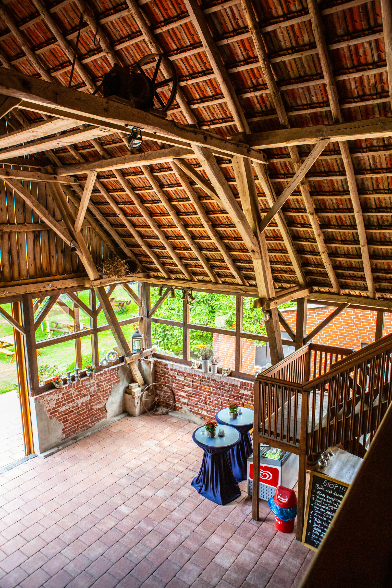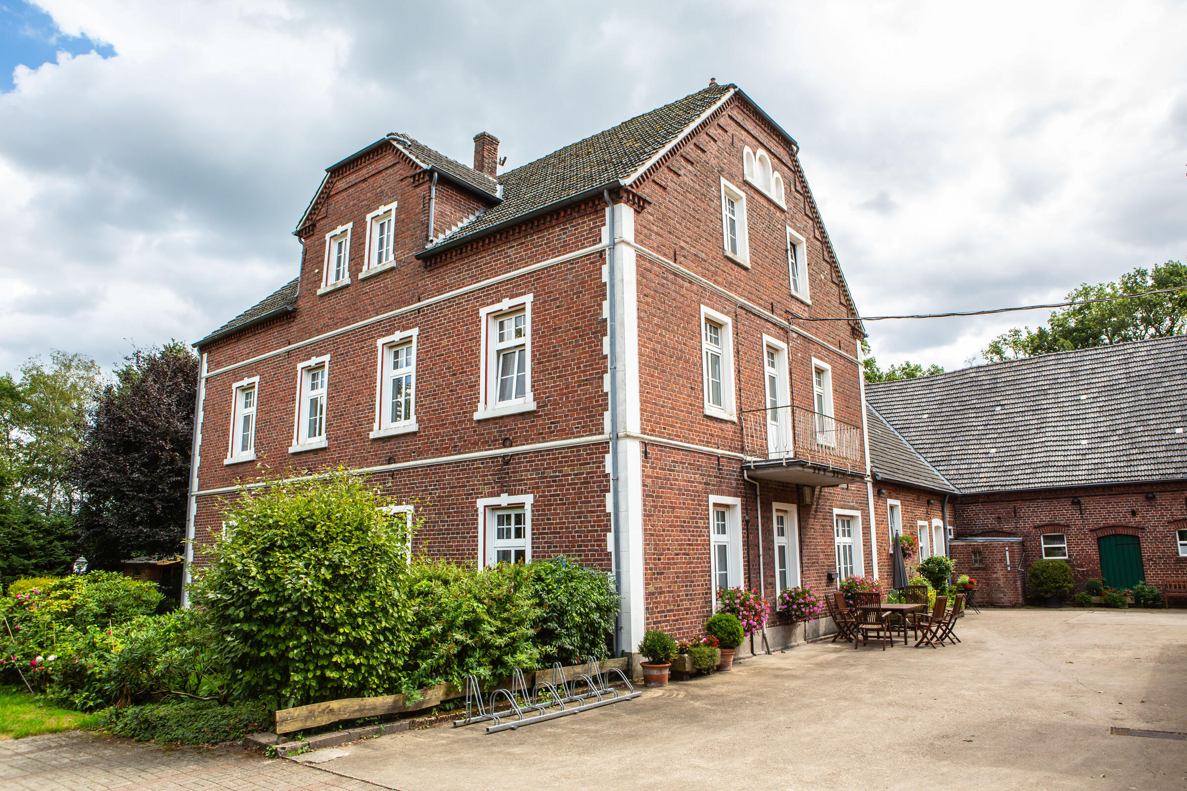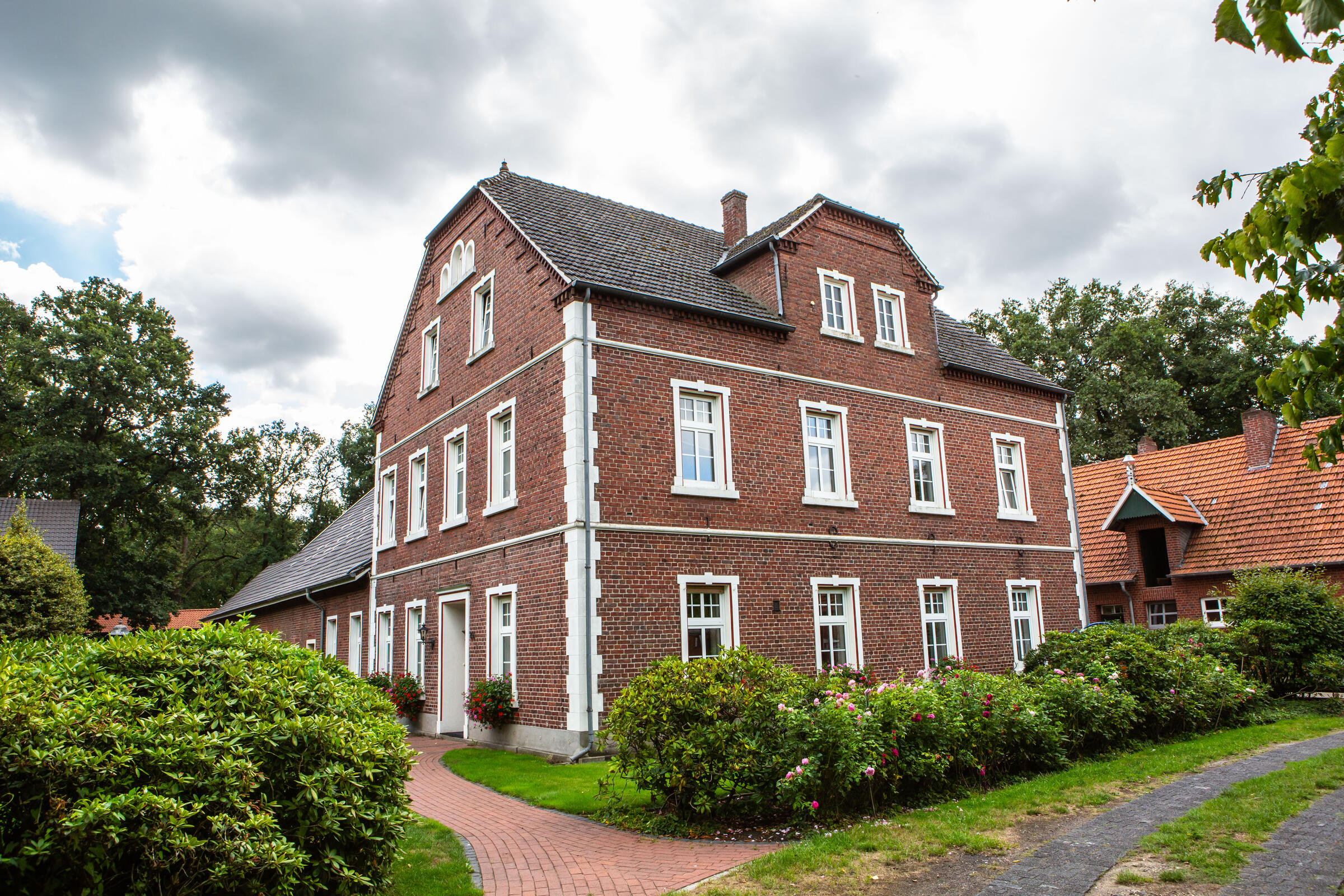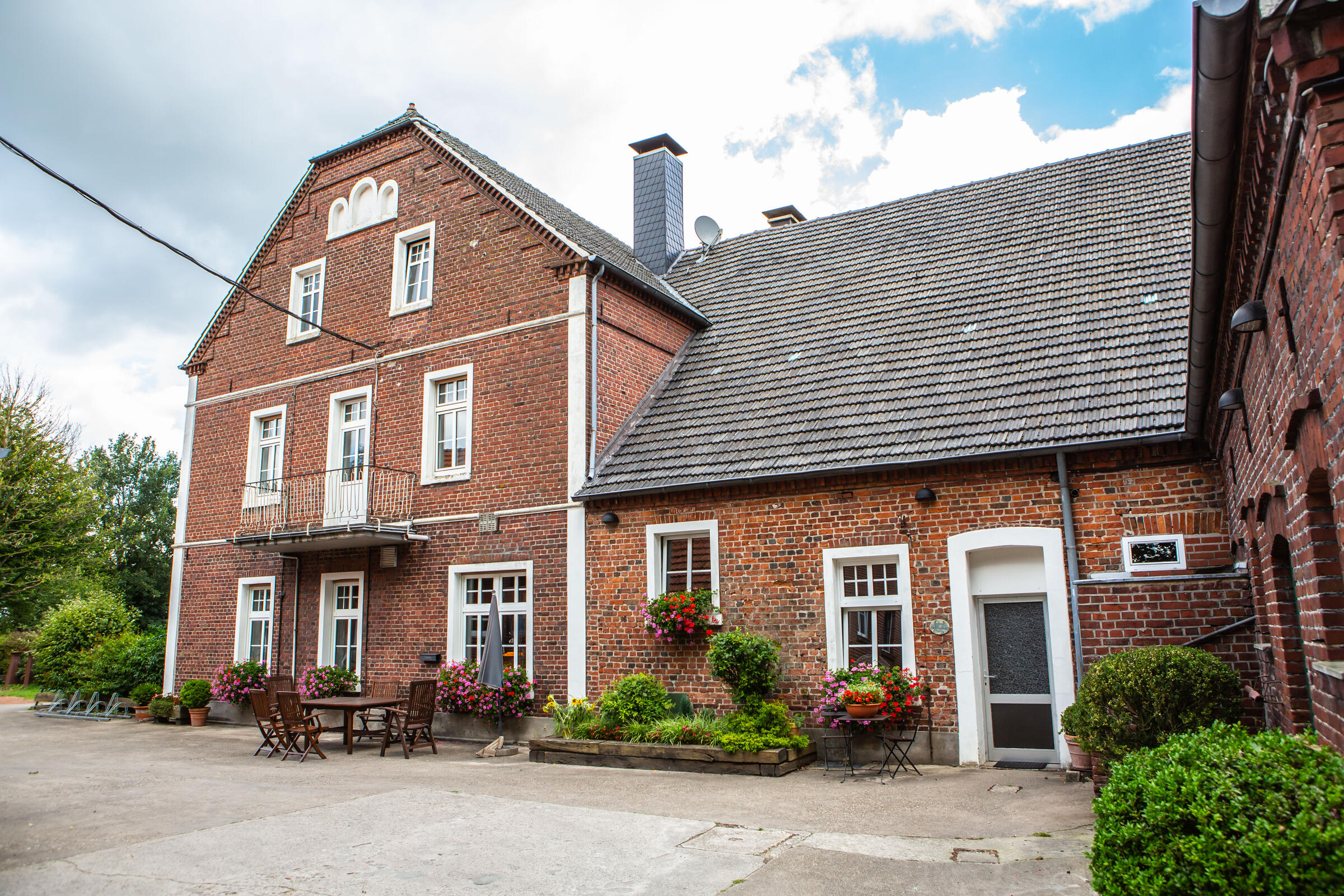 Unser Hof, mit seinem alten Eichenbestand, liegt in ruhiger Ortsrandlage im südlichen Münsterland. Der großzügig gestaltete Hof beeindruckt mit seinen alten Gebäuden und dem herrschaftlichen Wohnhaus. Angrenzend an das Wohnhaus befindet sich eine parkähnliche Gartenanlage, in dem Rhododendron, Rosen, Hortensien uvm. zu den Jahreszeiten verschieden blühend zu finden sind. Ein großer Raum im umgebauten Schweinestall bietet Platz für bis zu 100 Personen. Der angrenzende Biergarten besticht mit seiner Größe und seinem gepflegten grünem Rasen. Ein weiteres Highlight des Hofes sind die beiden Heuböden mit den "Heusuiten" und der beeindruckenden Balkenkonstruktion. Parkplätze sind in ausreichender Zahl auf dem Hof vorhanden. Toilettenanlagen sind vor Ort.