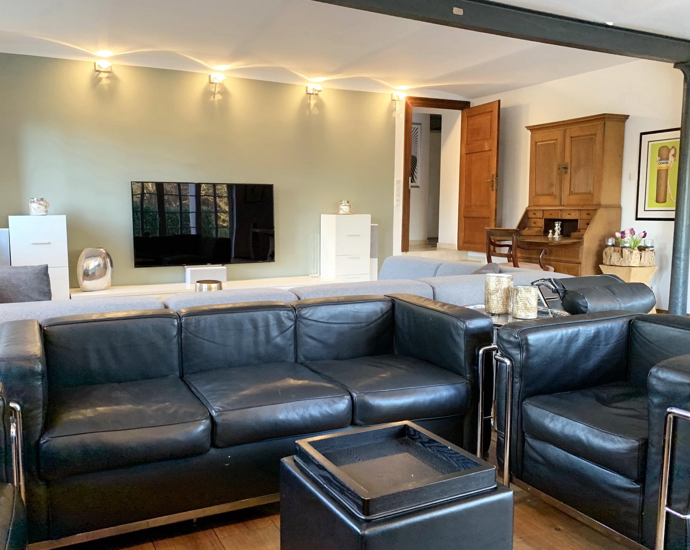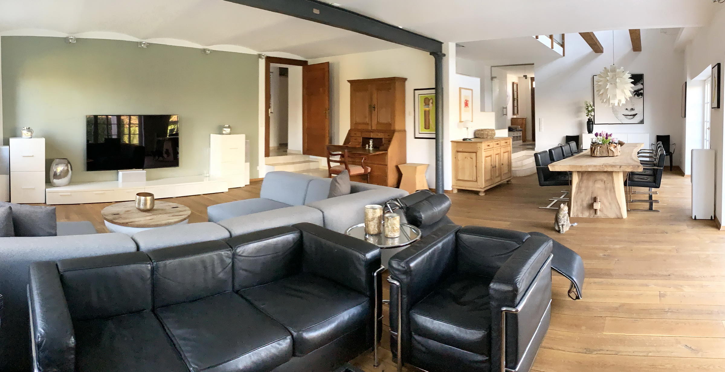 - Wohnzimmer (EG)Fläche: 80 m²Länge: 10 mBreite: 8 mHöhe: 3,5 mmöbliert: ja
