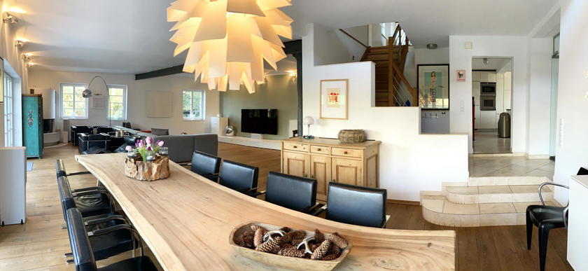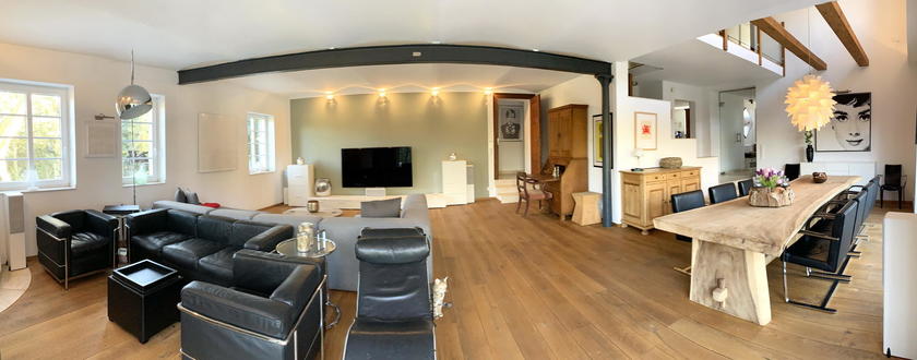 Unmittelbar an der Stadtgrenze von Düsseldorf und Ratingen liegt dieser ca. 1870 erbaute traditionelle Gutshof, der 2009 in Teilen aufwendig und luxuriös saniert wurde. Der ursprüngliche Charakter des Hauses wurde mit modernen Elementen des urbanen Lifestyles kombiniert. Die Böden der hellen und lichtdurchfluteten Räume bestehen aus massiven Eichendielen und Travertin. Für Film- und Fotoproduktionen stehen die modernisierten Teile des Wohnhauses im EG zur Verfügung. Die ca. 80 m² große Terrasse und der ca. 1.000 m² große Garten inkl. Gartenhäuschen sind nicht Bestandteil des Mietpreises und müssen separat angefragt und bezahlt werden.