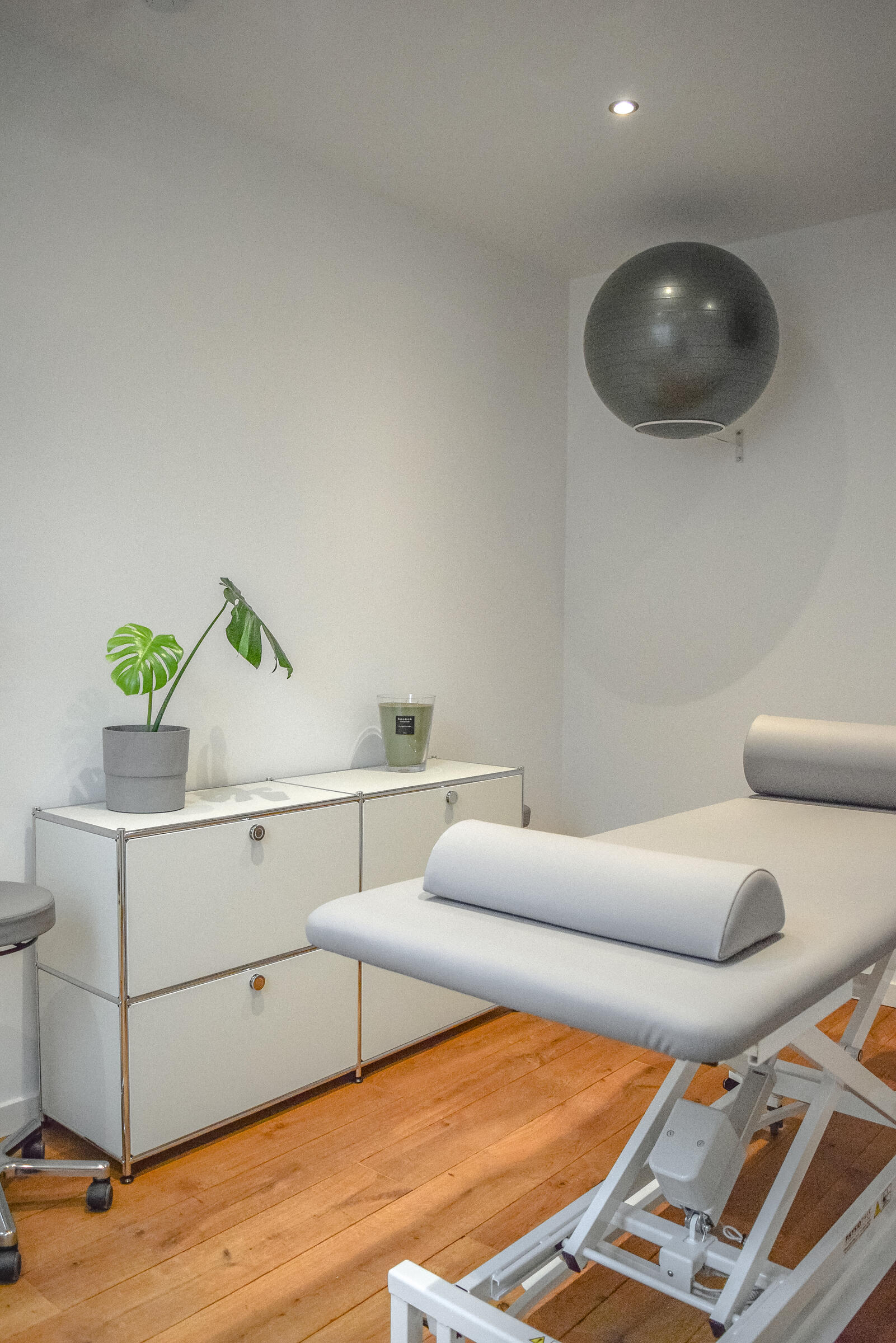Unsere helle und modern ausgestattete Physiotherapiepraxis bietet einen offen gestalteten Empfangs- und Wartebereich, zwei separierte Behandlungsräume, einen Trainingsbereich sowie ein kleines Badezimmer mit Duschkabine. Die Räume sind hell und lichtdurchflutet. Die Fenster sind in der unteren Hälfte mit blickdicht foliert und können jeweils mit weißen Jalousien abgedunkelt werden. Vor der Praxis bestehen mehrere Parkplätze. Der Rhein ist nur ca. 100 m entfernt. Aufgrund der verkehrsgünstigen Anbindungen über die nahegelegenen Autobahnen A61 und A3 sind beispielsweise Köln (35 km entfernt) und Bonn (10 km entfernt) schnell zu erreichen.