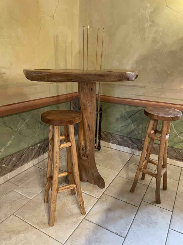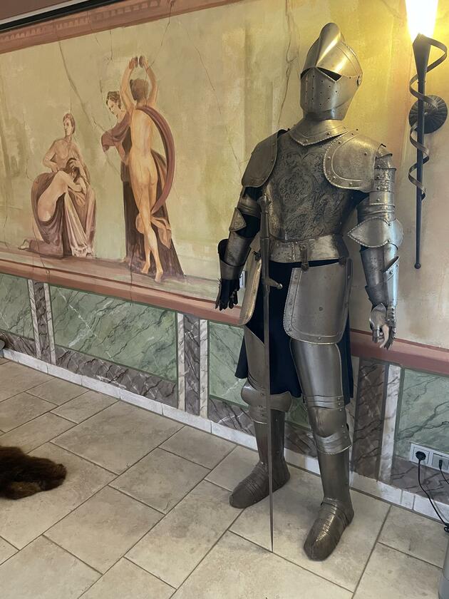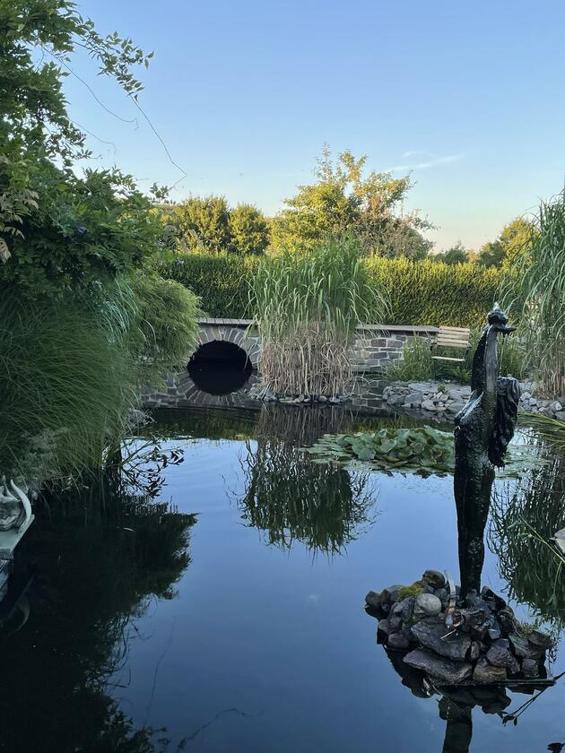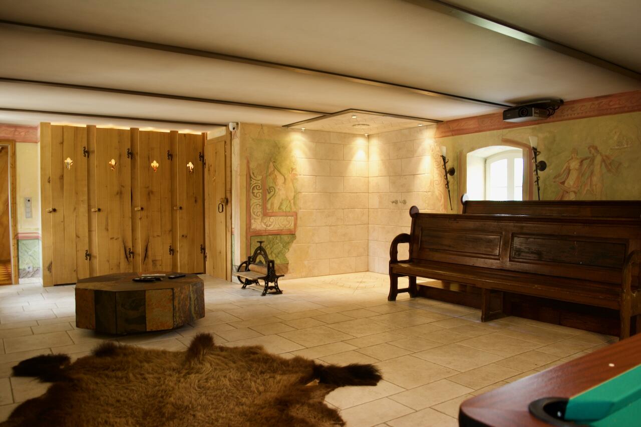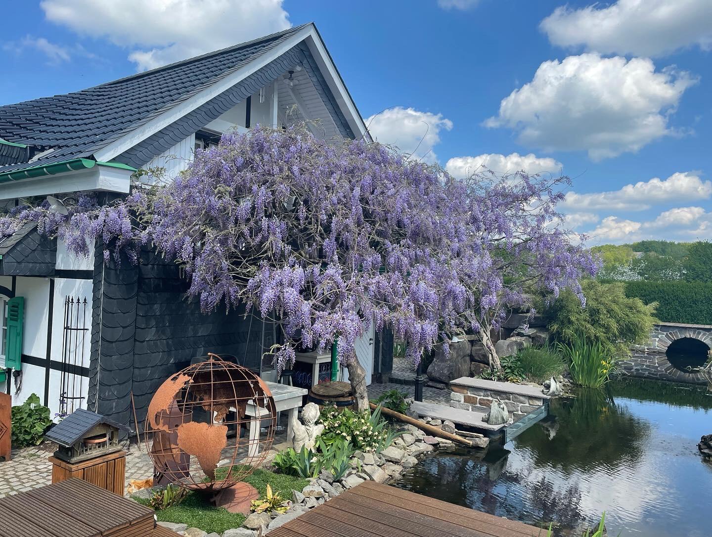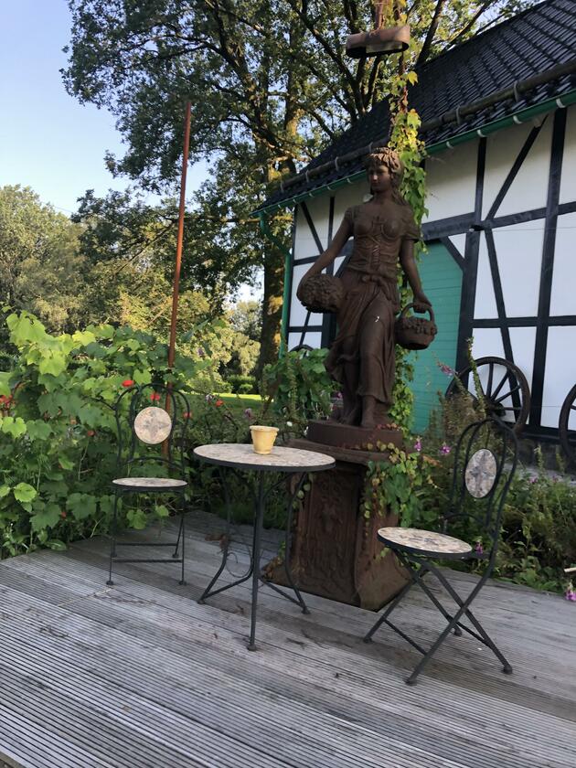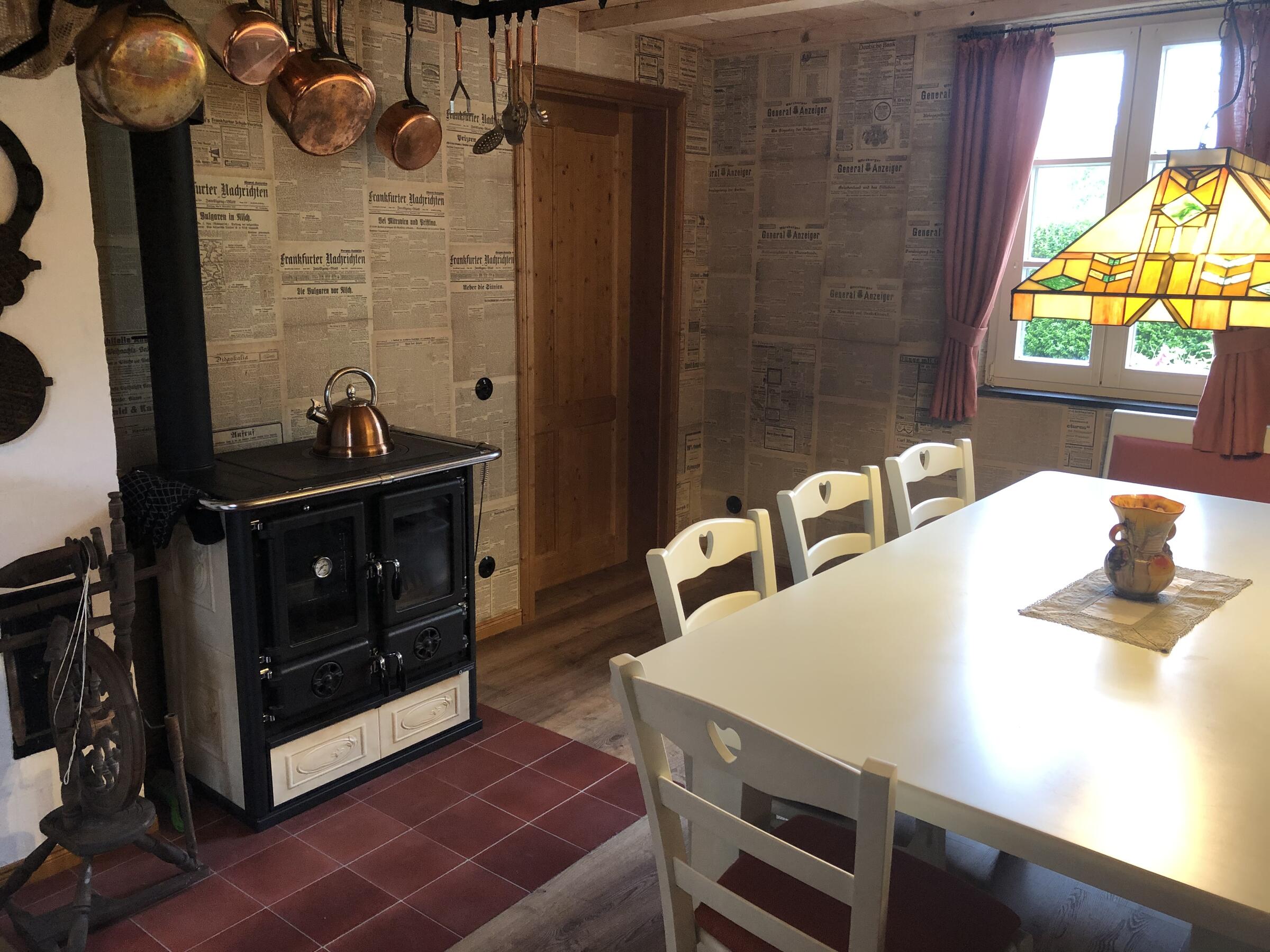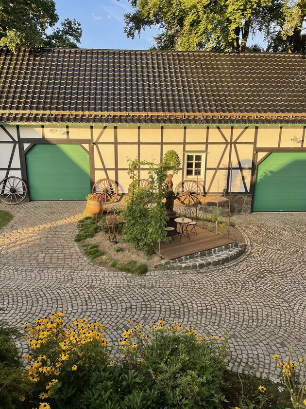 Die Wohnung befindet sich in einem Gehöft, am Rand eines Naturschutzgebietes. Die Wohnung ist im Stil der 1920er Jahre eingereichtet. Die Wände in der Küche und im Wohnzimmer sind mit alten Zeitschriften der 1920er Jahre tapeziert. Im Billardraum befindet sich neben dem Billardtisch eine Ritterrüstung, zwei Kirchenbänke die Wände sind bemalt mit Motiven von Pompeji. Der Kamin und der Holzkochofen sind funtionstüchtig. Das große Grundstück bietet u. a. einen Bauerngarten mit Teich und eine Holzterrasse. Der Außenbereich des Gehöfts ist mit Kopfsteinpflaster gepflastert. Hier gibts es ebenfalls ausreichend Parkplätze.