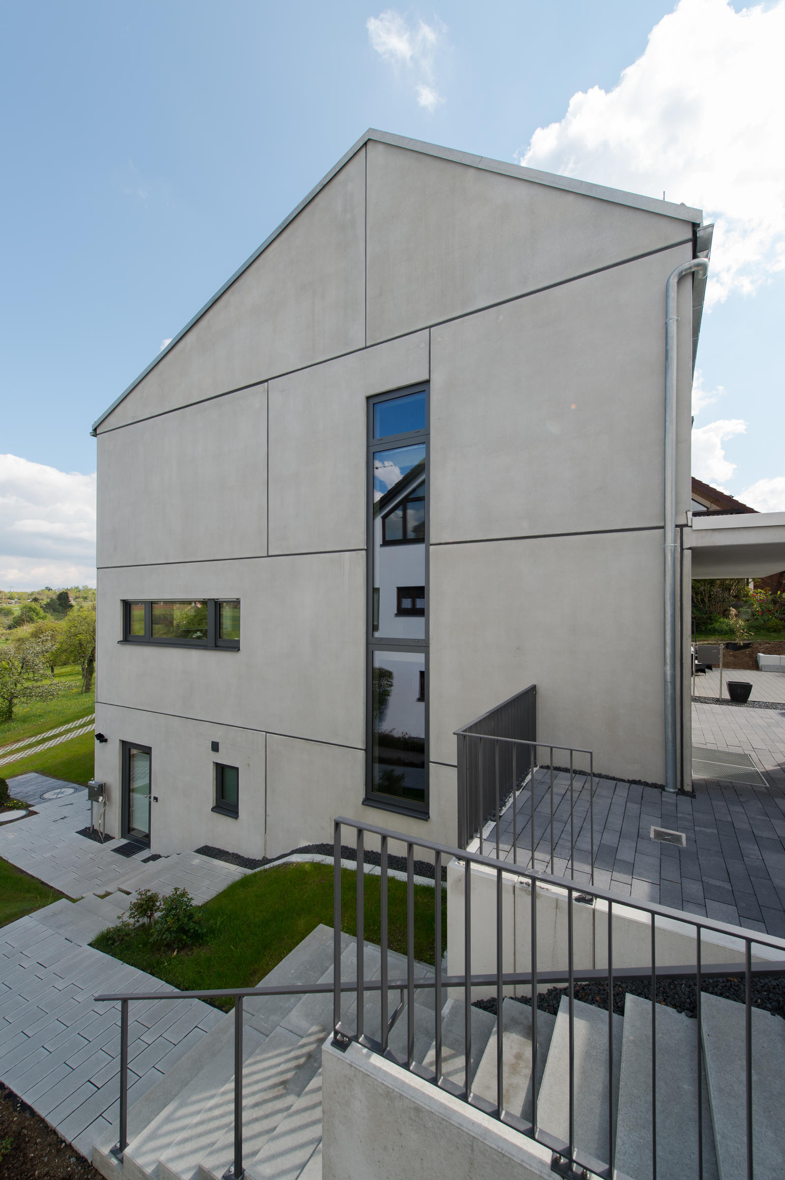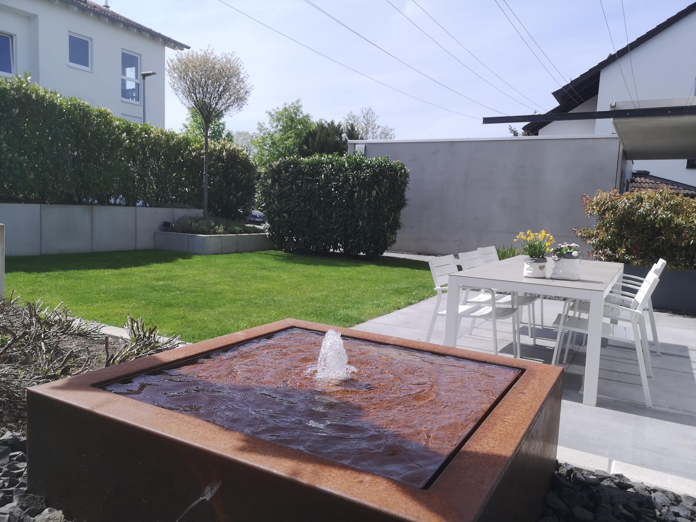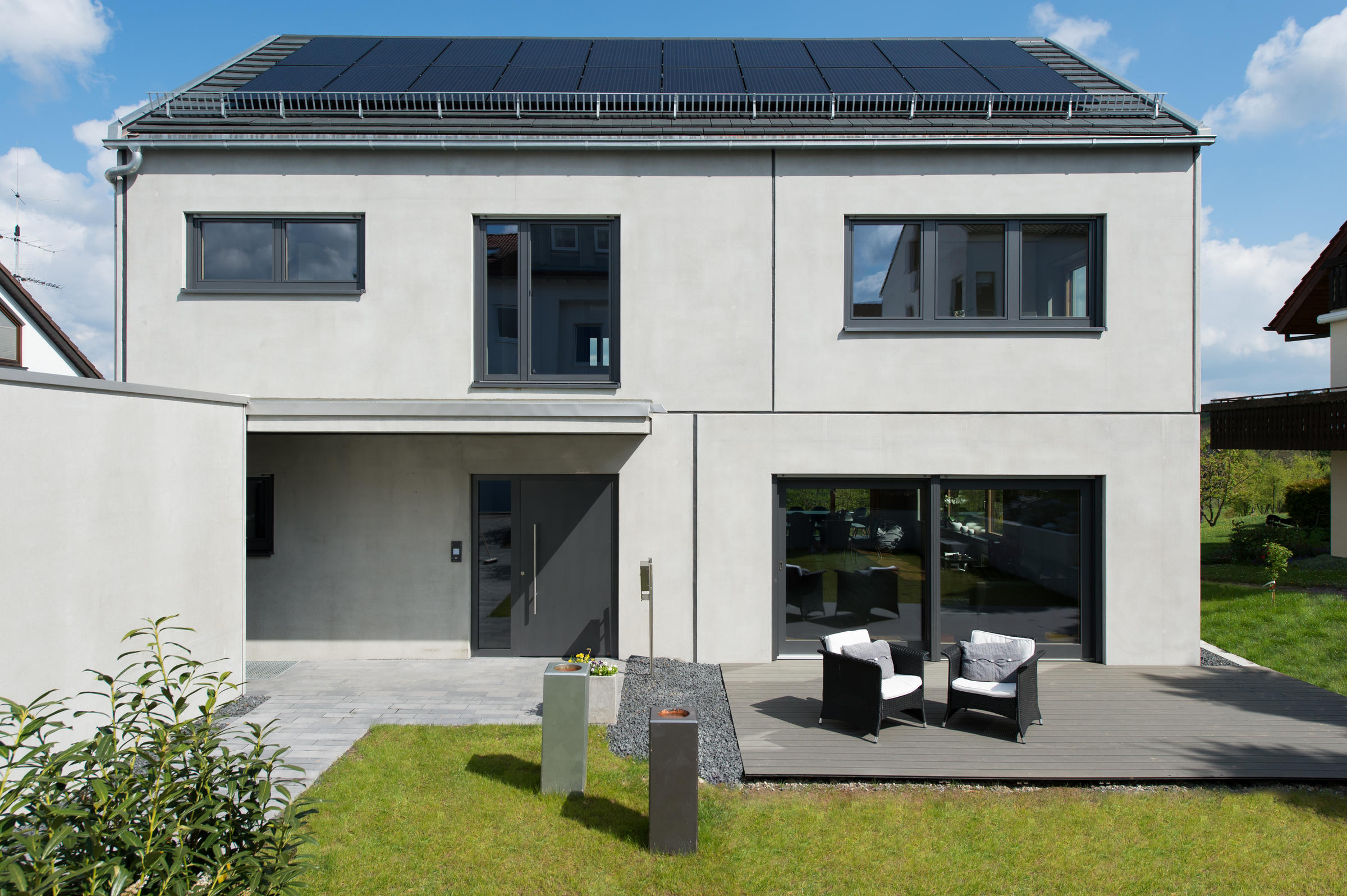 Das klare Konzept setzt sich auch im Außenbereich fort. Auch hier bilden die Form-, Material- und Farbauswahl, die Akzente eines sehr modernen Lebensstiles- und Raumes ab.
