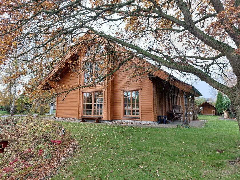 Unser wunderschönes finnisches Blockhaus befindet sich in Feldrandlage in einer ruhigen und ländlichen Gegend, nur 7 km von der Ostsee entfernt. Das Haus besticht durch seine offene Bauweise und die bis zu 7,5 m hohe Dachinnenkonstruktion. Die Räume sind gemütlich und zeitgemäß eingerichtet. Die bodentiefen Fenster im lichtdurchfluteten Wohnbereich können mit Hilfe von Vorhängen abgedunkelt werden. Im Außenbereich können u. a. 2 Terrassen, unser Garten mit altem Baumbestand, ein Teich und ein separates Saunahaus für Produktionen genutzt werden. Auf unserem Grundstück stehen mehrere Pkw-Parkplätze zur Verfügung.