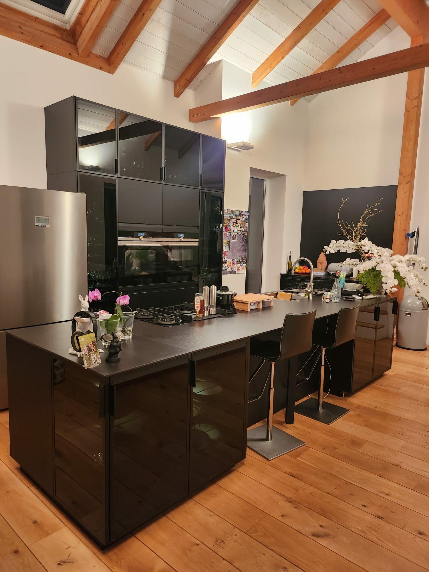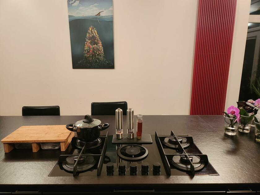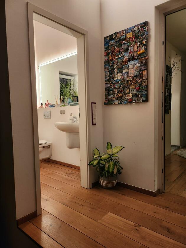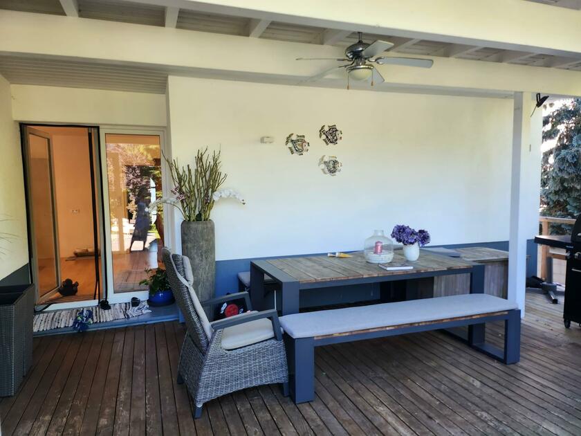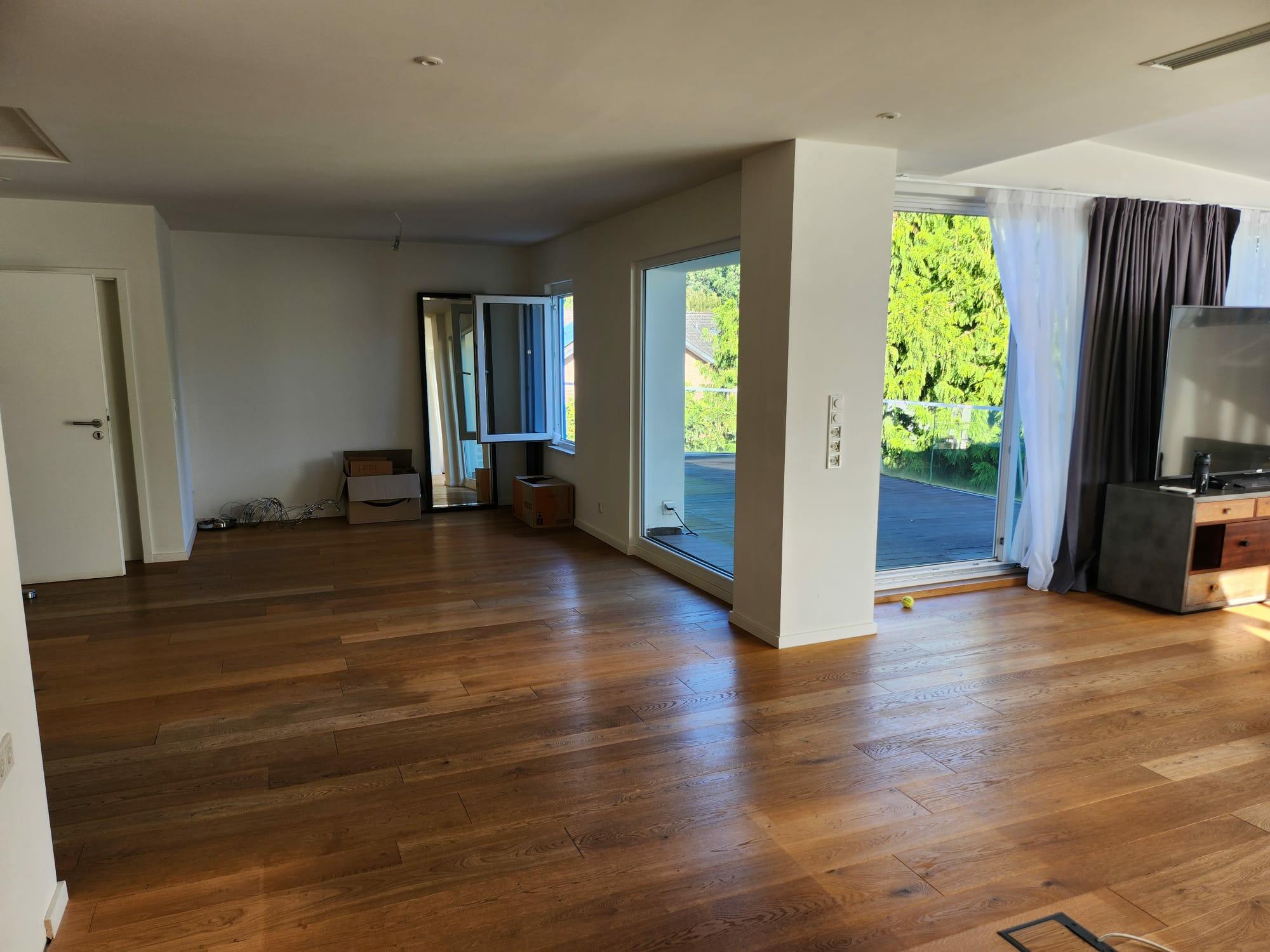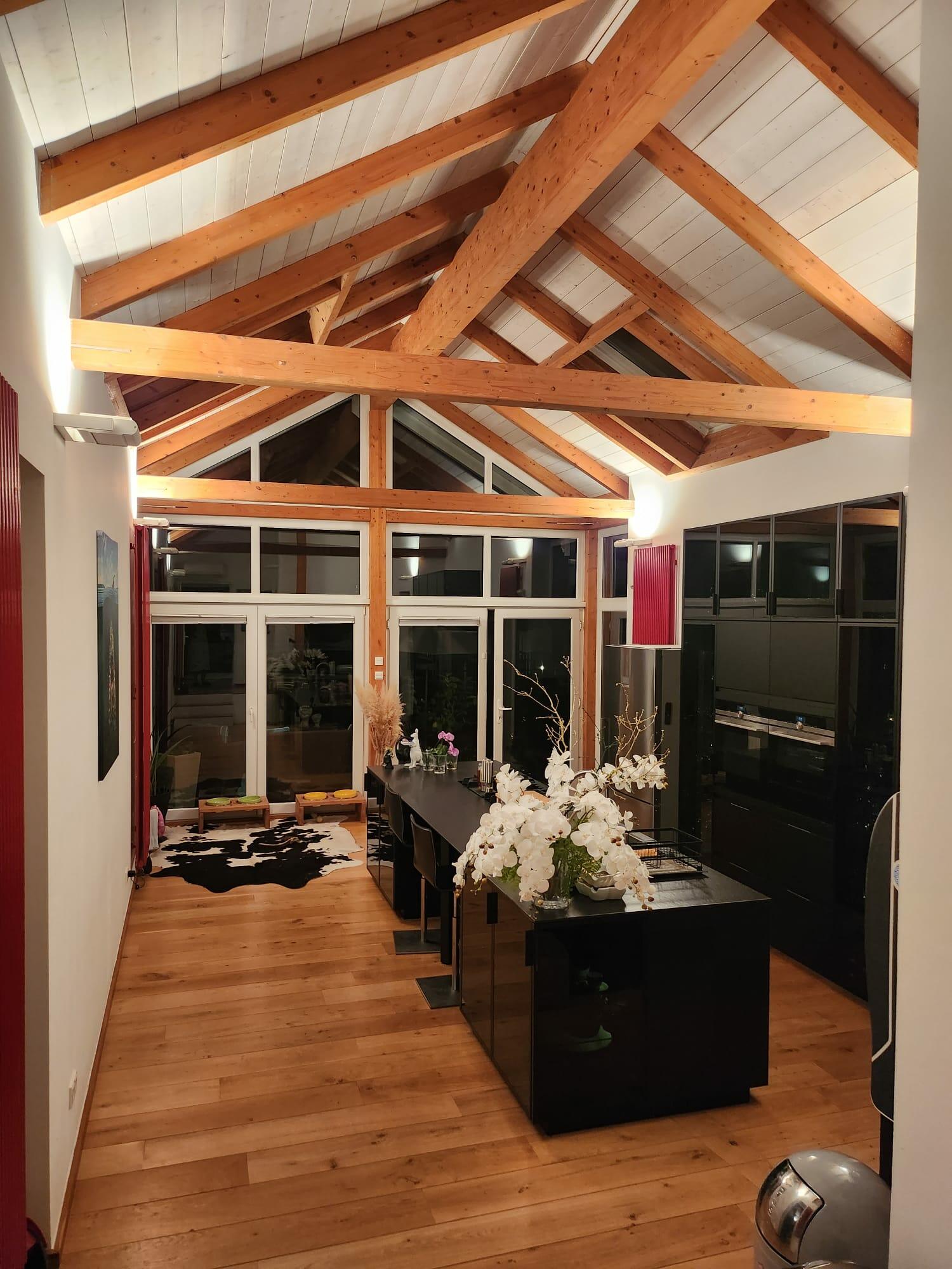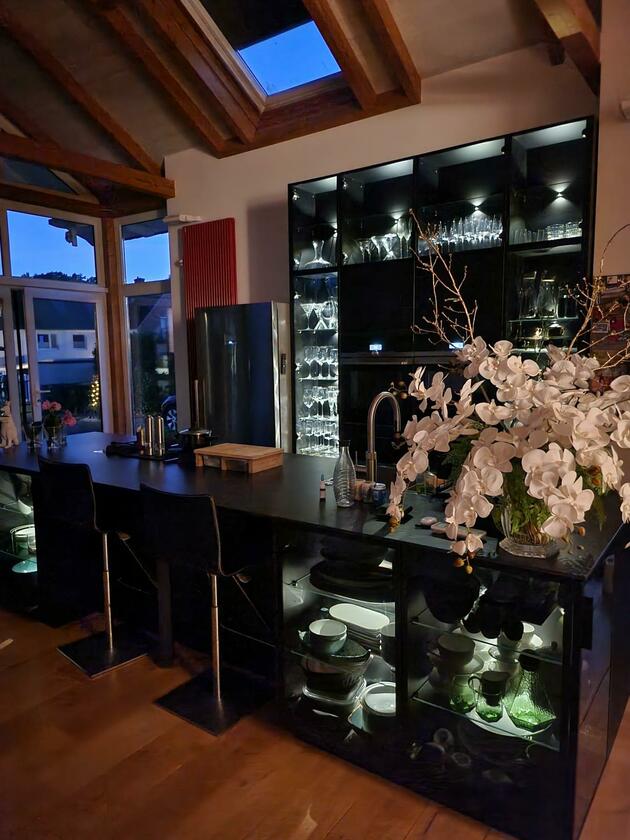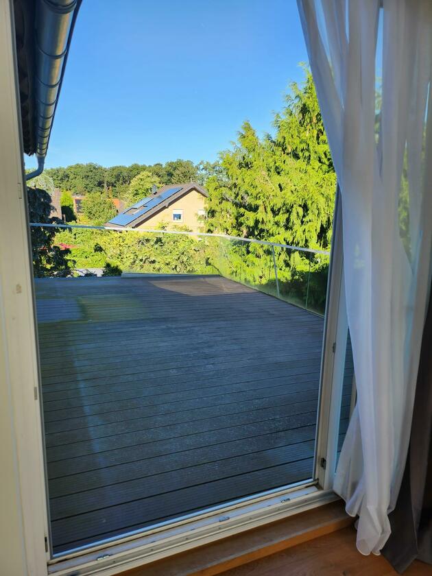 Unser modern ausgestattetes Haus befindet sich in einer ruhigen Wohngegend. Die Räume sind zeitgemäß und funktional eingerichtet. Im Wohnzimmer befindet sich ein offener Tunnelkamin. Die modern ausgestattete Küche verfügt über eine große Kücheninsel. Auf den Böden der Wohnbereiche sind hochwertige Buchenholzdielen verlegt. Die teilweise bodentiefen Fenster können mit Rollläden und Jalousien verdunkelt werden. Im Außenbereich können unsere Terrassen, der Salzwasserpool und der Garten genutzt werden. Auf unserem Grundstück stehen 4 Pkw-Stellplätze zur Verfügung. Weitere Stellflächen gibt es auf der Anliegerstraße.