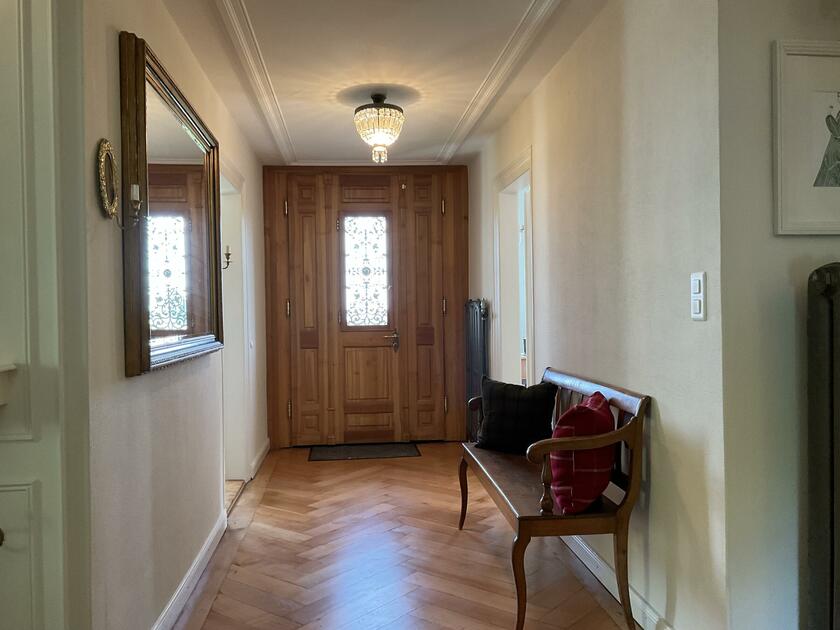 Inmitten eines parkähnlichen Areals steht diese ca. 150 Jahre alte Villa. Der feine zurückhaltende Fassadenschmuck, die lichtdurchfluteten Räume sowie die herrliche Aussicht machen die Villa zu etwas ganz Besonderem. Viele Zimmer des denkmalgeschützten Gebäudes sind mit ganzer oder teilweiser Wandvertäfelung und hochwertigen Parkettböden ausgestattet In fünf Räumen wurde die originale Stuckdecke wieder freigelegt und restauriert. Mit der Inneneinrichtung sowie den gewählten Wandfarben und Beleuchtungselementen wird der Villa als herrschaftliches Wohnhaus Rechnung getragen. Das Haus sowie die Räume dürfen nach Absprache für Produktionen umgestaltet und ummöbliert werden. Sämtliche Fenster sind mit Fensterbalken verdunkelbar. Auf dem Grundstück befindet sich eine Remise aus dem Jahr 1912. Auf dem Areal stehen 4 Pkw-Parkplätze zur Verfügung. In näherer Umgebung sind nochmals Abstellplätze für Pkw vorhanden.