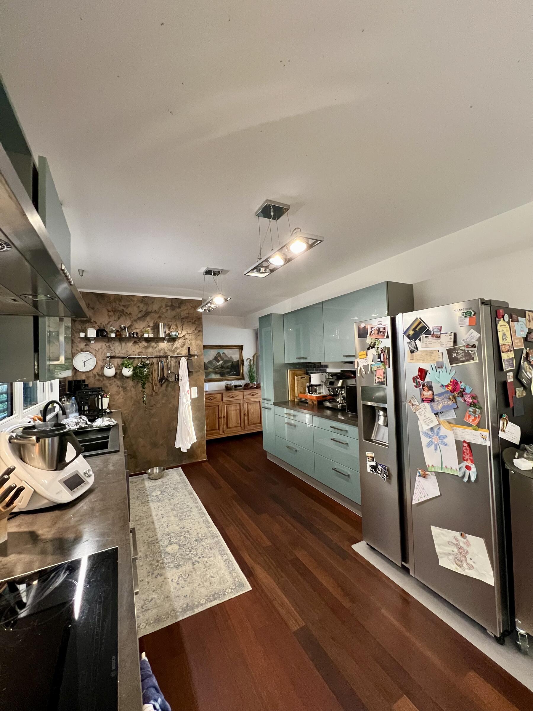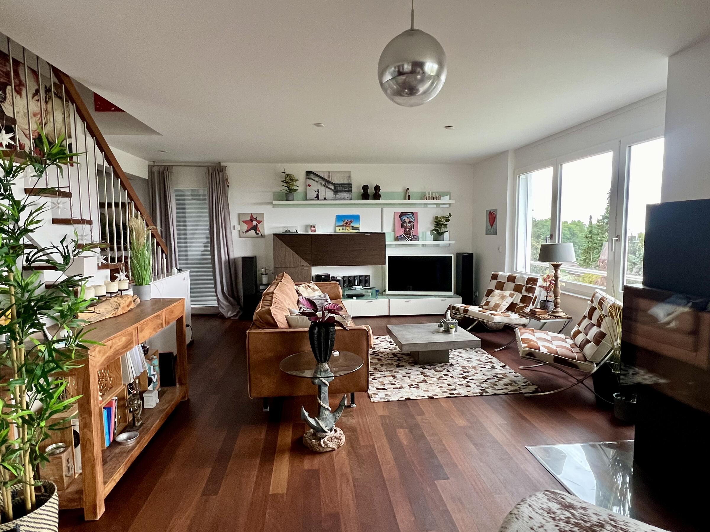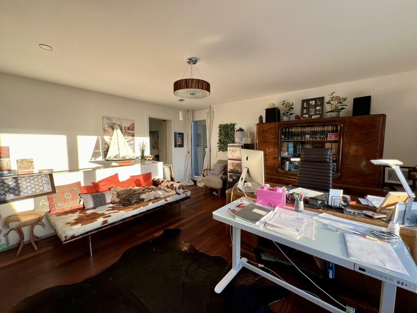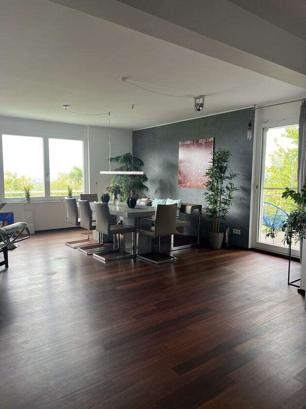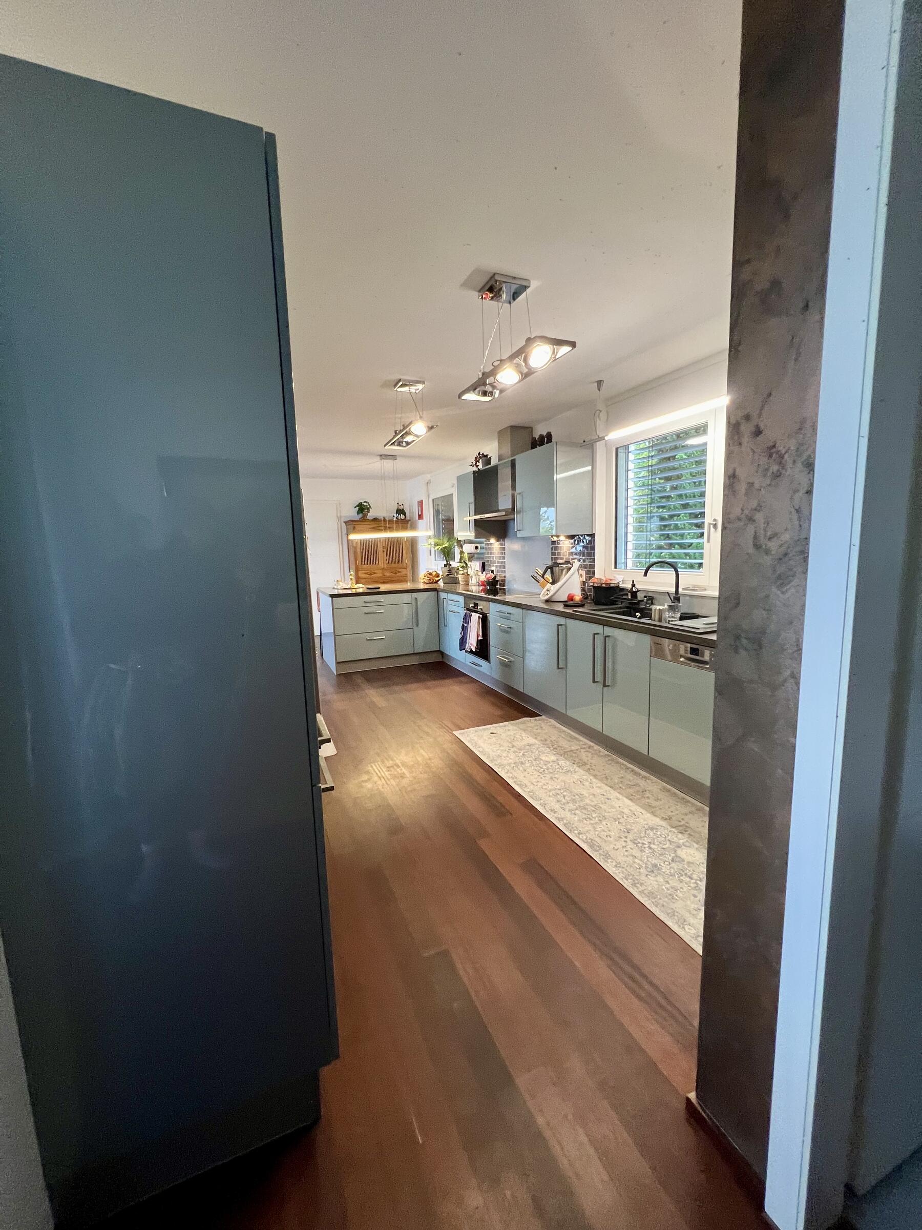 Im 2. OG befinden sich ein Arbeitszimmer, ein Kinderzimmer, ein Gästezimmer sowie ein Sportraum. Im Außenbereich stehen unser Garten, der sowohl vom Schlafzimmer als auch vom Badezimmer direkt zugänglich ist, und die Terrasse, erreichbar vom Wohnzimmer, zur Verfügung. Die zwei Gartenbereiche sind durch eine Außentreppe miteinander verbunden. Nach Absprache dürfen die Räume unseres Hauses umgestaltet werden. Ebenfalls können 3 Pkw-Stellplätze genutzt werden.
