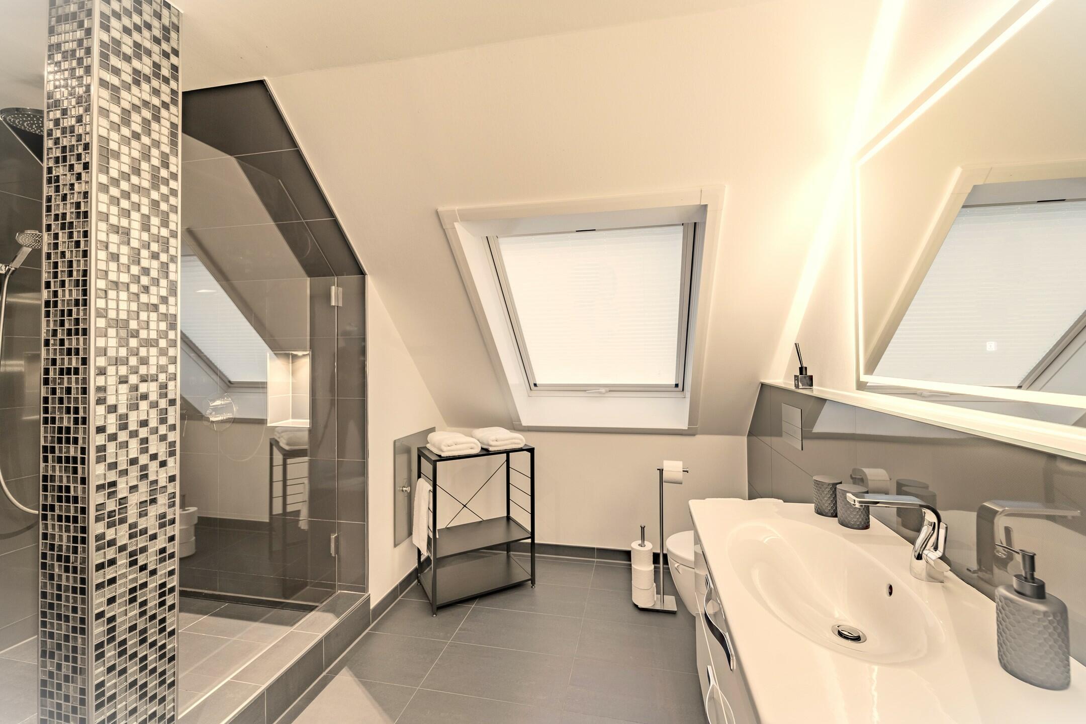 Meine modern eingerichtete 110 m² große Wohnung befindet sich im Dachgeschoss eines Zweifamilienhauses. Der offen gestaltete Wohn- und Essbereich verfügt über eine Deckenhöhe von 4,5 m. Durch die große Fensterfront fällt viel Tageslicht in den Raum. Mit Hilfe einer elektrischen Markise und elektrischen Rollos können die Räume der Wohnung abgedunkelt werden. Die moderne Küche ist üppig ausgestattet. Die Loggia ist nach Süden und der Balkon nach Westen ausgerichtet. Das Badezimmer ist modern eingerichtet. Ebenfalls biete meine Wohnung ein gemütliches Schlafzimmer mit einer Sitzecke und einem begehbarem Kleiderschrank.